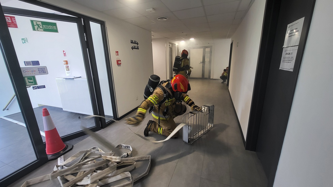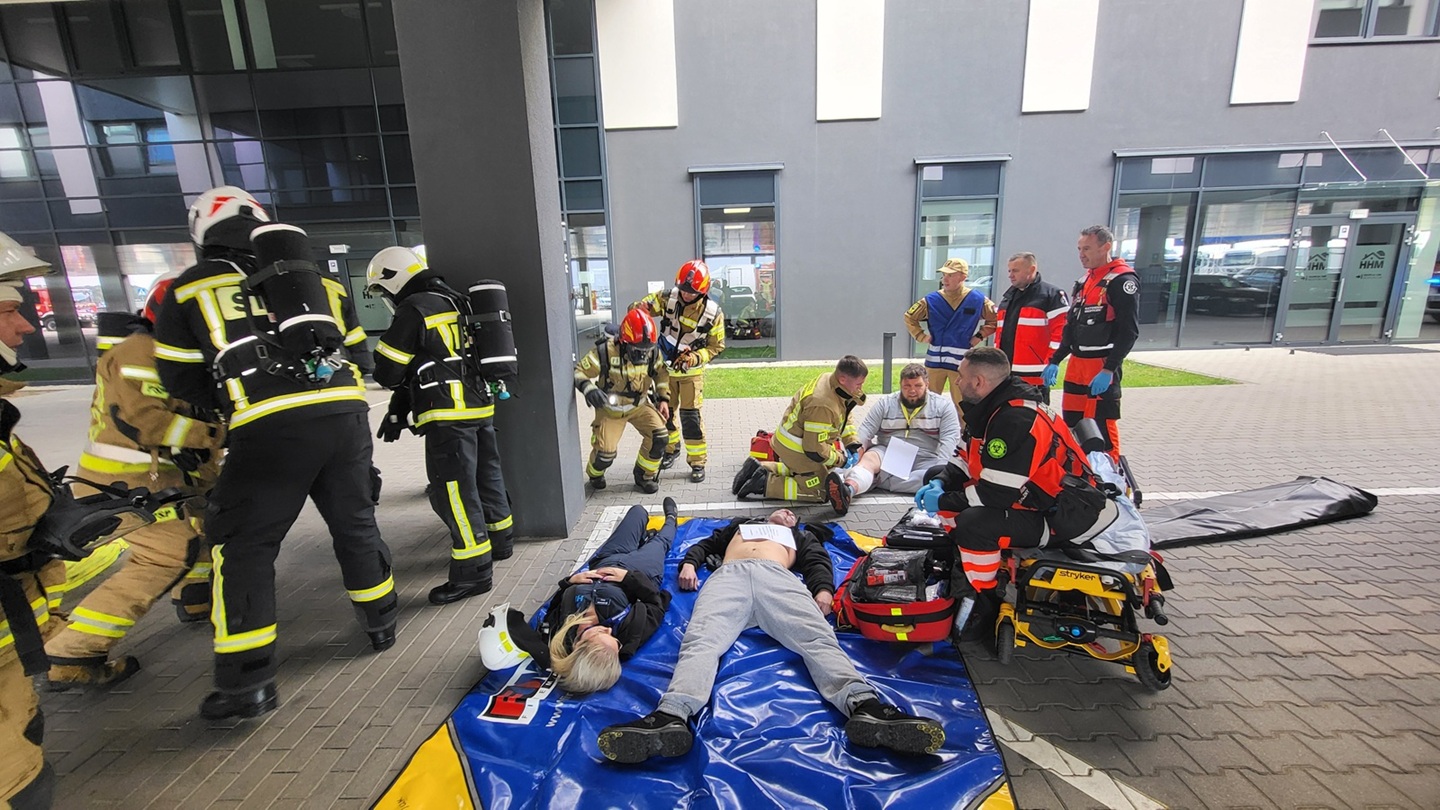 Scenariusz ćwiczeń zakładał wybuch pożaru w części noclegowej obiektu oraz wypadek z udziałem pojazdu osobowego i ciężarowego, w wyniku którego doszło do rozszczelnienia zbiornika z cieczą łatwopalną, a następnie zapalenia się powstałego rozlewiska w pobliżu hali lakierni.