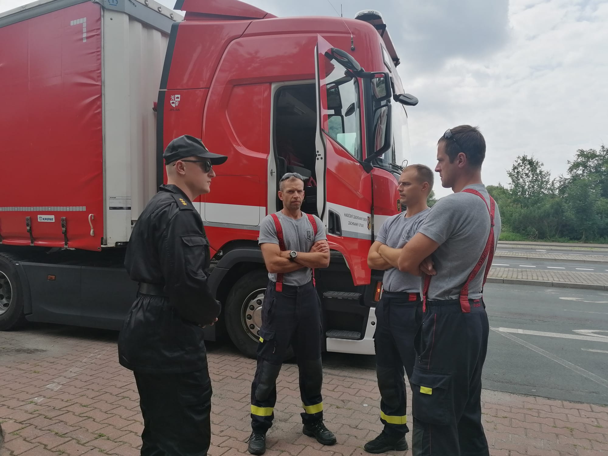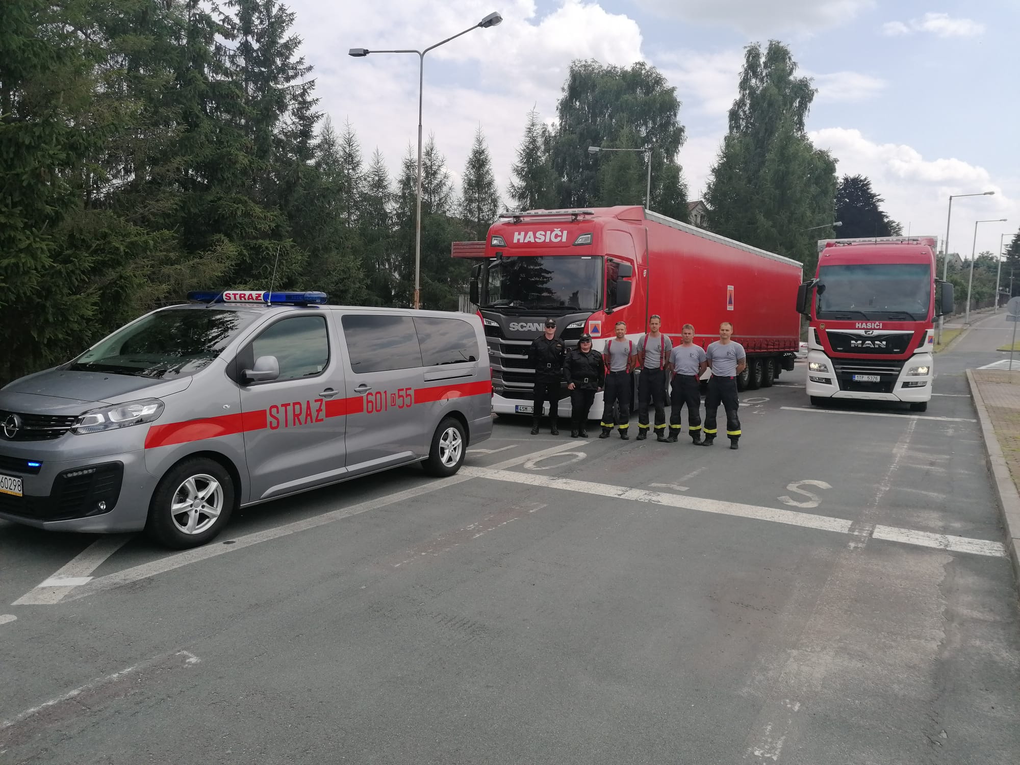 W dniu 23 lipca 2021r. zgorzeleccy strażacy zabezpieczali przejazd czeskiego konwoju Straży Pożarnej z pomocą humanitarną, zmierzający na Litwę. Do wykonania tego zadania zostało wskazanych dwóch oficerów łącznikowych: kpt. Dawid Trociewicz oraz kpt. Agnieszka Bury, a ich rolą było udzielenie niezbędnej pomocy oraz zapewnienie bezpiecznego przejazdu przez województwo dolnośląskie dwóch czeskich pożarniczych samochodów ciężarowych, na trasie Zawidów - MOP Syców, gdzie konwój został przejęty przez oficerów łącznikowych PSP z województwa łódzkiego. Przejazd konwoju przez nasze województwo przebiegł bez zakłóceń, a nawiązanie kontaktu z czeskimi kolegami ze straży pożarnej nie stanowiło żadnego problemu, z uwagi na znajomość języka czeskiego oraz angielskiego funkcjonariuszy wyznaczonych do tego zadania.