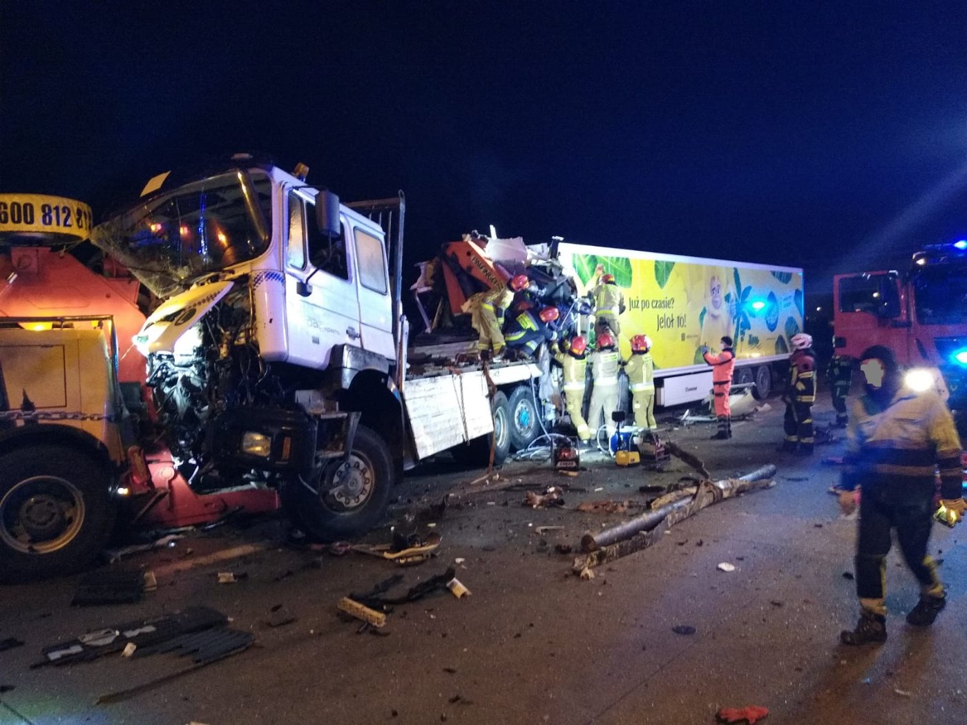 W dniu 07 grudnia o godz. 00.46 na autostradzie A4 na wysokości Żarskiej Wsi doszło do najechania pojazdu ciężarowego na inny pojazd ciężarowy, stojący na pasie awaryjnym, zabezpieczany przez holownik pomocy drogowej i pojazd obsługi autostrady. Do zdarzenia natychmiast zadysponowane zostały dwa zastępy z JRG Zgorzelec, OSP Trójca oraz Specjalistyczna Grupa Ratownictwa Technicznego z JRG Bolesławiec. Strażacy JRG Zgorzelec po przybyciu na miejsce zdarzenia przystąpili niezwłocznie do wykonania dostępu do znajdującego się w kompletnie zmiażdżonej kabinie, kierowcy pojazdu. Niestety przybyły na miejsce ZRM stwierdził zgon poszkodowanego. Udająca się w tym czasie do tego zdarzenia Grupa Ratownictwa Technicznego z JRG Bolesławiec natrafiła na kolejne zdarzenie związane z uderzeniem pojazdu ciężarowego w tył poprzedzającego go innego pojazdu ciężarowego, do którego doszło ok. dwa kilometry wcześniej - na wysokości Przesieczan, najprawdopodobniej w wyniku tworzącego się zatoru powstałego na skutek pierwszego zdarzenia. Funkcjonariusze SGRT natychmiast zgłosili wypadek dyżurnemu zgorzeleckiej komendy PSP, który zadysponował do tego zdarzenia zastępy z JRG Lubań oraz OSP Czerwona Woda i OSP Węgliniec. Jednocześnie obecni na miejscu strażacy z JRG Bolesławiec przystąpili do wykonania dostępu do znajdujących się w zmiażdżonej kabinie pojazdu osób poszkodowanych: kierowcy i jego zmiennika. Po wykonaniu z wykorzystaniem narzędzi hydraulicznych dostępu do poszkodowanych strażacy ewakuowali z kabiny obu kierowców i udzieli im niezbędnej pomocy a następnie przekazali przybyłym na miejsce zespołom ratownictwa medycznego. Następnie grupa udała się do pierwszego zdarzenia, celem udzielenia pomocy technicznej w wykonaniu dostępu oraz wydobyciu zwłok kierowcy.