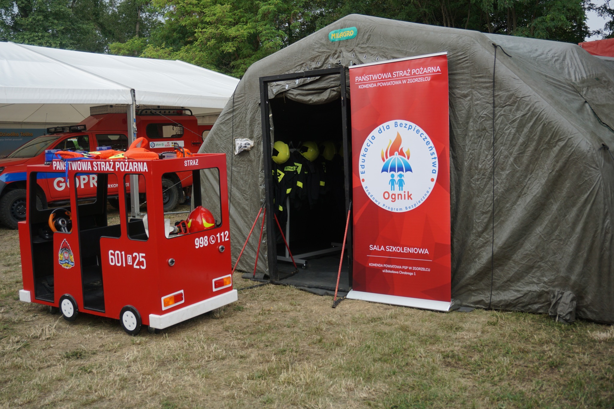 Pracownicy i funkcjonariusze Komendy Powiatowej PSP w Zgorzelcu w ramach prewencji społecznej poprowadzili zajęcia edukacyjne w mobilnej sali „Ognik” oraz zorganizowali zawody dla dzieci z wykorzystaniem toru przeszkód MDP.