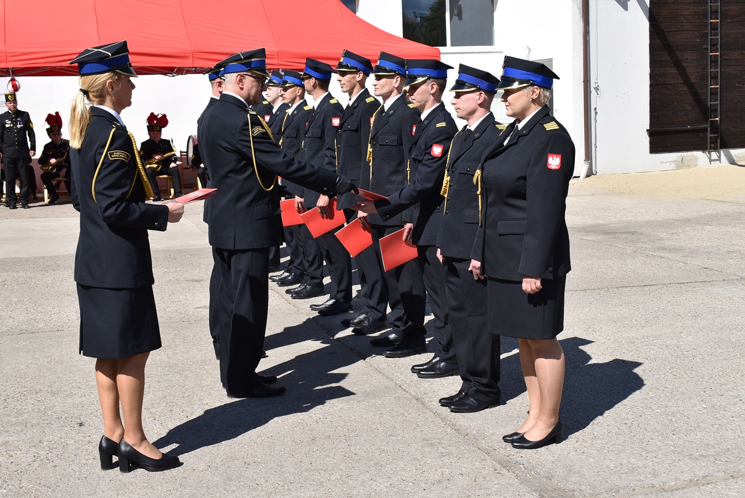 W trakcie apelu wręczono odznaczenia i medale, akty nadania wyższych stopni służbowych dla funkcjonariuszy Komendy Powiatowej PSP w Zgorzelcu oraz druhów OSP.