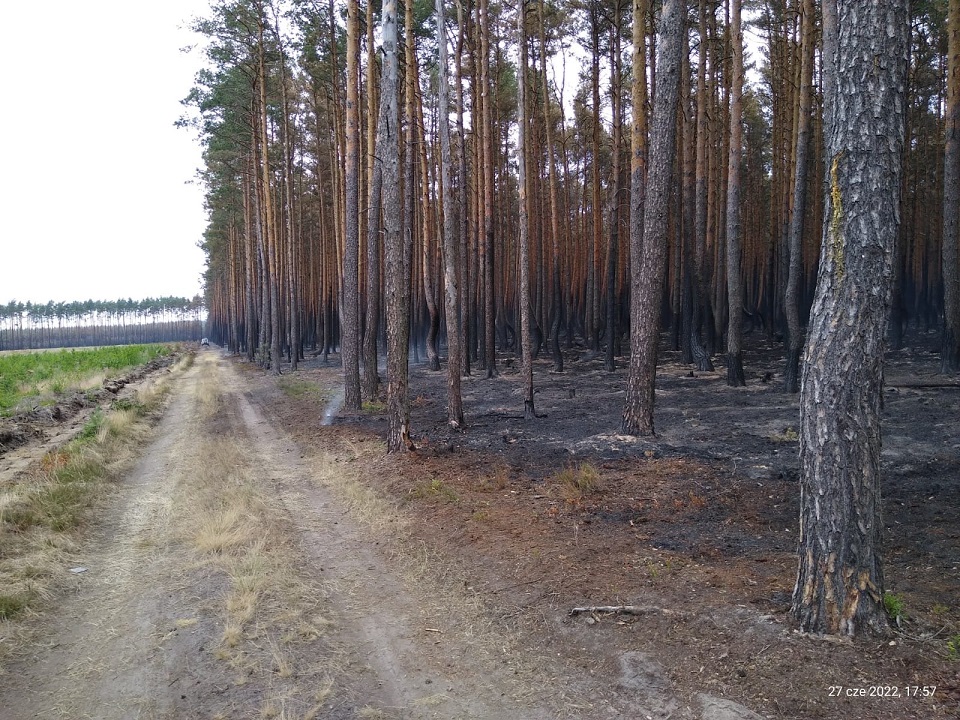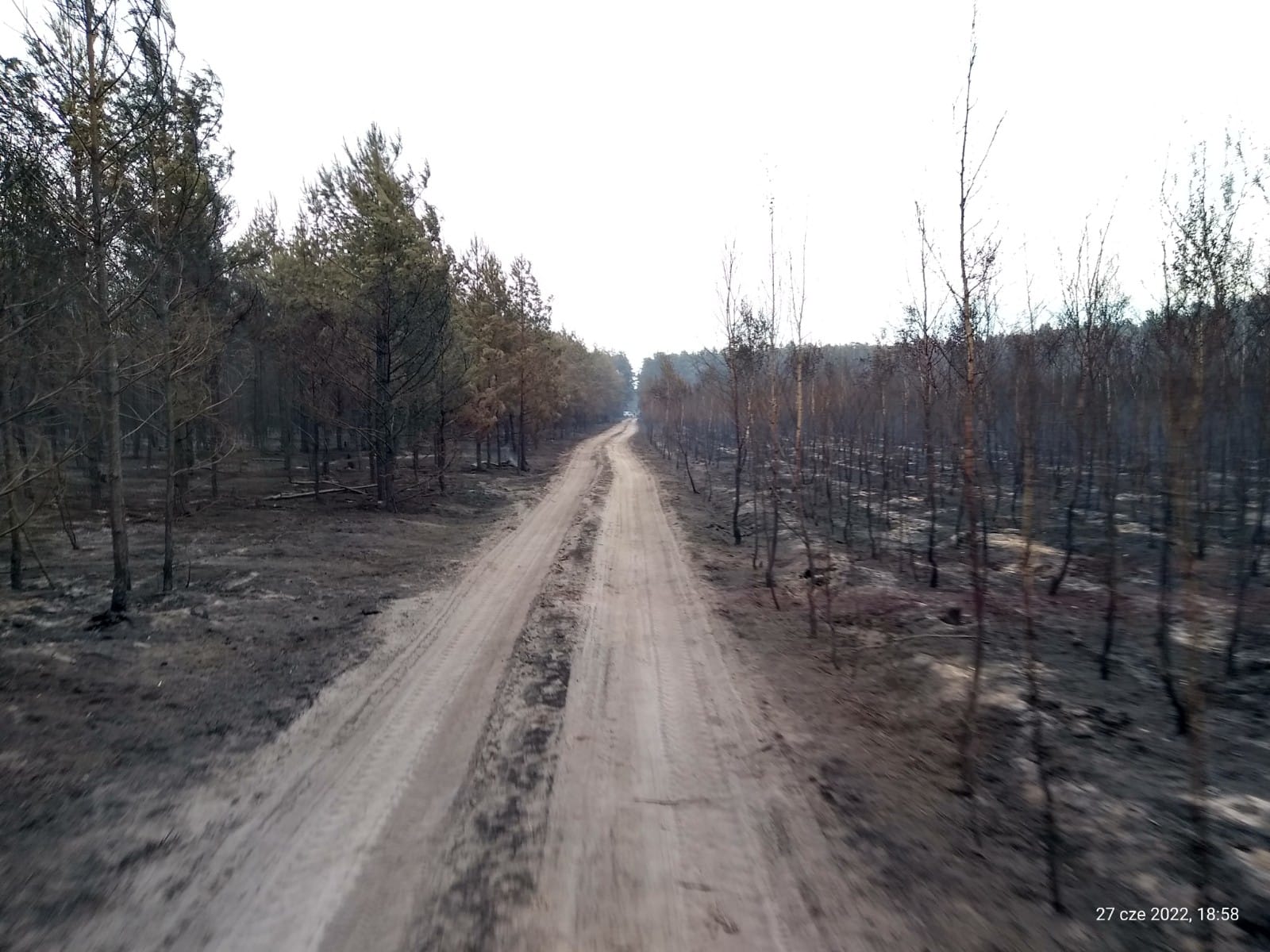 Podczas działań gaśniczych w dniu 27.06 na terenie Nadleśnictwa Pieńsk w godzinach wieczornych, odnaleziono 4 granaty w oddziale nr 25. Zadysponowano Policję celem zabezpieczenia miejsca zdarzenia, wyznaczono strefę o promieniu 300 m wokół znaleziska gdzie wstrzymano działania gaśnicze z uwagi na realne zagrożenie eksplozją granatów. W dniu 28.06 przybył na miejsce pożaru Patrol Saperski z jednostki wojskowej z Bolesławca, który podjął znalezione granaty i pociski. Po odjeździe Patrolu Saperskiego kontynuowano dogaszanie pojedynczych zarzewi ognia. Pożar całkowicie ugaszono w dniu 28.06.2022r. o godzinie 19:18.