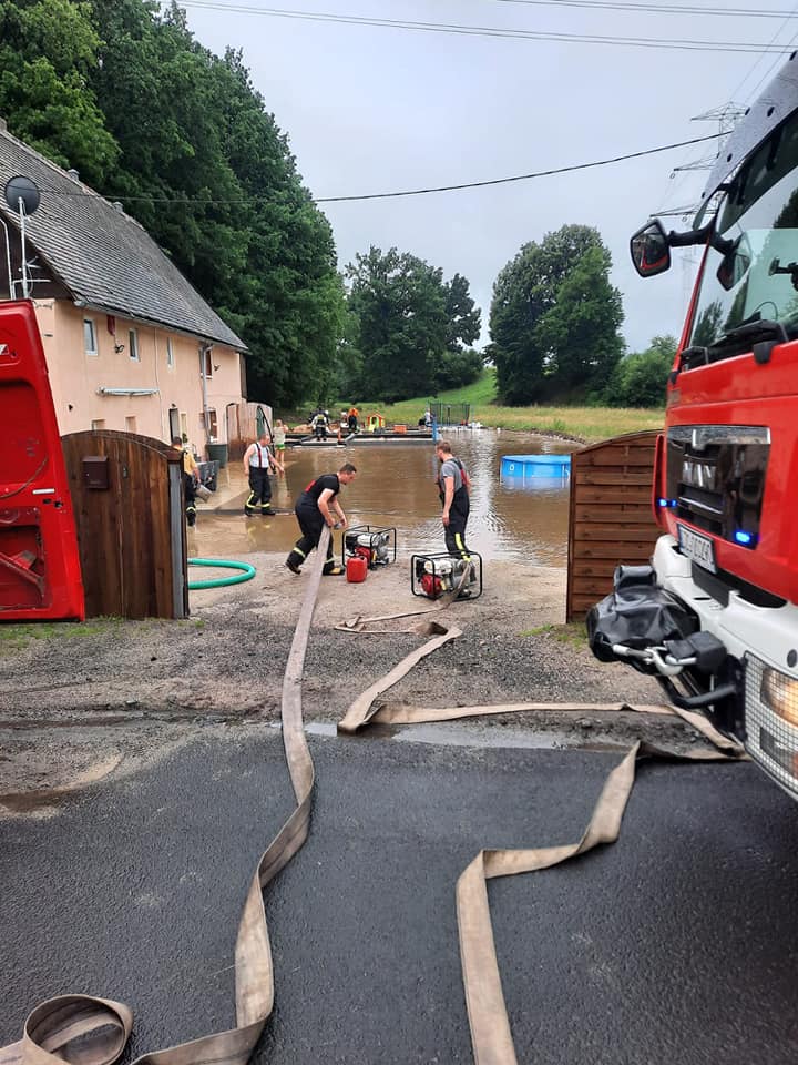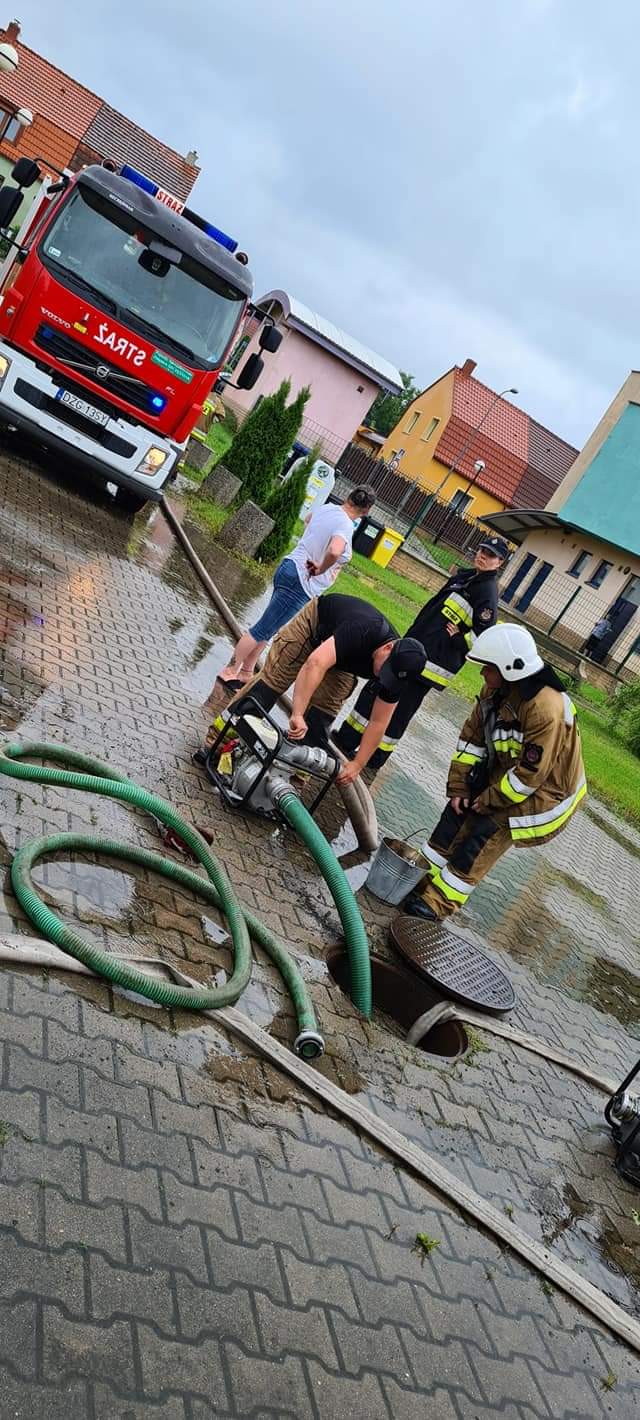 Sobotni front burzowy przysporzył wiele pracy zgorzeleckim strażakom. Pierwsze zgłoszenia zaczęły wpływać do Stanowiska Kierowania Komendanta Powiatowego PSP w Zgorzelcu tuż po północy w sobotę 17 lipca 2021r. Jednak najwięcej zdarzeń odnotowano w godzinach popołudniowych, kiedy to gwałtownie podnoszący się stan wody na rzekach Miedzianka, Nysa Łużycka, Czerwona Woda i Włosienica był przyczyną zalania wielu obiektów. Najwięcej zdarzeń odnotowano w Gminie Bogatynia, gdzie sytuacja była najtrudniejsza i w sobotni wieczór ogłoszono pogotowie przeciwpowodziowe. W związku z narastającą liczbą zgłoszeń zalewanych obiektów, w JRG Bogatynia wzmocniono stan osobowy strażaków o dodatkowy zastęp ratowniczy, na miejsce udał się również oficer operacyjny powiatu, st. kpt. Łukasz Łysiak, a w godzinach wieczornych, również Zastępca Komendanta Powiatowego PSP w Zgorzelcu, kpt. Grzegorz Fleszar. Do działań zaangażowano również wszystkie zastępy jednostek OSP z terenu gminy. Łącznie, w dniach 17-19 lipca br. na terenie Gminy Bogatynia strażacy podjęli 19 interwencji, w większości związanych z odpompowywaniem wody z zalewanych obiektów (14 zdarzeń), usuwaniem powalonych drzew (4 zdarzenia) i monitoringiem poziomu wody na ciekach wodnych (1 zdarzenie). Równocześnie zastępy zgorzeleckiej JRG wraz z jednostkami OSP prowadziły działania na terenie pozostałych gmin: Sulików, gdzie także ogłoszono pogotowie przeciwpowodziowe i podjęto 5 interwencji, Węgliniec – 3 interwencje, Miasto Zgorzelec – 8 interwencji i gm. wiejska Zgorzelec - 1 interwencję. Łącznie zgorzeleccy strażacy w dniach 17-19 lipca interweniowali 36 razy przy zdarzeniach związanych z opadami atmosferycznymi, przyborami wód i gwałtownymi porywami wiatrów. Ponadto, podjęto 7 innych interwencji, nie związanych bezpośrednio z przechodzącym nad powiatem frontem burzowym, w tym: 1 pożar śmieci, 2 kolizje, 1 akcję wyciągania karetki pogotowia, która ugrzęzła na nieutwardzonej drodze dojazdowej oraz 4 akcje ratowania zwierząt, w tym m.in.: łabędzia, który zaplątał się w żyłkę wędkarską na zalewie Czerwona Woda oraz małych kaczątek, które utknęły na zaporze zbiornika Niedów, na rzece Witka.