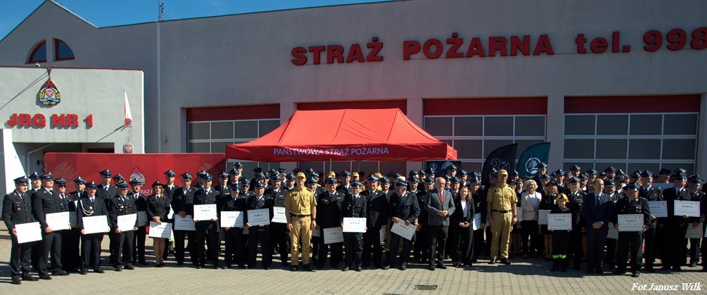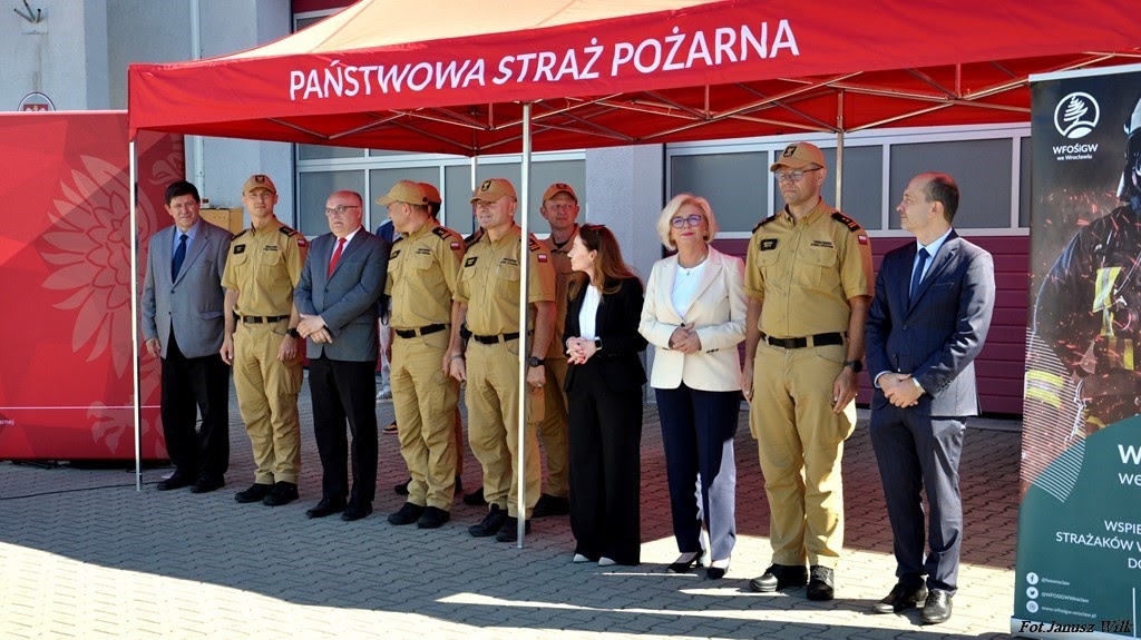Pani Marzena Machałek, wiceminister Edukacji i Nauki, Pan Krzysztof Mróz, Senator RP, bryg. Michał Pięta, Zastępca Komendanta Wojewódzkiego Państwowej Straży Pożarnej we Wrocławiu oraz Pan Łukasz Kasztelowicz, Prezes Zarządu Wojewódzkiego Funduszu Ochrony Środowiska i Gospodarki Wodnej we Wrocławiu, w obecności Komendantów Miejskich, Powiatowych i przedstawicieli Komend PSP.