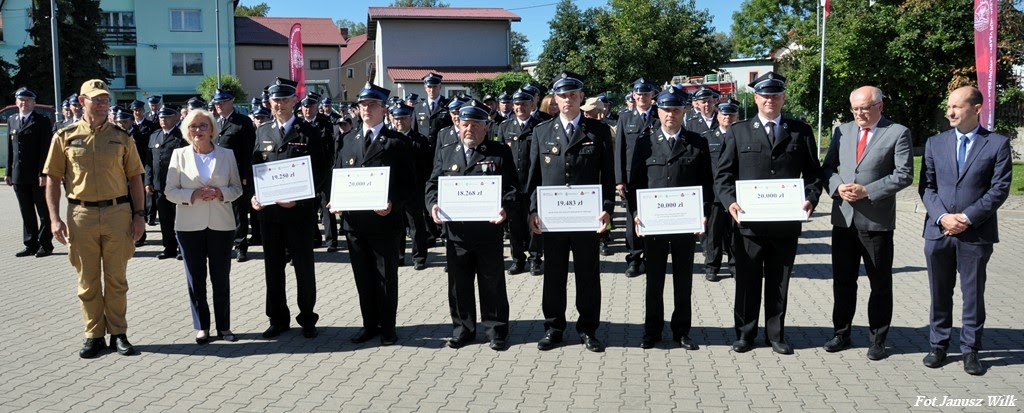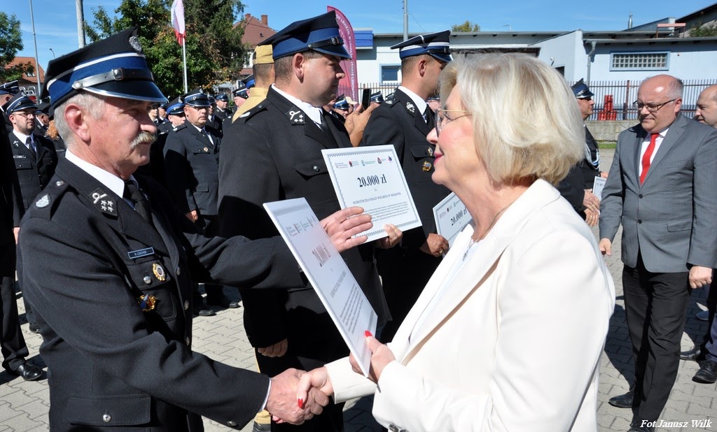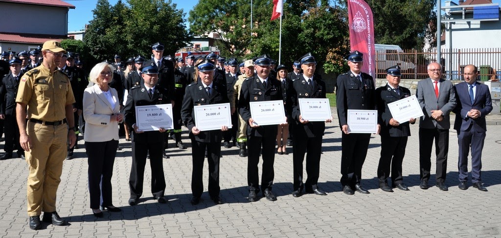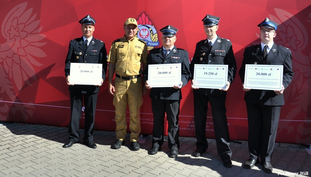 W dniu 20.09.2023r. na terenie Jednostki Ratowniczo-Gaśniczej nr 1 w Jeleniej Górze odbyło się uroczyste przekazanie promes na zakup sprzętu dla Ochotniczych Straży Pożarnych z terenu powiatów: bolesławieckiego, kamiennogórskiego, karkonoskiego, lubańskiego, lwóweckiego i zgorzeleckiego, w ramach „Ogólnopolskiego programu finansowania służb ratowniczych Część 2) Dofinansowanie zakupu sprzętu i wyposażenia jednostek Ochotniczych Straży Pożarnych”, finansowanego przez Wojewódzki Fundusz Ochrony Środowiska i Gospodarki Wodnej we Wrocławiu oraz Narodowy Funduszu Ochrony Środowiska i Gospodarki Wodnej.