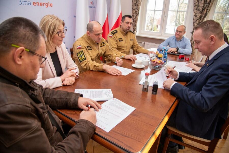 W dniach 29 – 30 stycznia 2025 roku kadra kierownicza Komendy Powiatowej Państwowej Straży Pożarnej w Zgorzelcu brała udział w szeregu spotkań z władzami samorządowymi oraz przedstawicielami jednostek OSP z terenu powiatu zgorzeleckiego, których celem było podpisanie Porozumień dotyczących współpracy w zakresie montażu, wykorzystania i utrzymania sprzętu wchodzącego w skład systemu ostrzegania i alarmowania oraz infrastruktury systemu ostrzegania. Podpisanie porozumień jest wynikiem realizowanego przez Komendę Główną Państwowej Straży Pożarnej projektu rozbudowy Systemu Ostrzegania i Alarmowania Ludności (SOiA), finansowanego w ramach Krajowego Planu Odbudowy (KPO) oraz programu Ministerstwa Spraw Wewnętrznych i Administracji (MSWiA) „Odporność na kryzys – optymalizacja infrastruktury służb państwowych odpowiadających za bezpieczeństwo”.