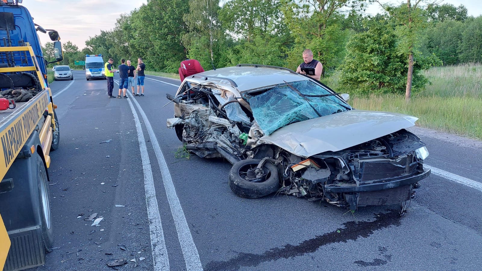 W dniu 06.06.2021r. Stanowisko Kierowania Komendanta Powiatowego PSP w Zgorzelcu otrzymało informację o wypadku 2 pojazdów osobowych z co najmniej 2 osobami poszkodowanymi na DW352 za miejscowością Koźmin.