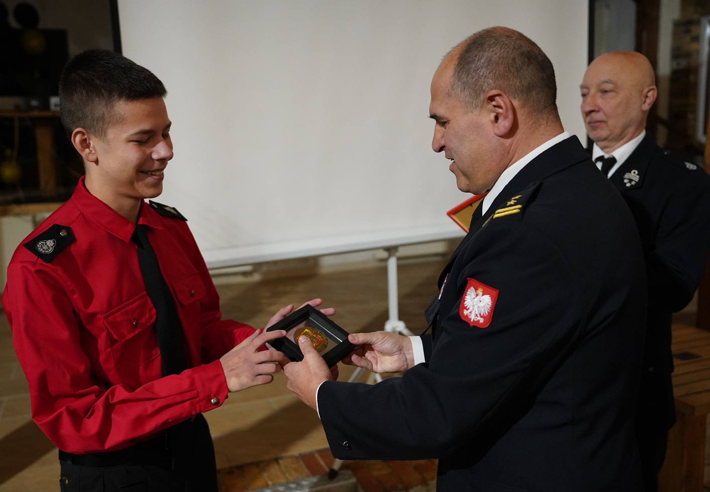 Uroczyste wręczenie odznaczenia Komendanta Głównego PSP "Iuvenis Forti" młodemu druhowi z MDP Węgliniec