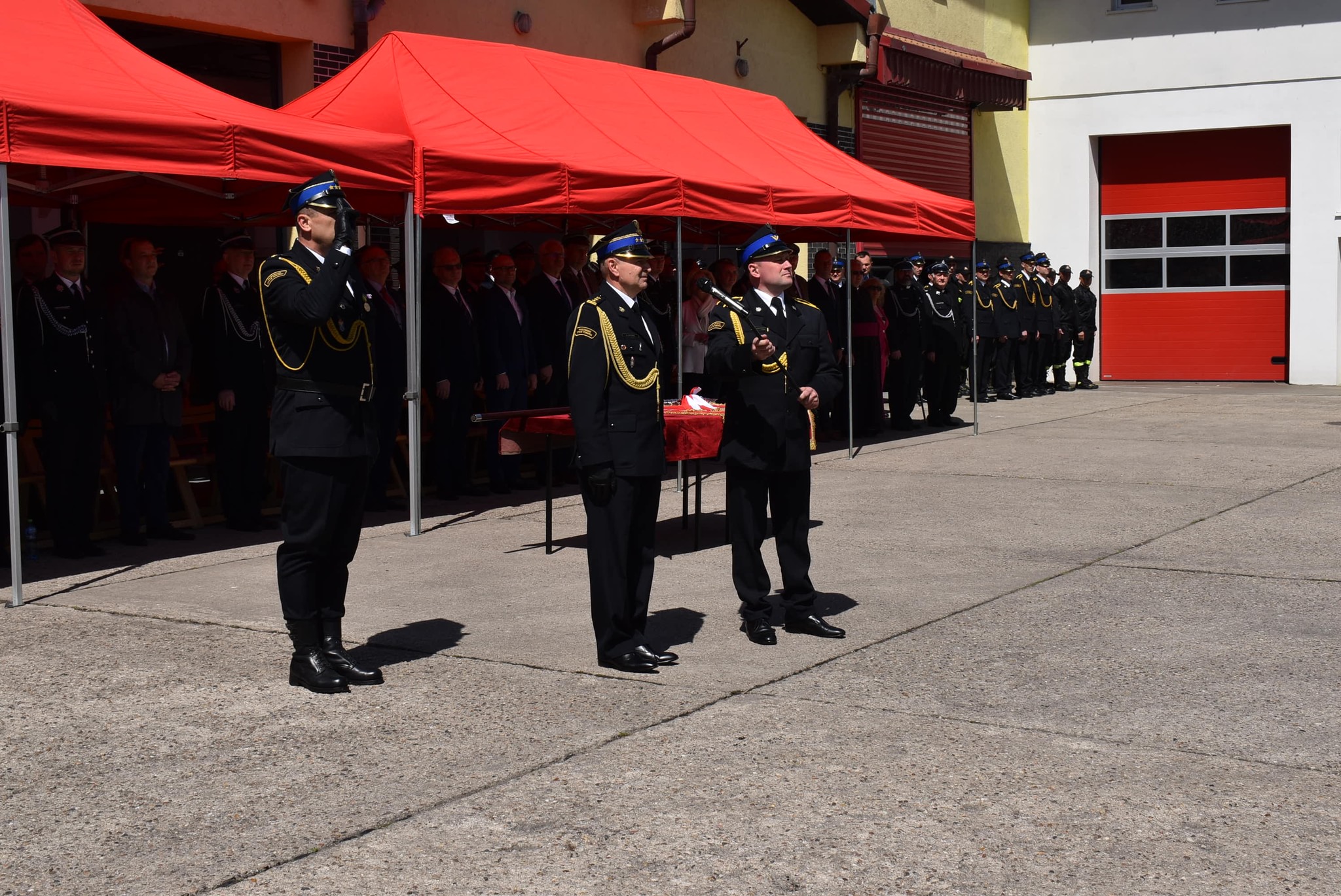 Uroczystość rozpoczęła się od złożenia meldunku z-cy Dolnośląskiego Komendanta Wojewódzkiego, st. bryg. Arkadiuszowi Cytawie przez dowódcę uroczystości st. kpt. Grzegorza Fleszara – z-cę Komendanta Powiatowego PSP w Zgorzelcu. Następnie przy dźwiękach hymnu państwowego dokonano podniesienia flagi na maszt.