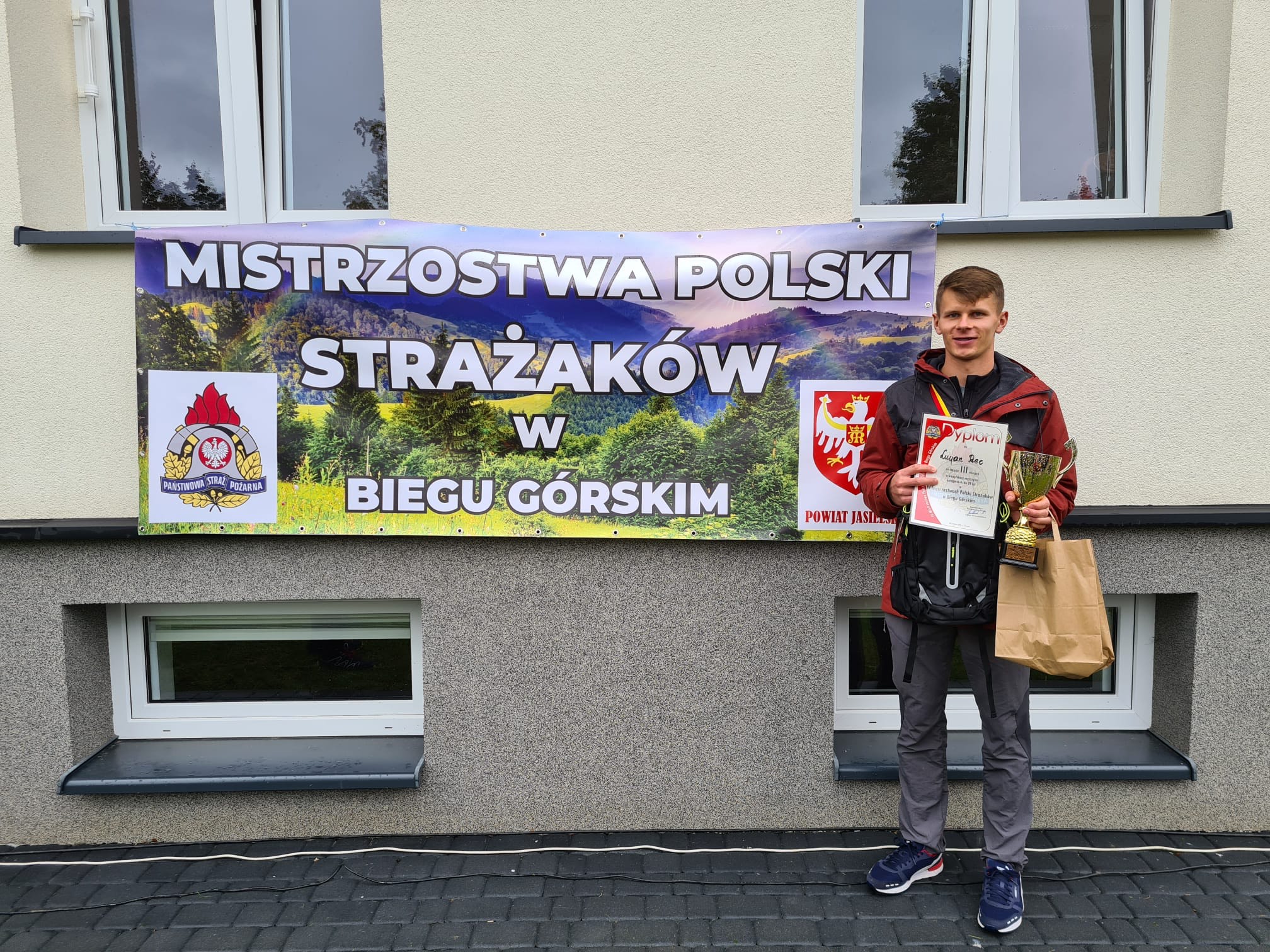 W dniu 30 sierpnia br. w miejscowości Jasło- Ożenna w województwie podkarpackim odbyły się IV Mistrzostwa Polski Strażaków w Biegu Górskim , który zaliczany jest do Pucharu Polski Strażaków w Biegach o Puchar Komendanta Głównego PSP. Jednym z uczestników mistrzostw był mł. asp. Lucjan Rec, złotoryjski strażak, który od lat trenuje bieganie. W swoim debiucie w biegach górskich popularny Lucek zajął bardzo wysokie III miejsce w kategorii wiekowej do 29 lat. Bieg na dystansie 10 km pokonał w czasie 35m. 46 s. Jego trasa charakteryzowała się aż 130 m przewyższenia, co wpływało na duży stopień trudności. Pokonanie tak długiego dystansu utrudniał dodatkowo padający od dwóch dni deszcz. Już na pierwszym podbiegu z ponad 80 zawodników można było wyłonić dobrze przygotowanych biegaczy, z których uformowała się grupa „uciekinierów”. Faworyci biegu, do których nie należał jednak Lucjan narzucili wysokie tempo, które złotoryjski strażak dzielnie wytrzymał zajmując w kategorii open 9 miejsce. W tym roku Lucjan zapowiada jeszcze co najmniej dwa starty w biegach na dystansie 10 km. Był to dla niego ważny sukces ze względu na fakt, że mistrzostwa odbywały się w jego rodzinnych stronach. Trzymamy kciuku za naszego strażaka oraz liczymy na kolejne sportowe sukcesy.