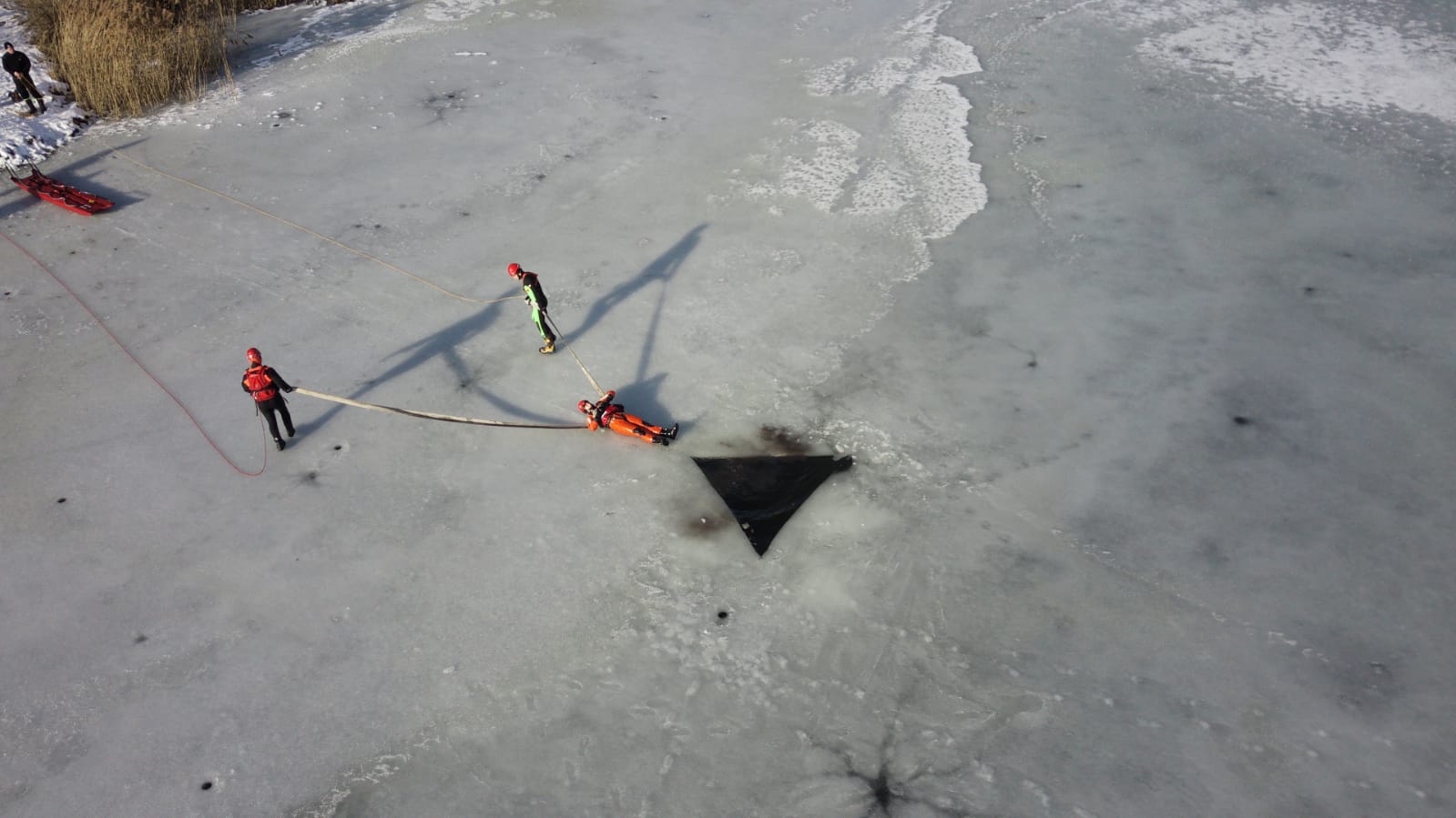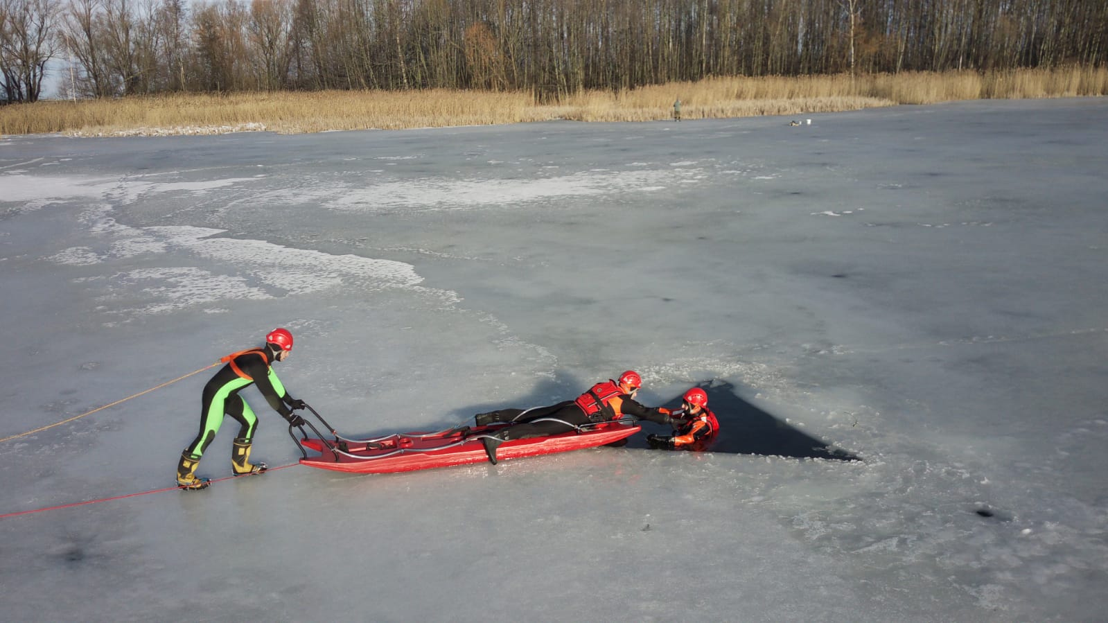 Jednocześnie Komenda Powiatowa PSP w Złotoryi przypomina, że nie istnieje pojęcie bezpiecznego lodu i wchodzenie na zamarznięte akweny może kończyć się wypadkami grożącymi hipotermią i utonięciem. Wpadnięcie do lodowatej wody powoduje, że już po ok 15 min człowiek jest częściowo obezwładniony zimnem co w praktyce znacznie utrudnia lub wręcz uniemożliwia wykonywanie takich czynności, jak pływanie czy chwytanie liny. Do zabaw na lodzie powinny być wykorzystywane wyłącznie specjalnie do tego przygotowane i zabezpieczone lodowiska.