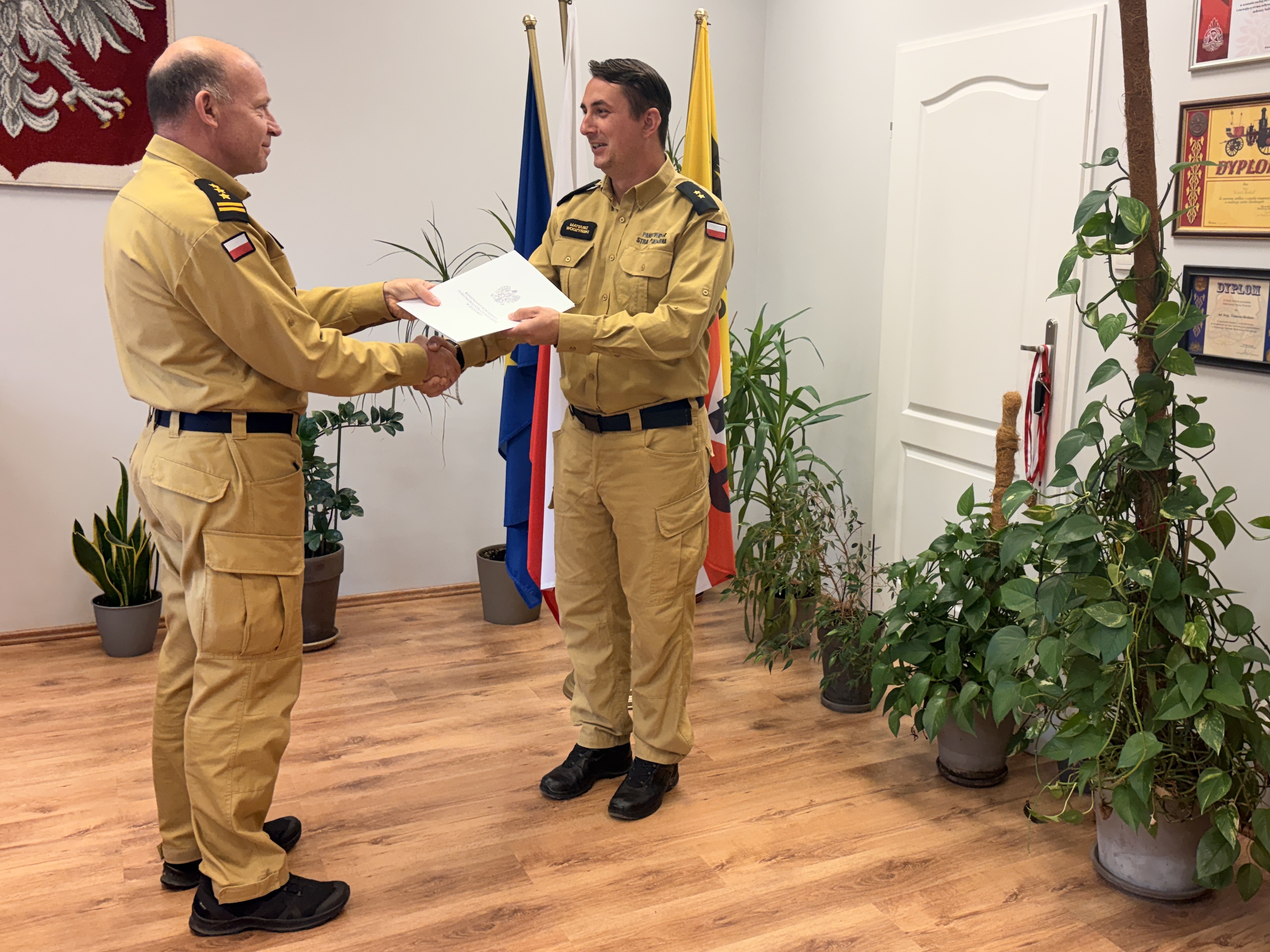 Komendant Powiatowy PSP w Złotoryi st. bryg. Tomasz Herbut pogratulował nowo mianowanym funkcjonariuszom, życząc im przy tym dalszych sukcesów na ścieżce zawodowej.