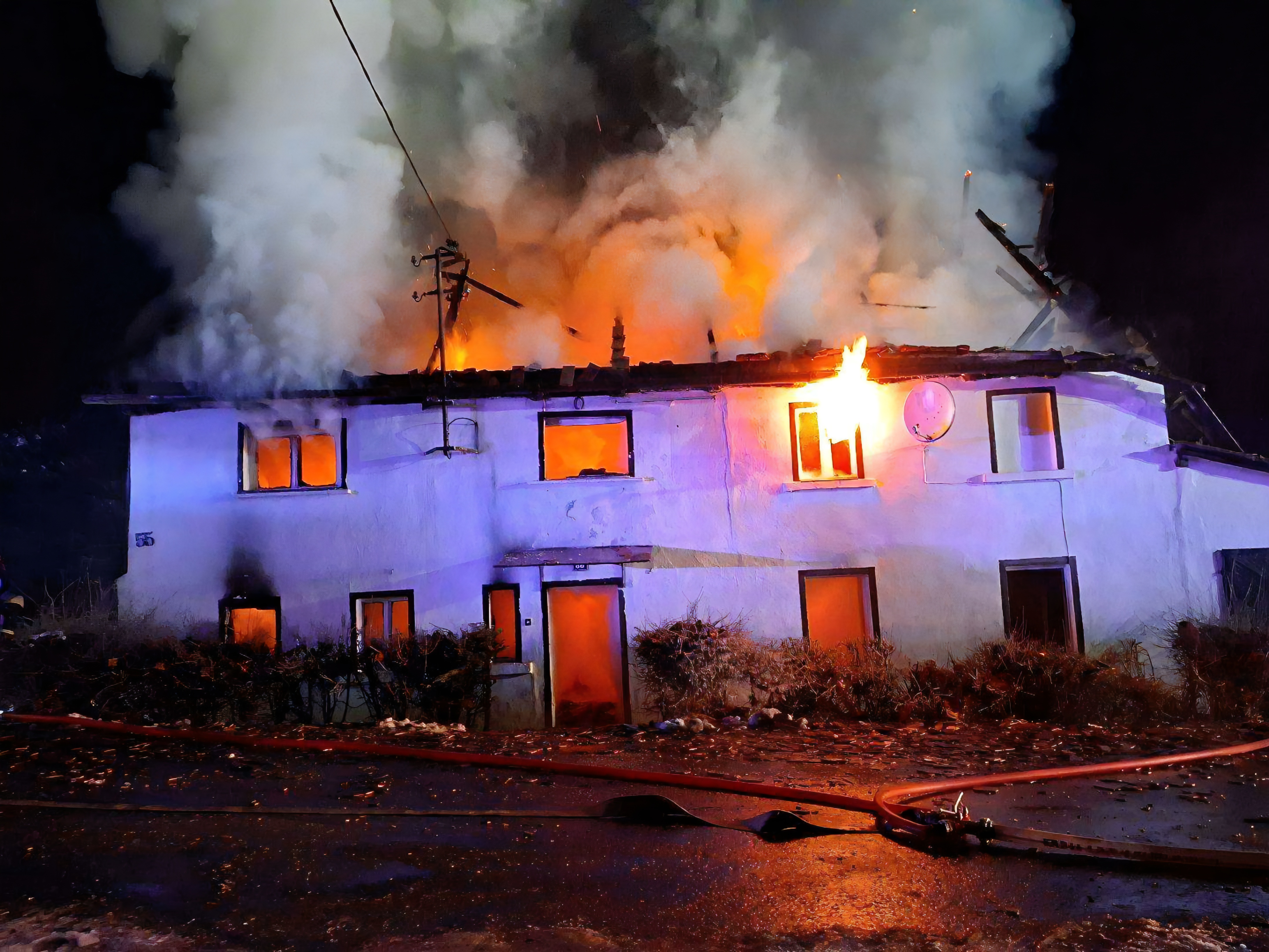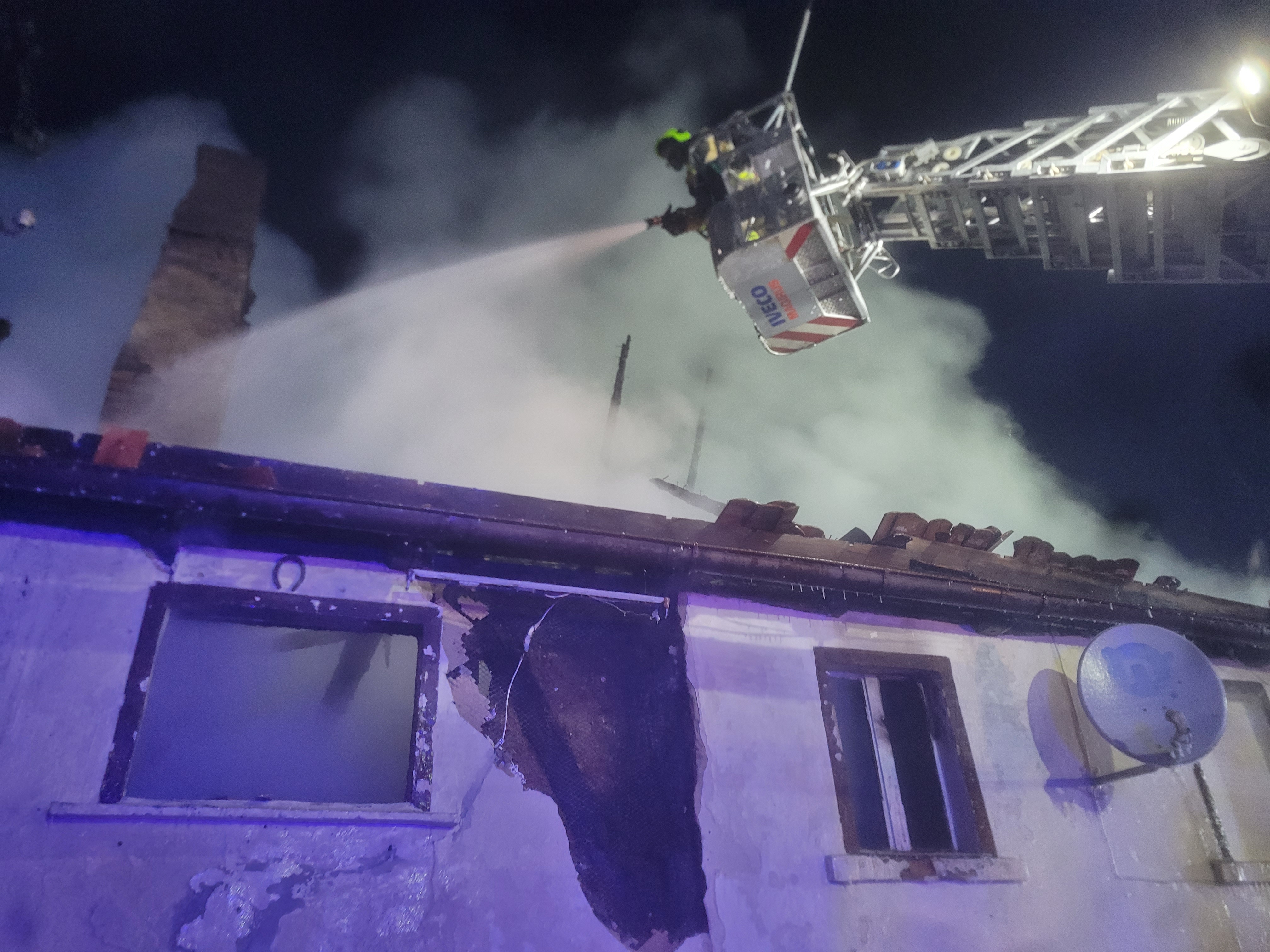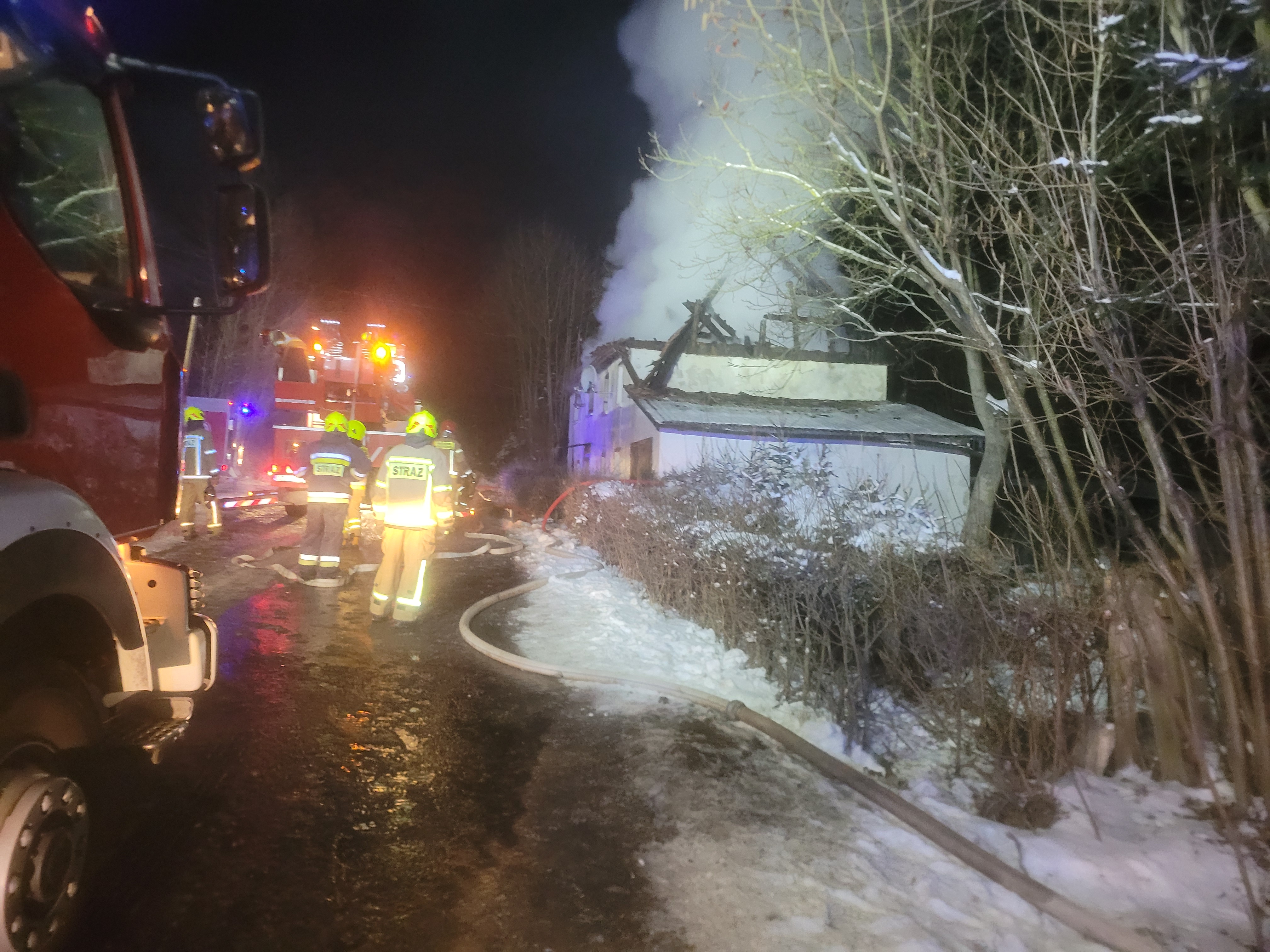 W dniu 16.02.2025 r. o godz. 22.09 do stanowiska kierowania KP PSP w Złotoryi wpłynęło zgłoszenie o pożarze budynku mieszkalnego w miejscowości Rząśnik. Po przybyciu na miejsce pierwszych jednostek ochrony przeciwpożarowej zastano budynek objęty w całości pożarem. Właściciel sam ewakuował się z obiektu. Ustalono, że nikt więcej w środku nie przebywa, natomiast w pomieszczeniu kuchni znajduje się butla z gazem propan-butan. Działania strażaków polegały na zabezpieczeniu miejsca zdarzenia oraz podjęciu działań gaśniczych. Właścicielowi udzielono kwalifikowanej pierwszej pomocy medycznej do czasu dojazdu na miejsce zespołu ratownictwa medycznego. Sukcesywnie, wraz z dojazdem na miejsce kolejnych sił i środków, zwiększano ilość podawanych środków gaśniczych, m. in. z podnośnika hydraulicznego i drabiny mechanicznej. Zasilanie wodne sprawiono z pobliskiego stawu. W kolejnej fazie chłodzono butlę propan-butan, którą następnie wyniesiono z budynku. Działania prowadzono z użyciem sprzętu ochrony układu oddechowego. Dalsze czynności ukierunkowane były na prace rozbiórkowe nadpalonych elementów dachu i poddasza. Pożar ugaszono. Przyczyny oraz okoliczności jego powstania ustala złotoryjska policja.
