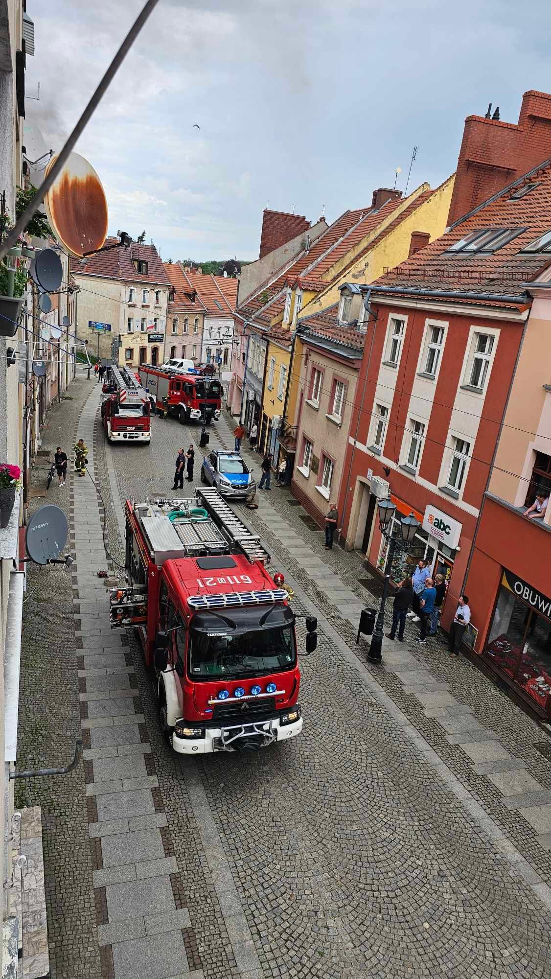 W dniu 5 maja, około godz. 16:44, dyżurny Stanowiska Kierowania Komendy Powiatowej Państwowej Straży Pożarnej w Złotoryi odebrał zgłoszenie o wydobywającym się dymie z okien kamienicy przy ul. Piłsudskiego w Złotoryi. Do zdarzenia zadysponował trzy zastępy z Jednostki Ratowniczo-Gaśniczej Złotoryja i po dwa zastępy z OSP Prusice i OSP Zagrodno, Zespół Ratownictwa Medycznego oraz Policję. Po dojeździe stwierdzono pożar mieszkania na drugim piętrze. Działania strażaków polegały na zabezpieczeniu miejsca zdarzenia, odłączeniu dopływu prądu i gazu w budynku oraz podaniu jednego prądu gaśniczego do palącego się pomieszczenia. Po ugaszeniu pożaru przystąpiono do oddymiania obiektu. Urządzeniami pomiarowymi sprawdzono możliwość występowania substancji niebezpiecznych – nie stwierdzono. Przyczyny powstania pożaru ustala Policja.