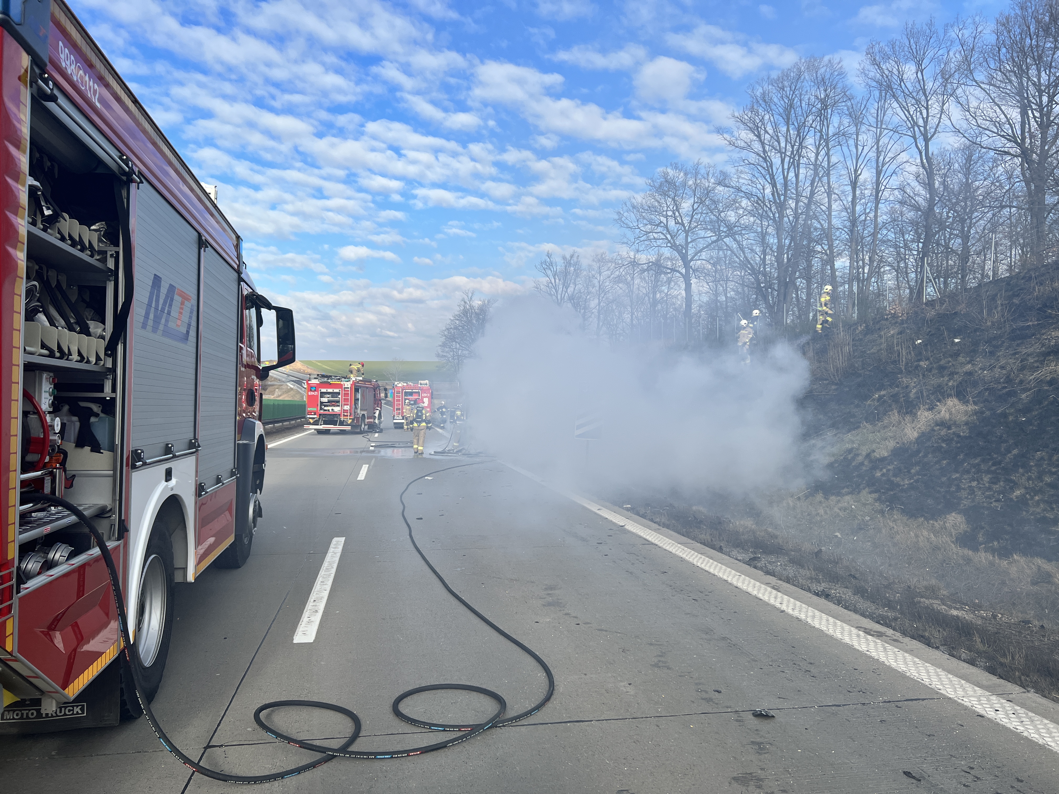 W poniedziałek 7 marca br. ok. godz. 9: 22 SK KP PSP w Złotoryi przyjęło zgłoszenie o pożarze samochodu na drodze krajowej A4 na wysokości miejscowości Lubiatów. Po przybyciu na miejsce zdarzenia okazało się, że pożarem objęty jest cały pojazd typu bus. Działania straży polegały na ugaszeniu pojazdu przy użyciu piany gaśniczej. Jednocześnie podjęto kolejne działania gaśnicze ze względu na pożar suchej trawy palącej się na poboczu drogi. W zdarzeniu nikt nie odniósł obrażeń. W działaniach udział brały zastępy z JRG w Złotoryi, JRG w Legnicy, OSP Wysocko, OSP Prusice, zespół ratownictwa medycznego oraz policja. Działania trwały dwie godziny.