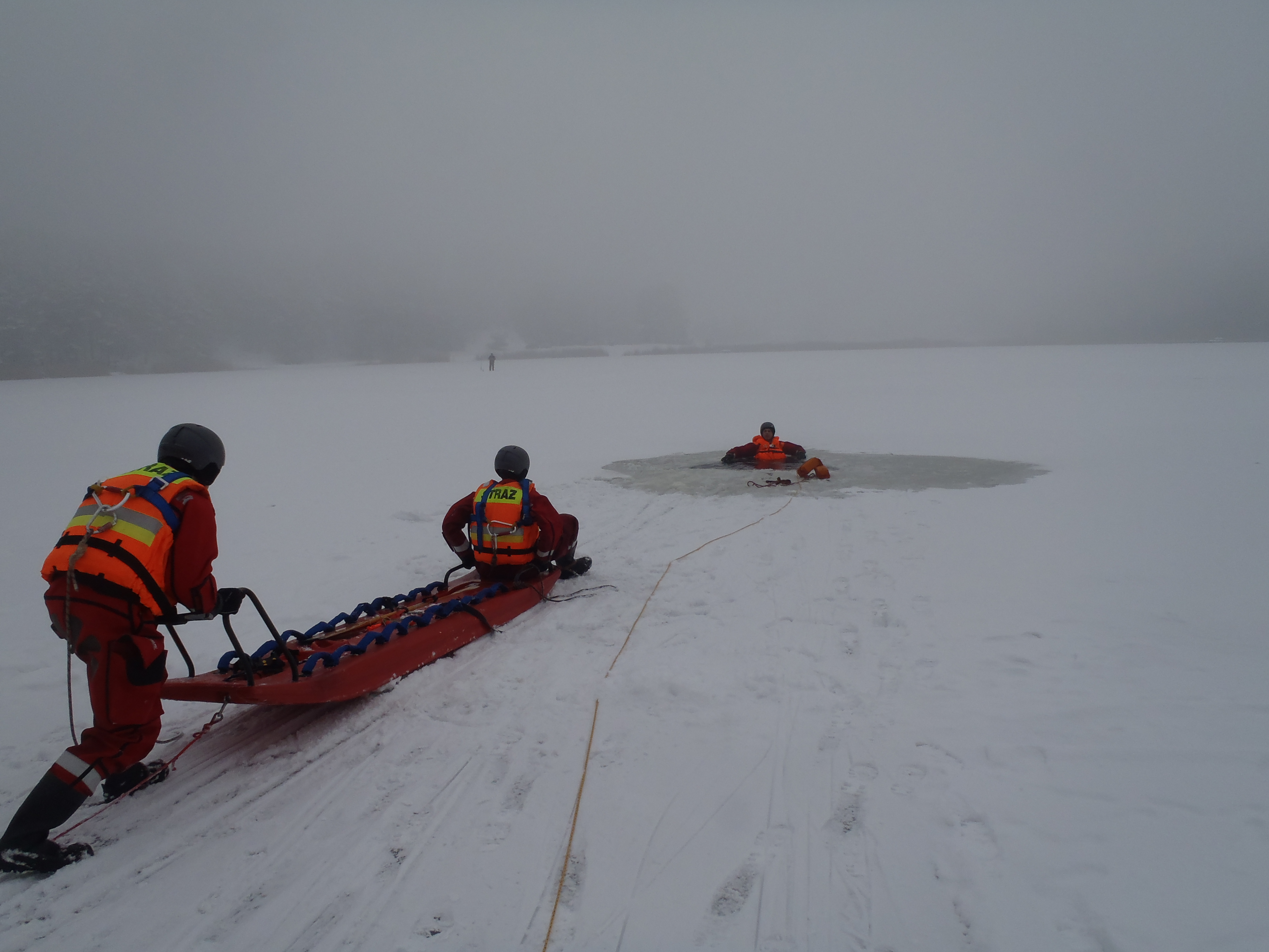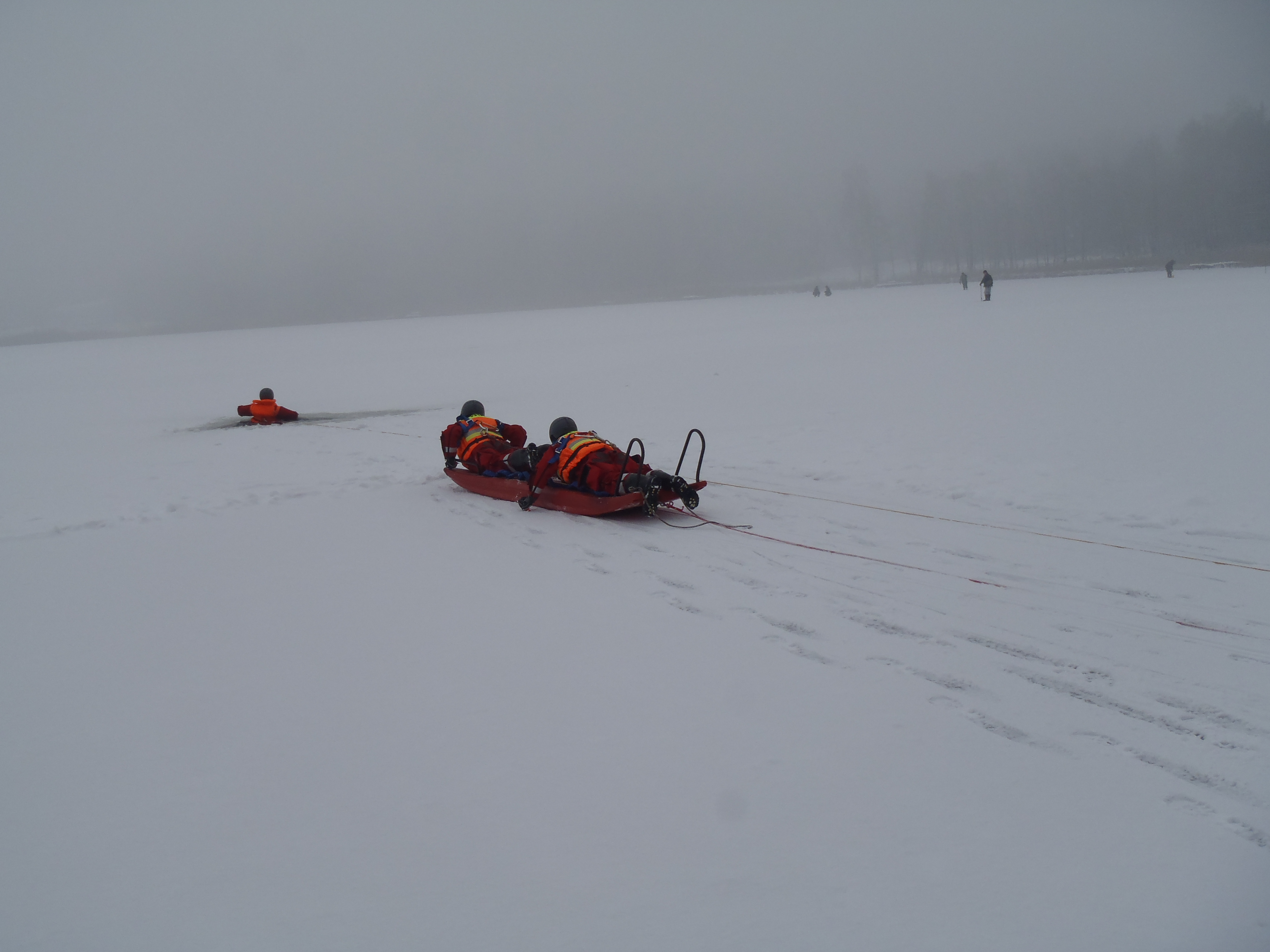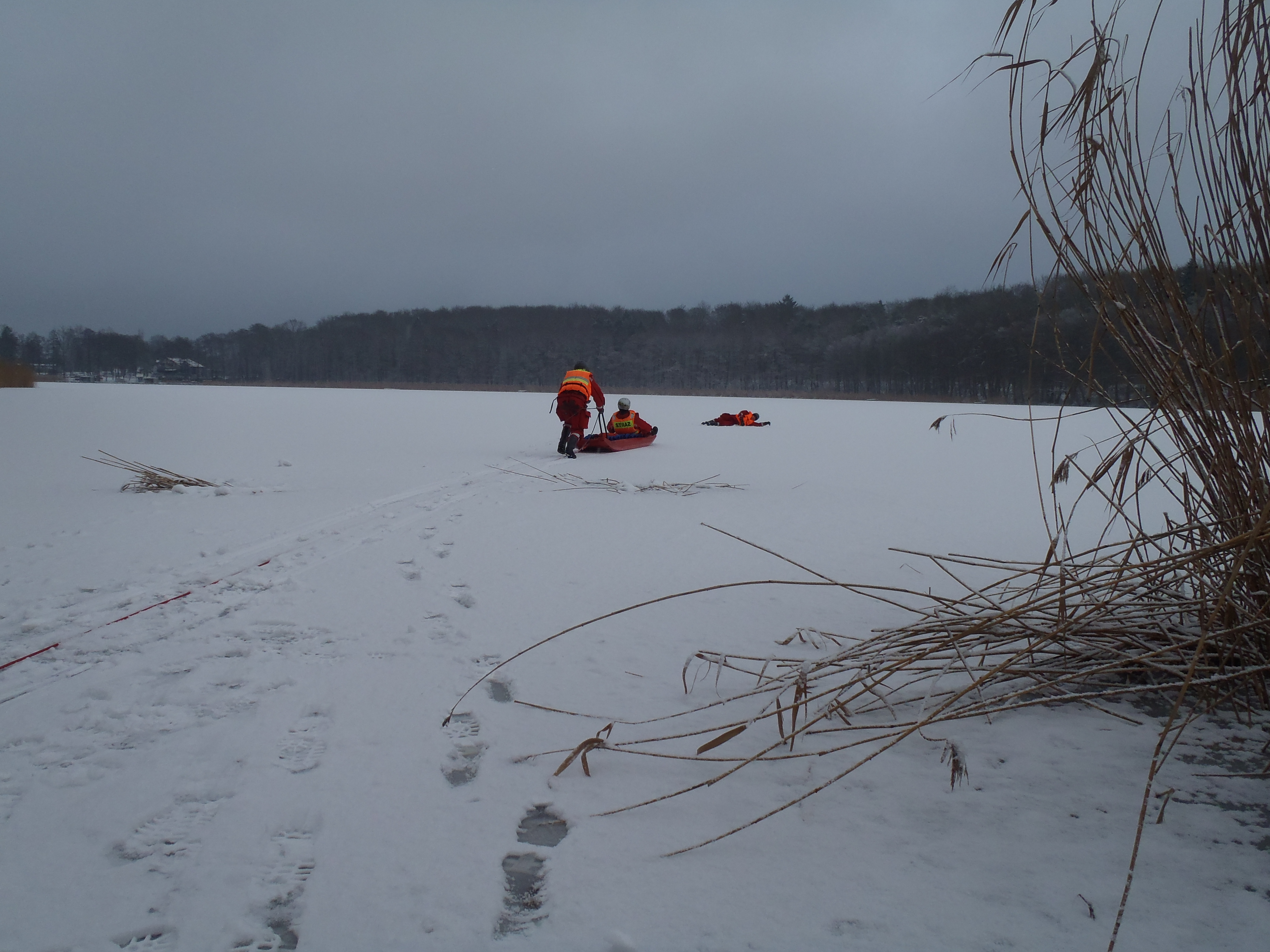 Wykorzystując aurę pogodową strażacy ze złotowskiej jednostki doskonalili techniki działań ratowniczych na akwenach wodnych pokrytych lodem. Głównym założeniem ratowników było przećwiczenie odpowiednich technik ratowania poszkodowanych, pod którymi załamał się lód. Przećwiczono wariant ewakuacji osoby tonącej w odpowiedniej asekuracji ratowników z wykorzystaniem sań lodowych. Omówiono też zagadnienia medyczne związane z wychłodzeniem organizmu do którego zazwyczaj dochodzi w takich sytuacjach.
