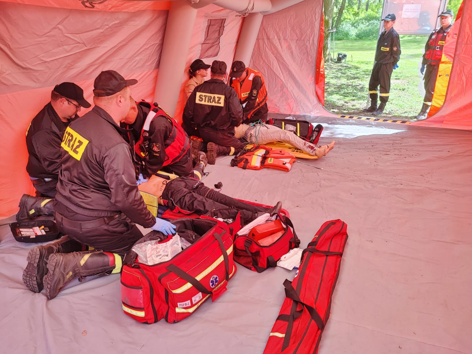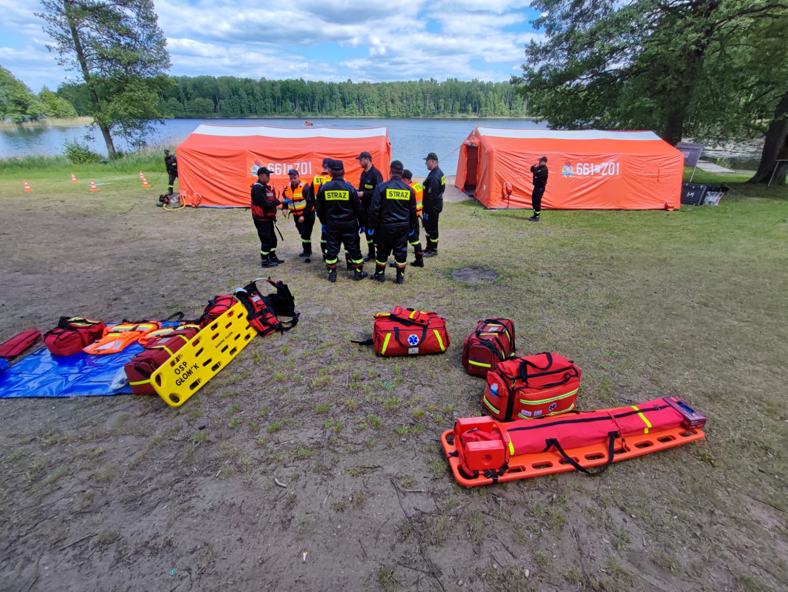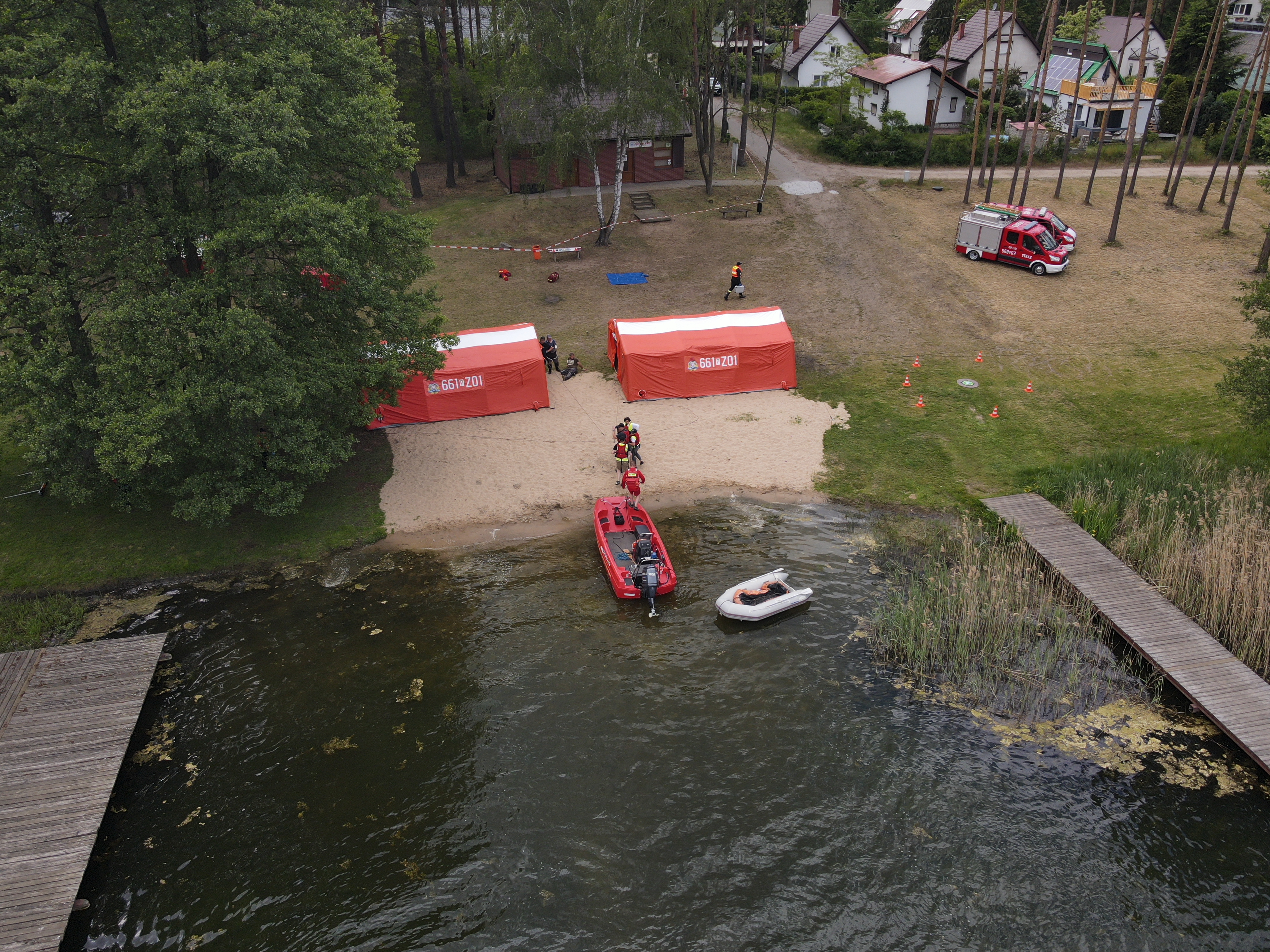 30 maja br. przeprowadzone zostały ćwiczenia zgrywające z udziałem jednostek OSP, zastępów PSP oraz służb współdziałających. Działania prowadzono na akwenie jeziora Borówno i przyległym kompleksie leśnym. Główne założenia obejmowały doskonalenie działań z zakresu ratownictwa wodnego zarówno w zakresie podstawowym jak również w zakresie specjalistycznym. Zrealizowane założenie obejmowało m.in. dotarcie do osób poszkodowanych znajdujących się na powierzchni akwenu w uszkodzonych jednostkach pływających, poszukiwanie poszkodowanych znajdujących się pod powierzchnią wody a także dotarcie i udzielenie kwalifikowanej pierwszej pomocy osobom znajdującym się w odciętych częściach kompleksu leśnego w sąsiedztwie linii brzegowej. W wyznaczonym miejscu utworzono doraźną bazę zapewniająca zaplecze medyczno-logistyczne akcji. Do ewakuacji wykorzystywano m.in. łodzie ratownicze a prowadzone rozpoznanie wspierano poprzez wykorzystanie BSP ( bezzałogowego statku powietrznego).