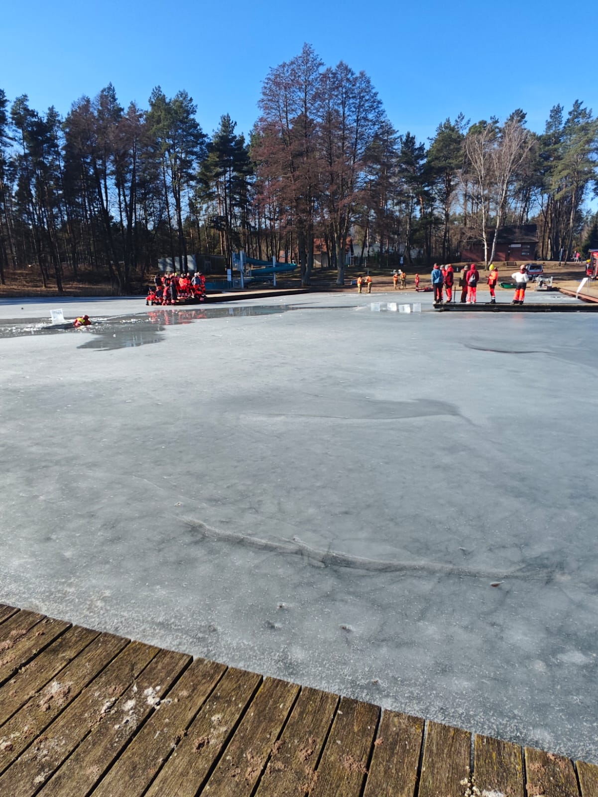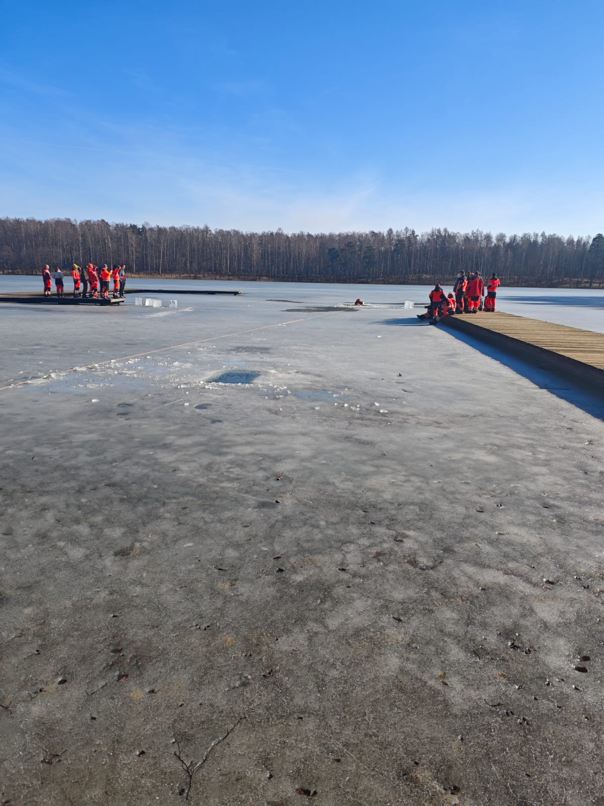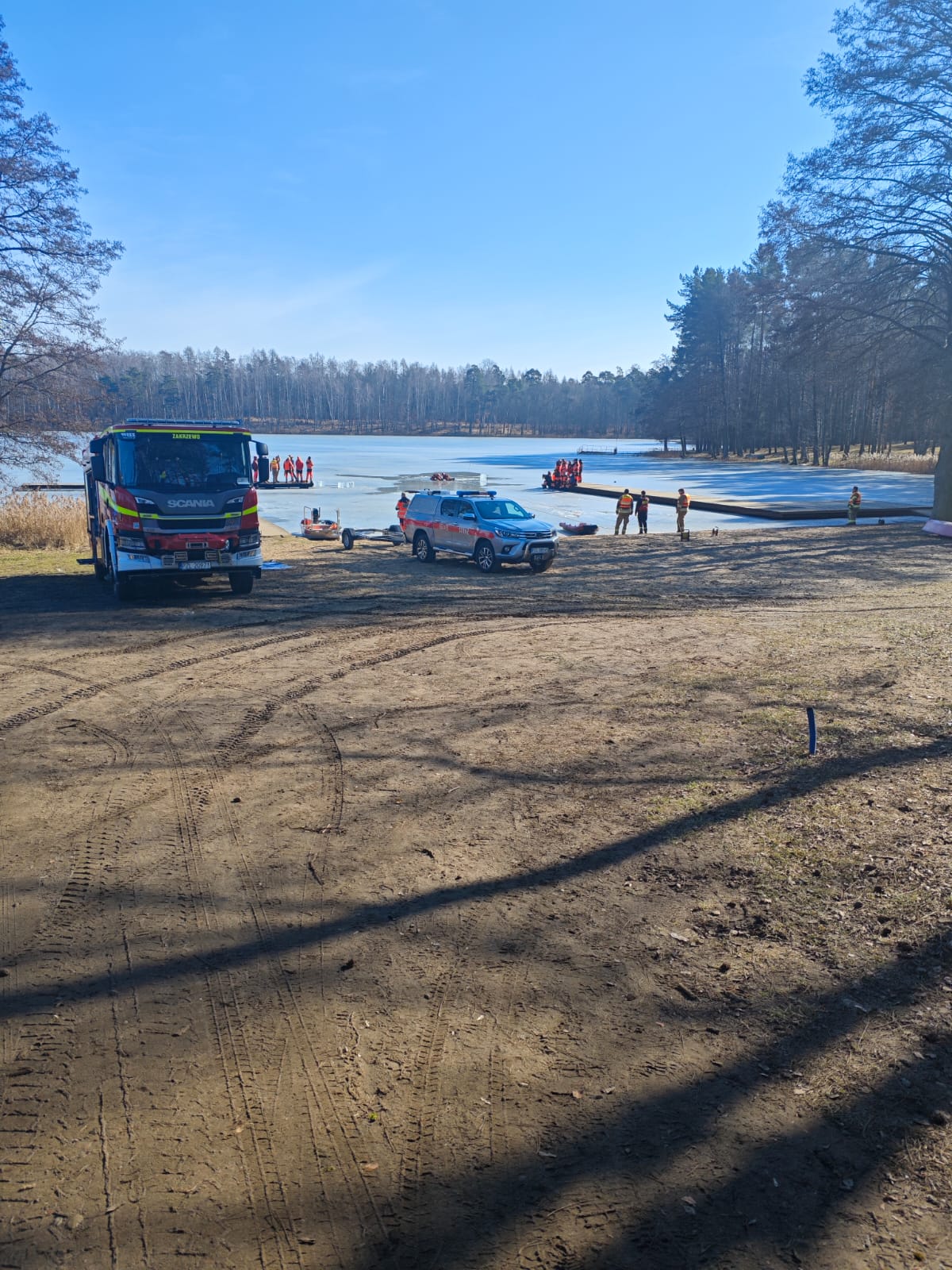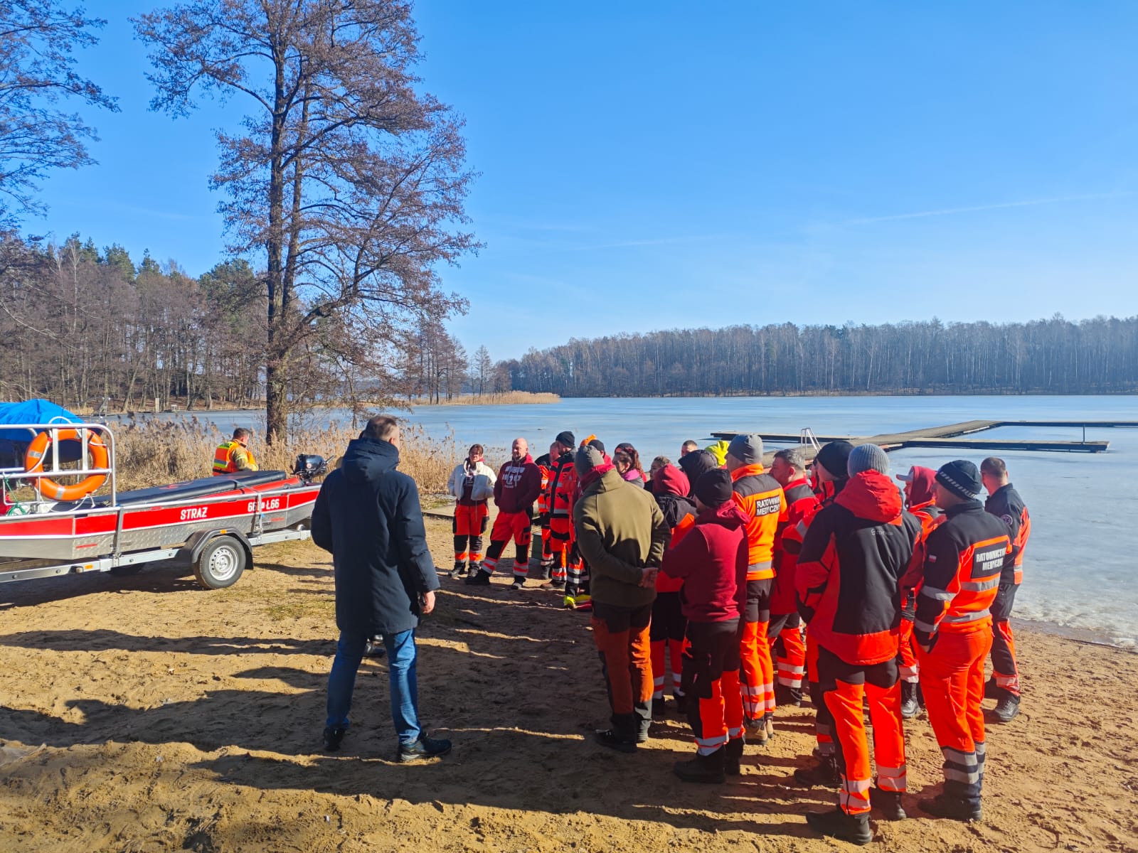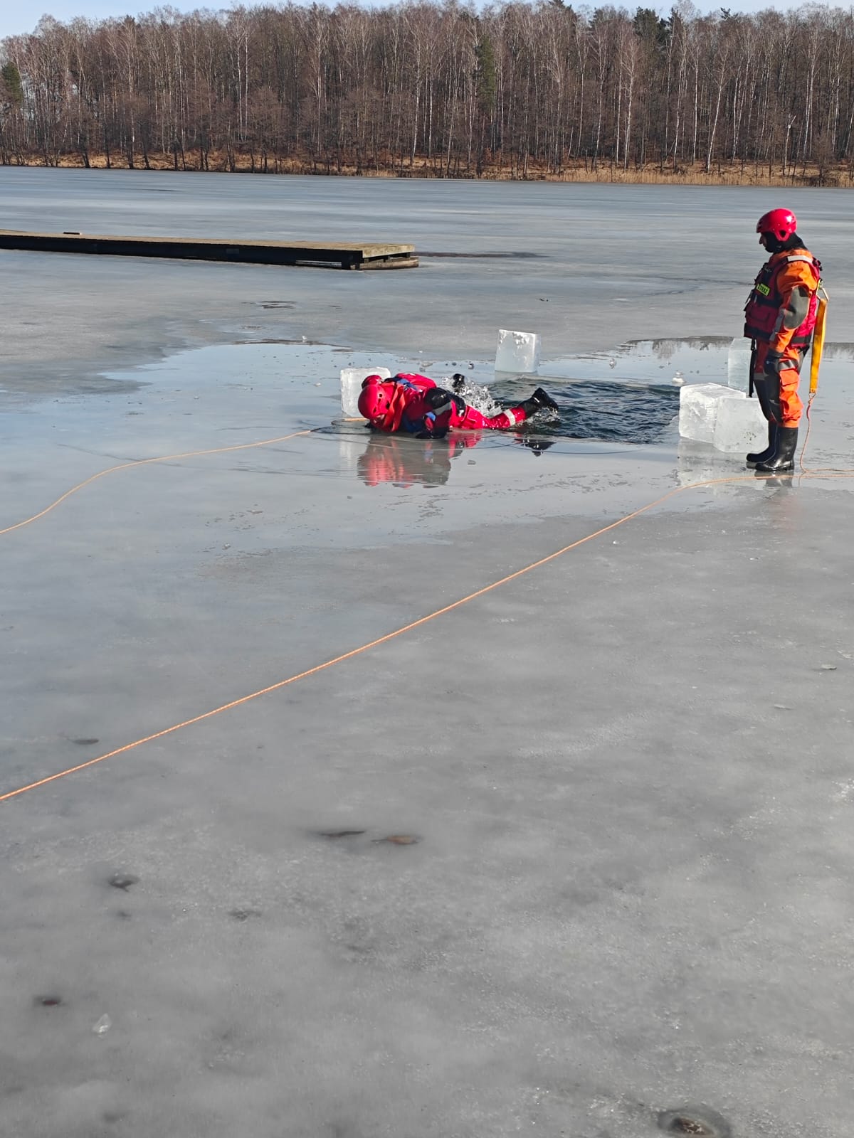 W dniu 5 marca w ramach doskonalenia zawodowego strażacy JRG Złotów wspólnie z druhami z OSP Zakrzewo przeprowadzili ćwiczenia na akwenie zalodzonym jeziora Borówno w zakresie podejmowania i ewakuacji osób poszkodowanych.