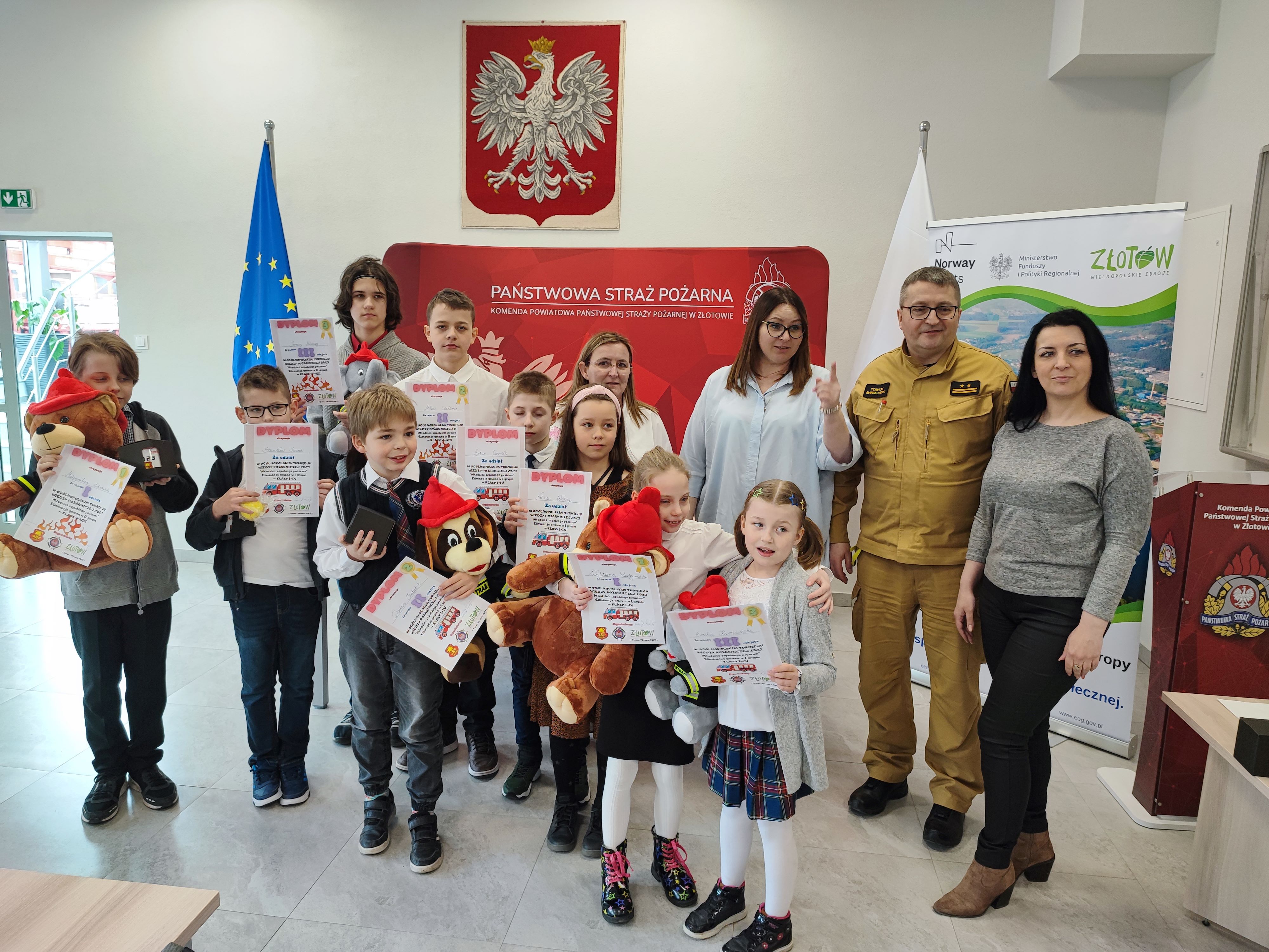 30 marca w świetlicy Komendy Powiatowej Państwowej Straży Pożarnej w Złotowie odbyły się eliminacje gminne Ogólnopolskiego Turnieju Wiedzy Pożarniczej. Do eliminacji przystąpiły 4 szkoły z miejscowości Złotów: Szkoła Podstawowa nr 1 im. Stanisława Staszica, Szkoła Podstawowa nr 2 im. Adama Mickiewicza, Szkoła Podstawowa nr 3, Katolicka Szkoła Podstawowa im. św. Wojciecha w Złotowie. Organizatorem turnieju była Ochotnicza Straż Pożarna w Złotowie oraz Komenda Powiatowa PSP w Złotowie, która użyczyła pomieszczenie świetlicy a patronat nad turniejem objął Burmistrz Miasta Złotowa Adam Pulit. W turnieju uczestniczyło 9 uczniów, zwycięzców eliminacji wewnątrzszkolnych w 2 grupach: grupa I - klasy 1-4 i grupa II - klasy 5-8. Zadaniem uczestników było rozwiązanie testu wiedzy z ilością 40 pytań, gdzie jedna odpowiedź była prawidłowa. Nad porządkiem przebiegu turnieju czuwała komisja w składzie: Komendant Miejski Ochrony Przeciwpożarowej dh Tomasz Manikowski jednocześnie funkcjonariusz Komendy Powiatowej PSP w Złotowie, Prezes Ochotniczej Straży Pożarnej Daniela Manikowska, członek Ochotniczej Straży Pożarnej dh Krzysztof Krawczyk jednocześnie funkcjonariusz Komendy Powiatowej PSP w Złotowie i przedstawiciel Burmistrza Miasta Złotowa Pani Magda Wenda. Dla uczestników turnieju został przeprowadzony pokaz mobilnego symulatora zagrożeń pożarowych budynku mieszkalnego jednorodzinnego oraz zapoznano z wyposażeniem pojazdów ratowniczo - gaśniczych na stanie jednostki ratowniczo-gaśniczej w Złotowie.