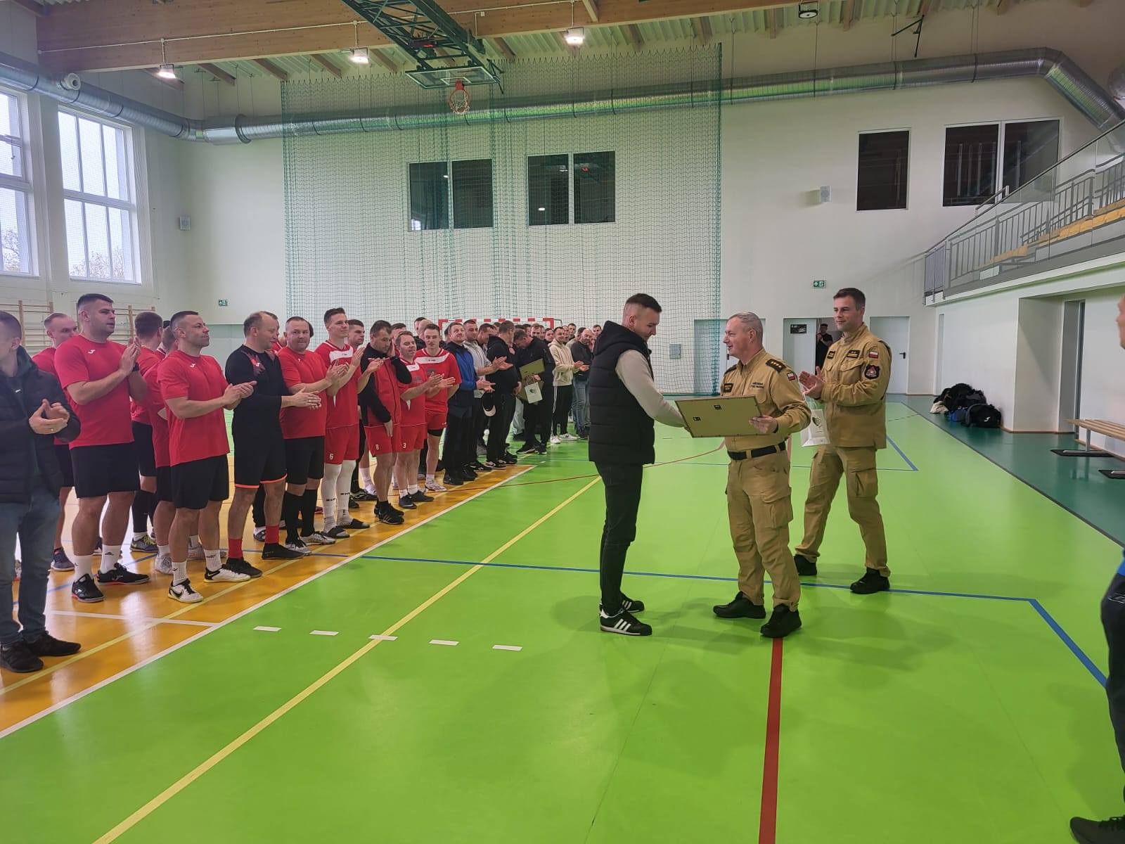 Szczególne podziękowania należą się również ekipie sędziowskiej, która w dynamicznych i niejednokrotnie emocjonalnych rozgrywkach piłkarskich wzorowo realizowała swoje zadania, oceniając strażackie umiejetności piłkarskie.