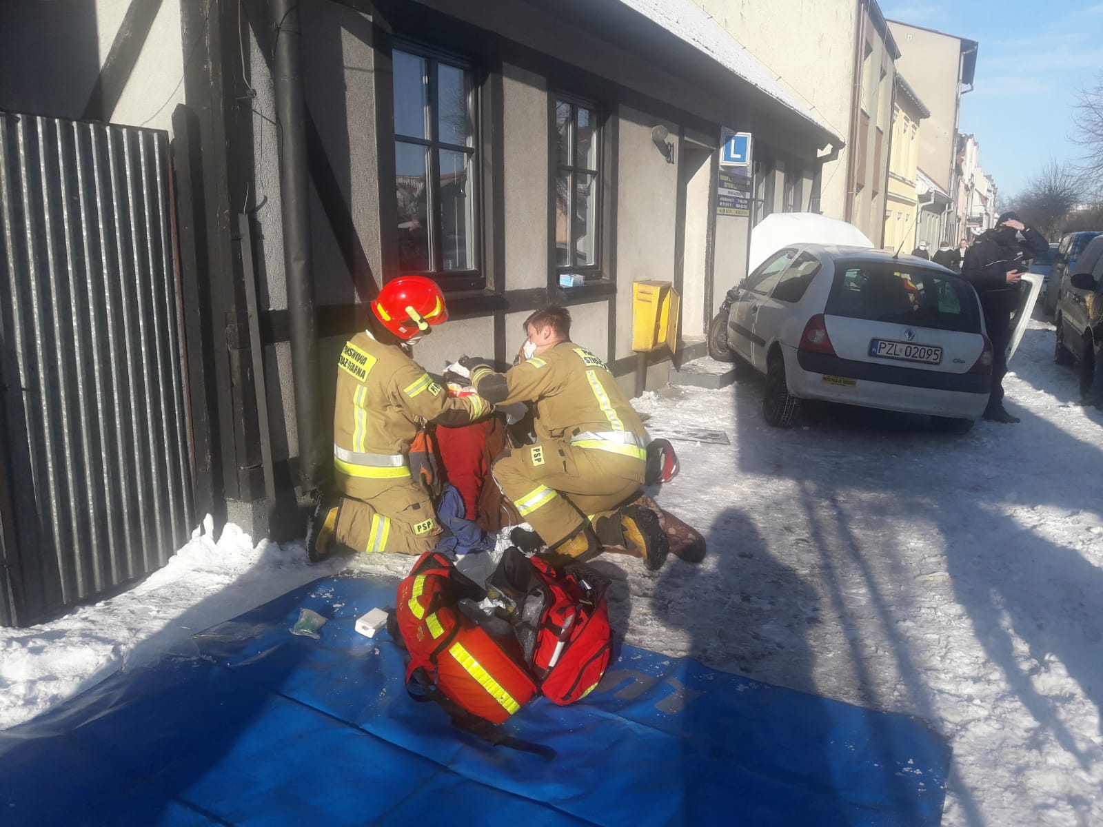 12 lutego 2021 roku o godzinie dziesiątej Stanowisko Kierowania PSP w Złotowie przyjęło zgłoszenie o kolizji drogowej z udziałem pieszego w Złotowie na ulicy Obrońców Warszawy. Do zdarzenia udały się siły i środki złotowskiej jednostki ratowniczo-gaśniczej. W trakcie dojazdu i następnie przejęcia udzielania pomocy i rozpoznania operacyjnego okazało się, że osoba prowadząca pojazd osobowy z nieznanych przyczyn zjechała na chodnik uszkadzając na budynkach szafki przyłączy energetycznych, gazowych,telekomunikacyjnych i w konsekwencji doprowadziła do potrącenia pieszej znajdującej się na chodniku. Pojazd zakończył przemieszczanie się na schodach budynku mieszkalnego. Potrącona osoba została przejęta przez zespół ratownictwa medycznego i przewieziona do szpitala. Kierowca samochodu osobowego po przebadaniu przez medyków pozostał w miejscu zdarzenia. Dalsze czynności nad uszkodzonymi przyłączeniami technicznymi na budynkach przejęły stosowne służby przybyłe do miejsca prowadzonych działań przez strażaków.