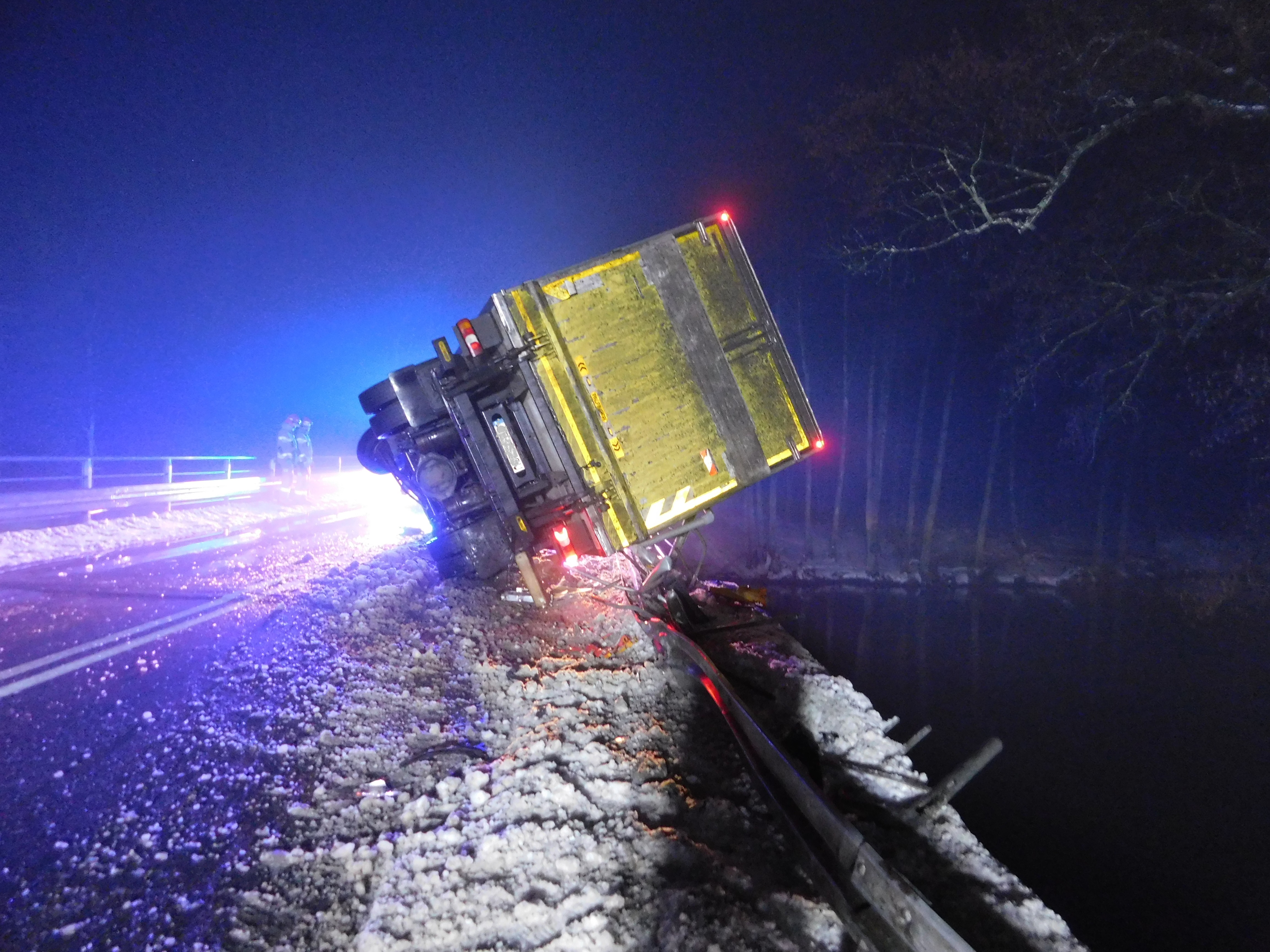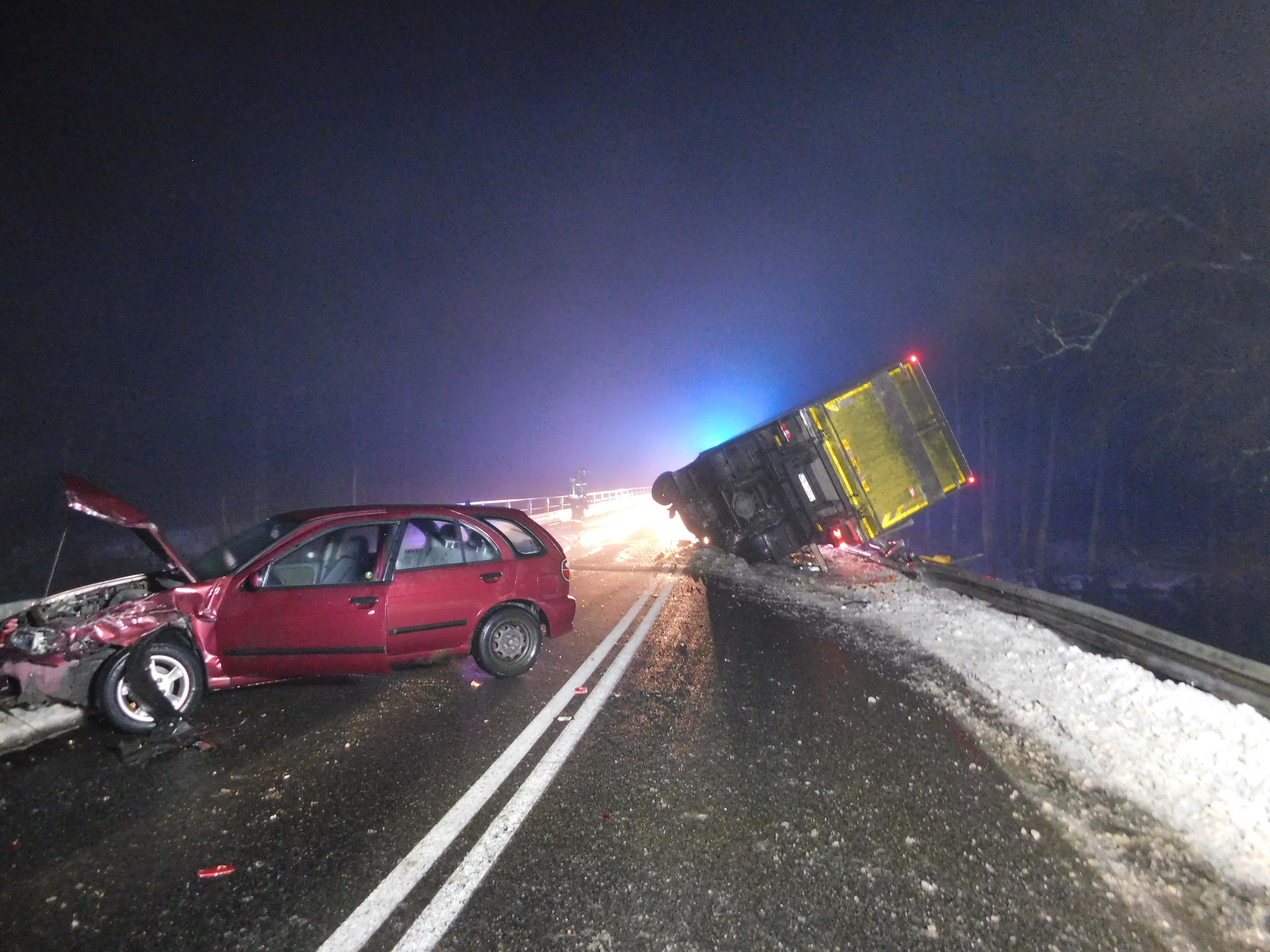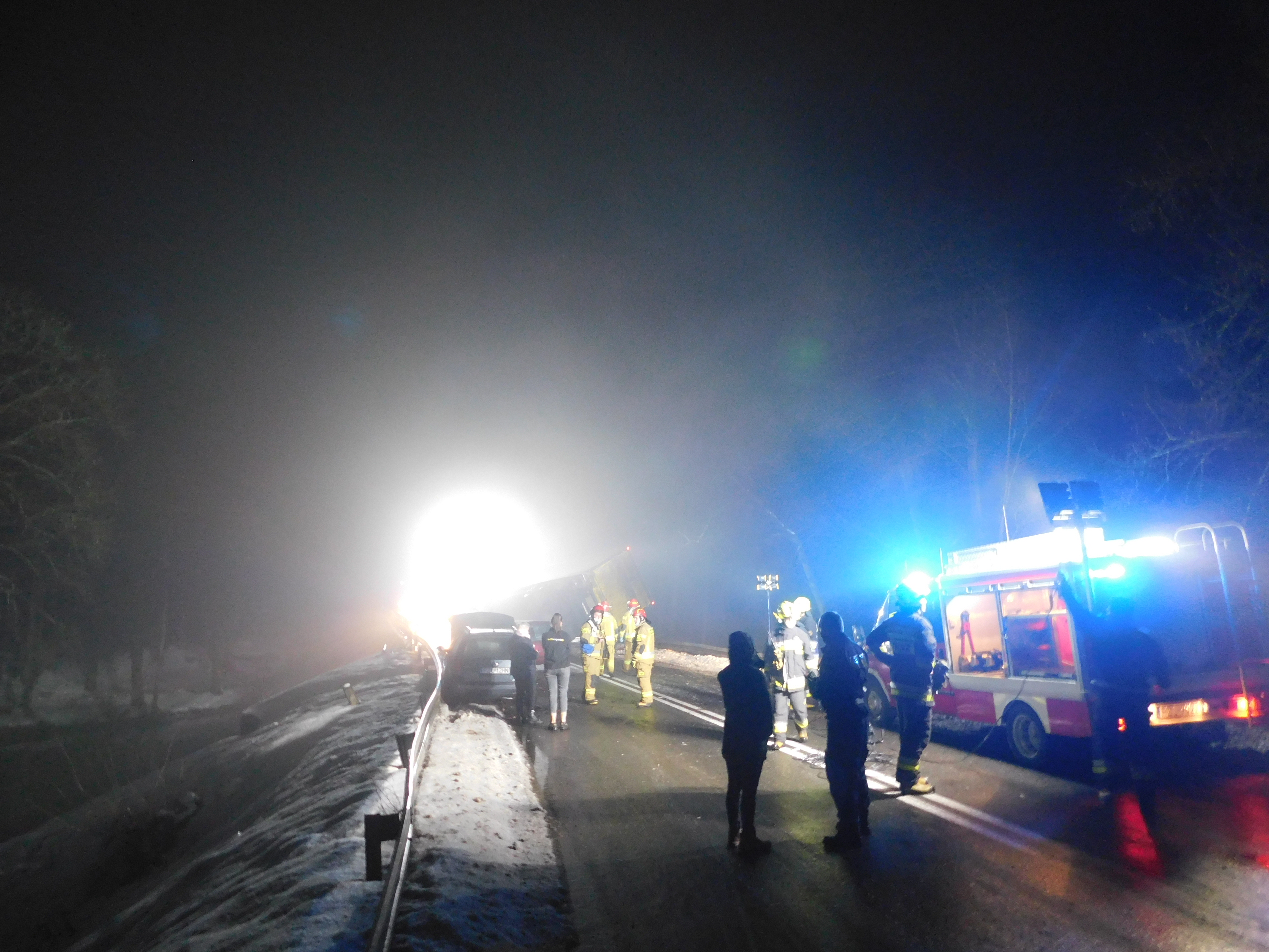 Krótko przed północą 17 lutego 2021 roku do stanowiska kierowania PSP w Złotowie wpłynęło zgłoszenie o wypadku drogowym na drodze wojewódzkiej DW 188 pomiędzy Jastrowiem a miejscowością Górzna (Gmina Złotów). Informacja wskazywała na udział trzech pojazdów (jedna ciężarówka i dwa samochody osobowe). Do działań skierowano zastępy z jednostki ratowniczo-gaśniczej ze Złotowa i OSP z Jastrowia. W chwili dojazdu służb droga całkowicie zablokowana przez pojazd ciężarowy, który w wyniku bardzo złych warunków pogodowych wpadł w poślizg i uderzył w bariery energochłonne na moście. Kierujący opuścił pojazd o własnych siłach nie doznając obrażeń. W miejscu poprzedzającym rozbitą ciężarówkę doszło do zderzenia jeszcze dwóch samochodów osobowych, którymi łącznie podróżowały trzy osoby. Po przebadaniu przez obecny na miejscu zespół ratownictwa medycznego wszyscy pozostali w miejscu zdarzenia. Strażacy wraz z policjantami wstrzymali całkowicie ruch na danym odcinku drogi, zabezpieczono wycieki płynów eksploatacyjnych z pojazdów, oświetlono teren akcji. W celu udrożnienia ruchu i zniwelowania powstałego zagrożenia, śliskości jezdni wezwano dodatkowe służby pomocy drogowej, piaskarkę, dźwig. Po zabraniu przez służby techniczne uszkodzonych pojazdów usunięto resztki powypadkowe, przywrócono ruch na drodze. Zdarzenie było obsługiwane łącznie przez osiem pojazdów wszystkich służb, jedenastu strażaków i 9 osób pozostałych podmiotów. Akcja trwała ponad 5 godzin.