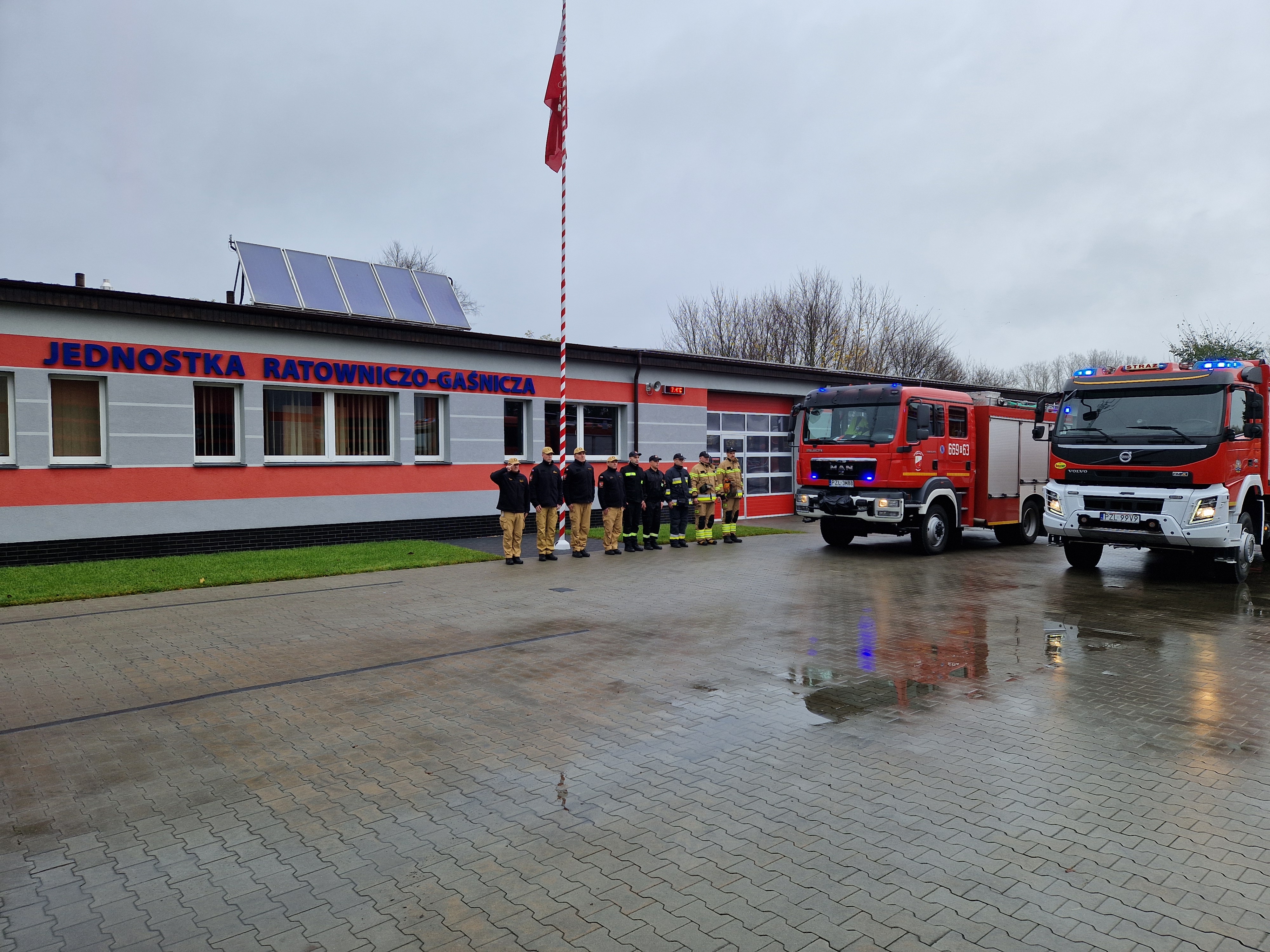 Hołd oddano przy włączonych sygnałach świetlnych i dźwiękowych samochodów pożarniczych.