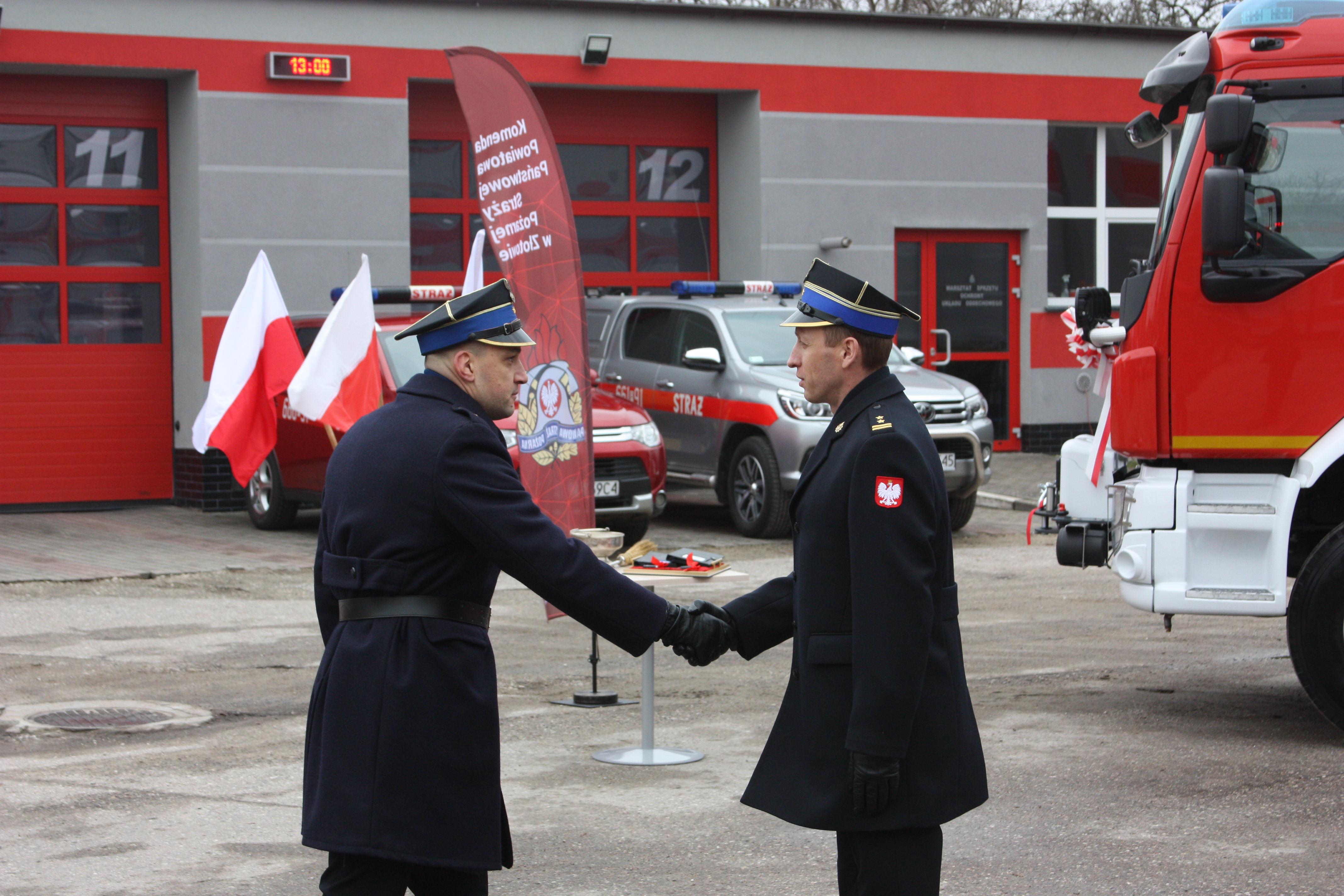 Uroczystość zaczęła się od złożenia meldunku Zastępcy Wielkopolskiego Komendanta Wojewódzkiego bryg. Tomaszowi Grelakowi, po czym przystąpiono do oficjalnego przekazania dwóch nowych pojazdów dla złotowskiej komendy. Wręczenia kluczyków do pojazdów dokonali: