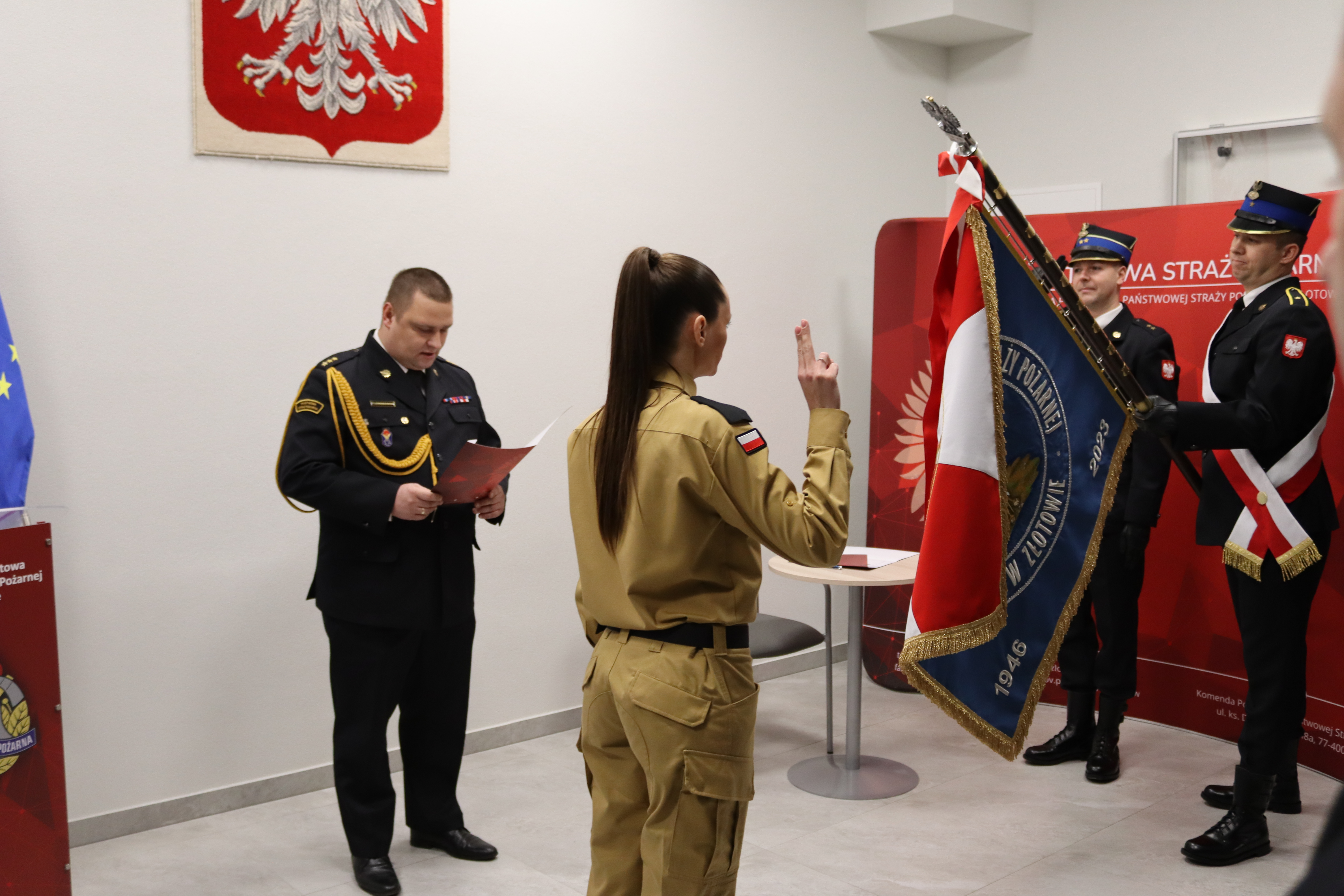 Naradę roczną dla funkcjonariuszy i funkcjonariuszek oraz pracownika cywilnego rozpoczęto od uroczystego ślubowania nowej funkcjonariuszki, która złożyła ślubowanie na sztandar KP PSP w Złotowie. Ślubowanie odczytał Komendant Powiatowy PSP w Złotowie kpt. Tomasz Lewandowski, który po zakończonym ślubowaniu przedstawiła zakupy i wydatki mijającego roku.