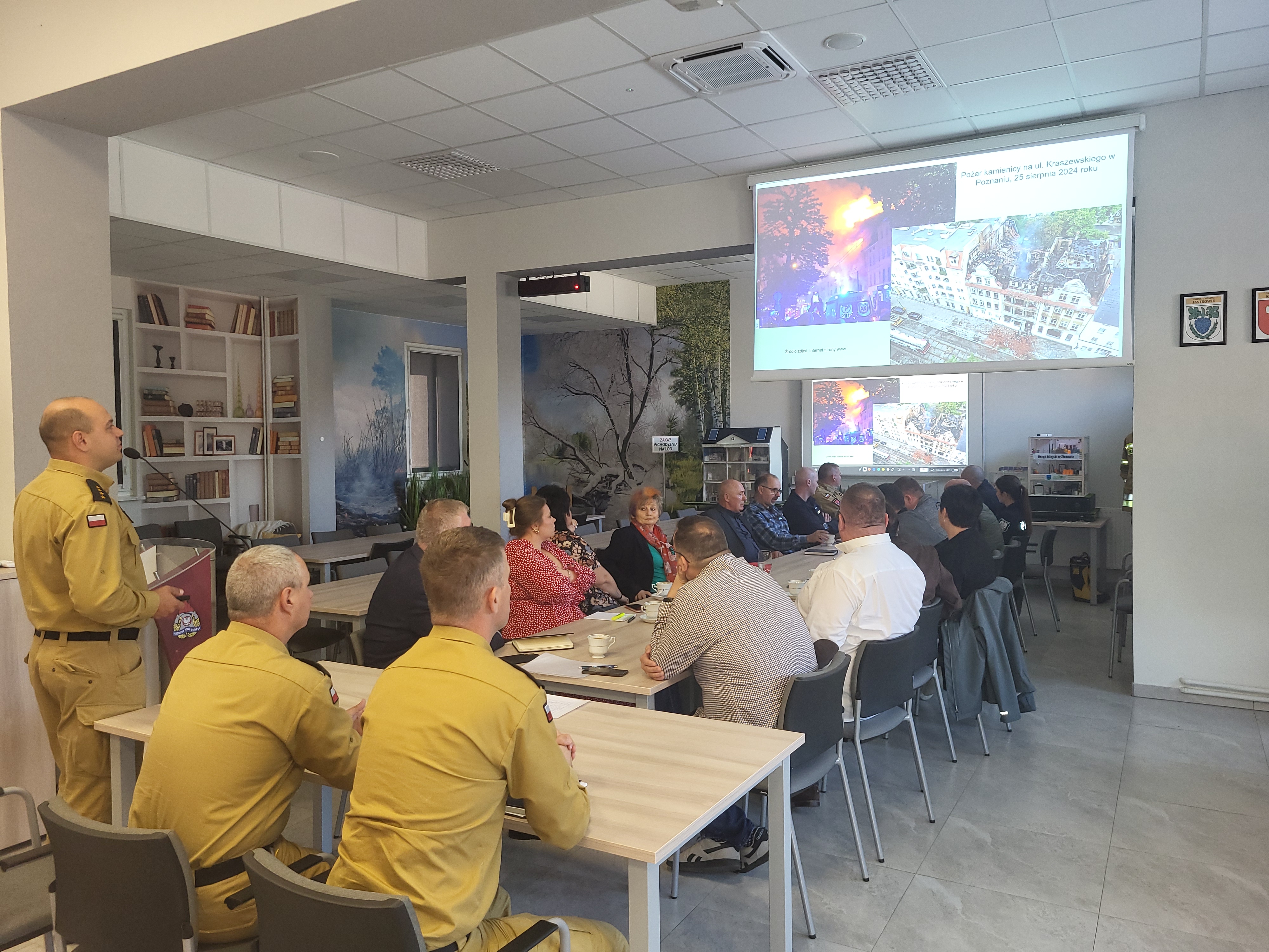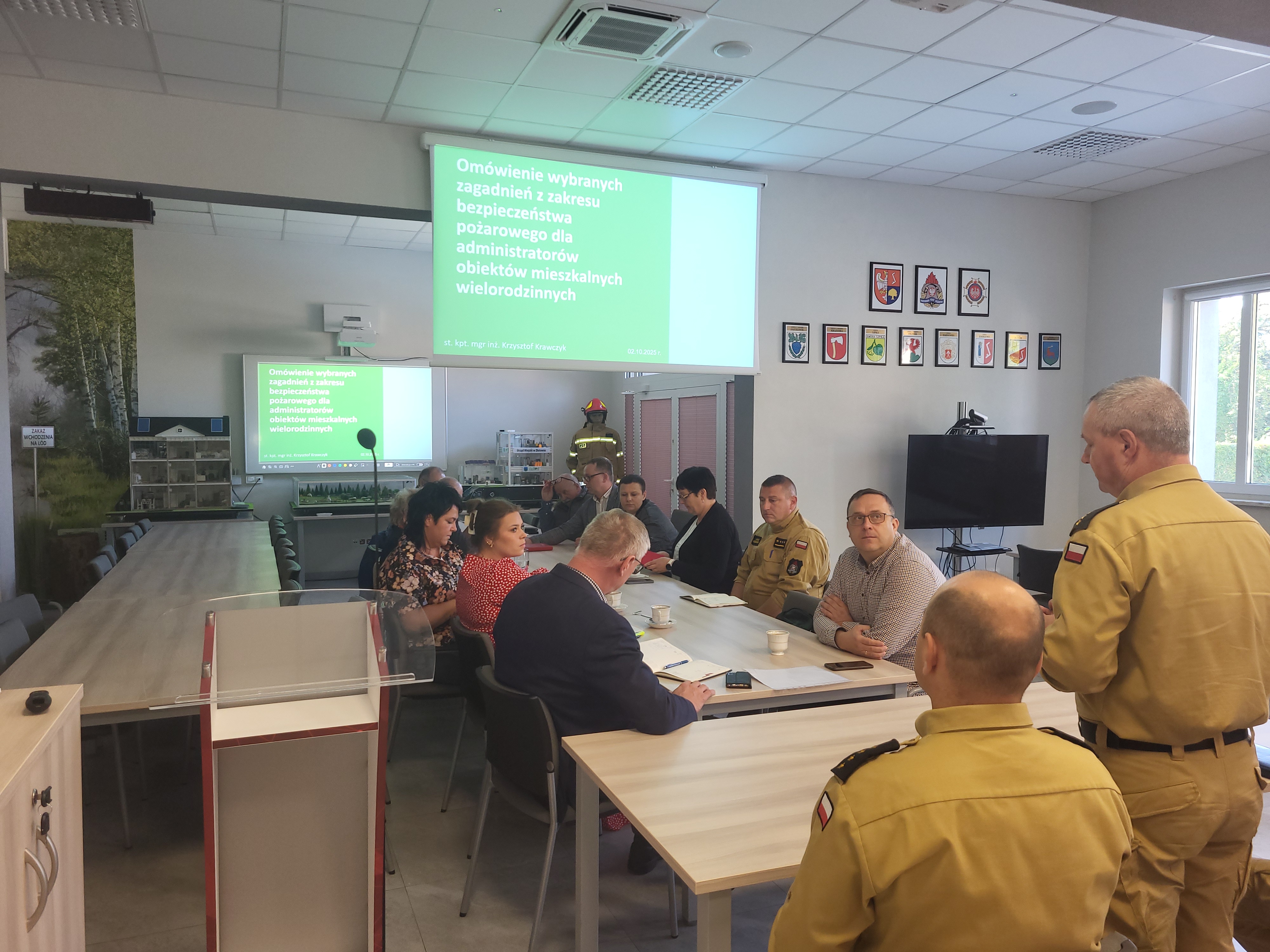 2 października br. w Komendzie Powiatowej PSP odbyła się narada z udziałem przedstawicieli zarządców budynków mieszkalnych wielorodzinnych, spółdzielni i wspólnot mieszkaniowych , a także służb kominiarskich i Komendy Powiatowej Policji.