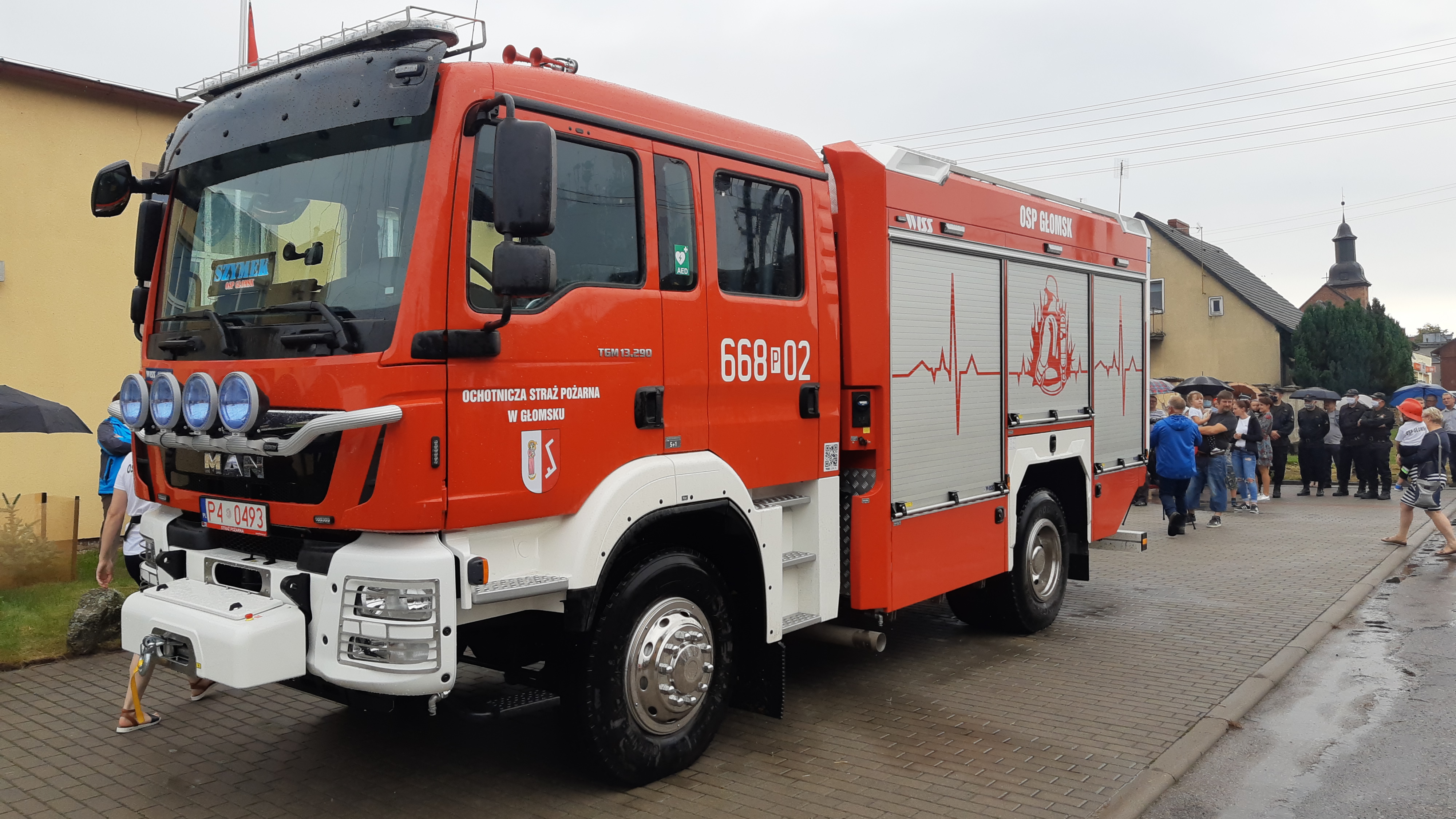Powitanie nowego średniego samochodu ratowniczo-gaśniczego w Ochotniczej Straży Pożarnej w Głomsku