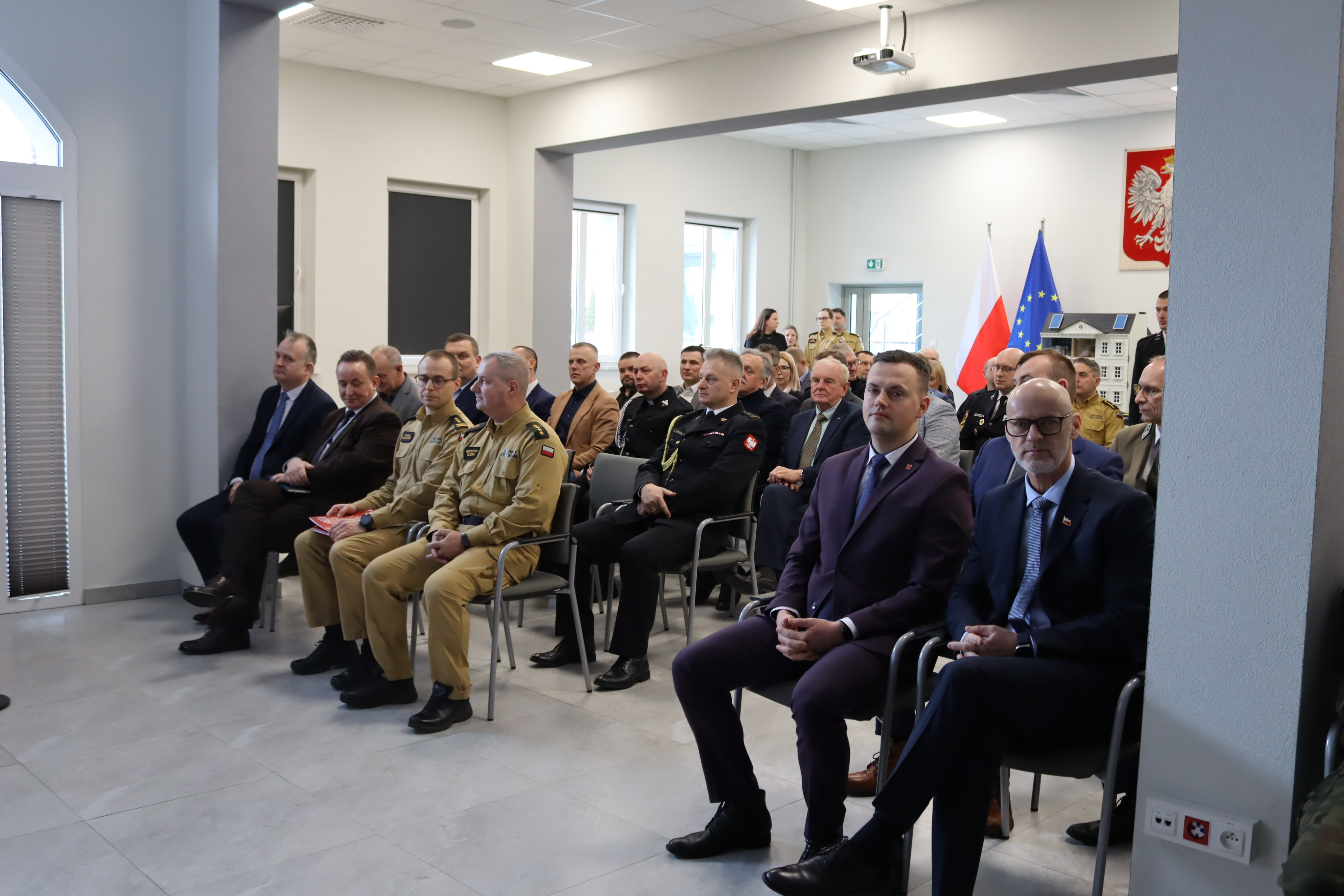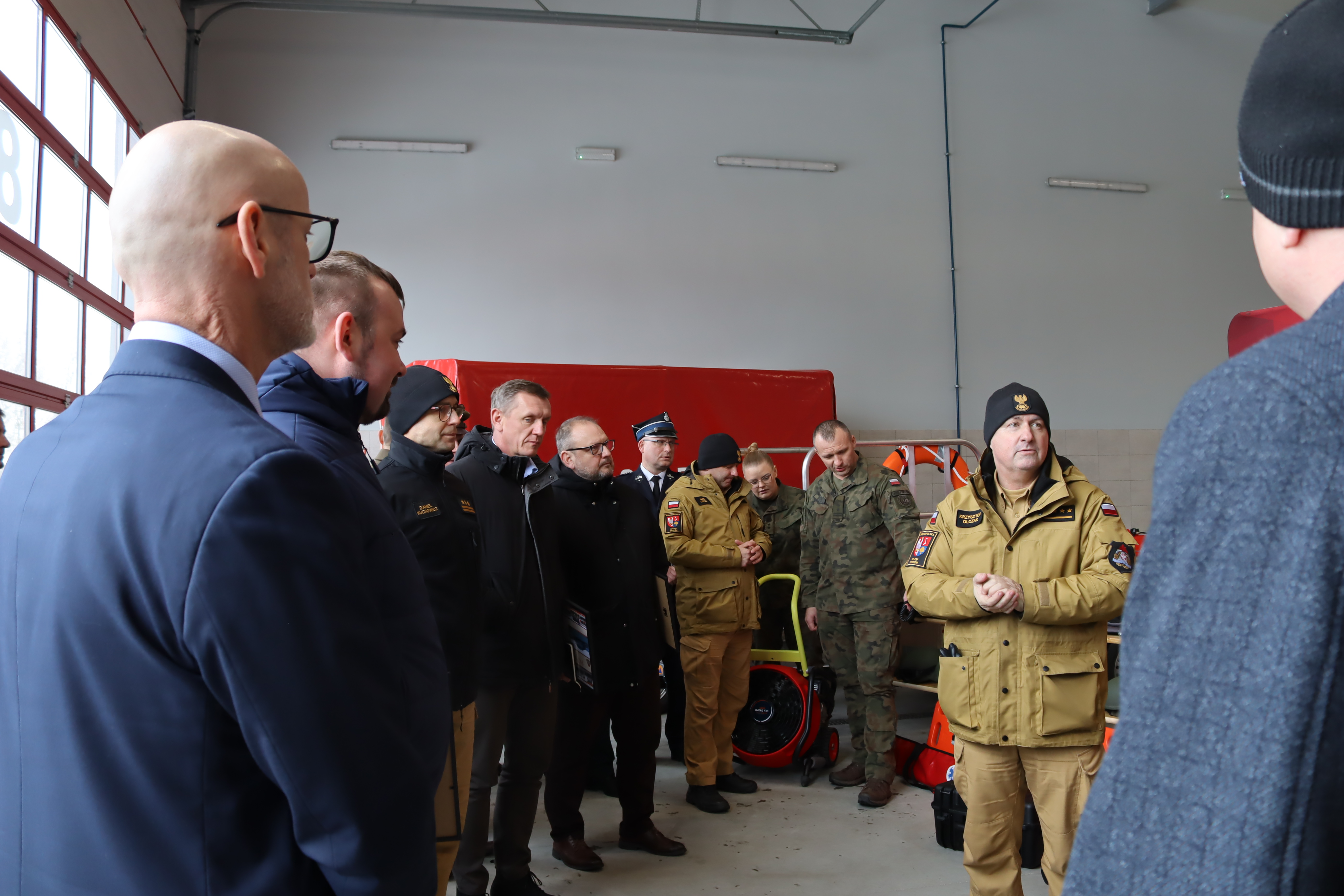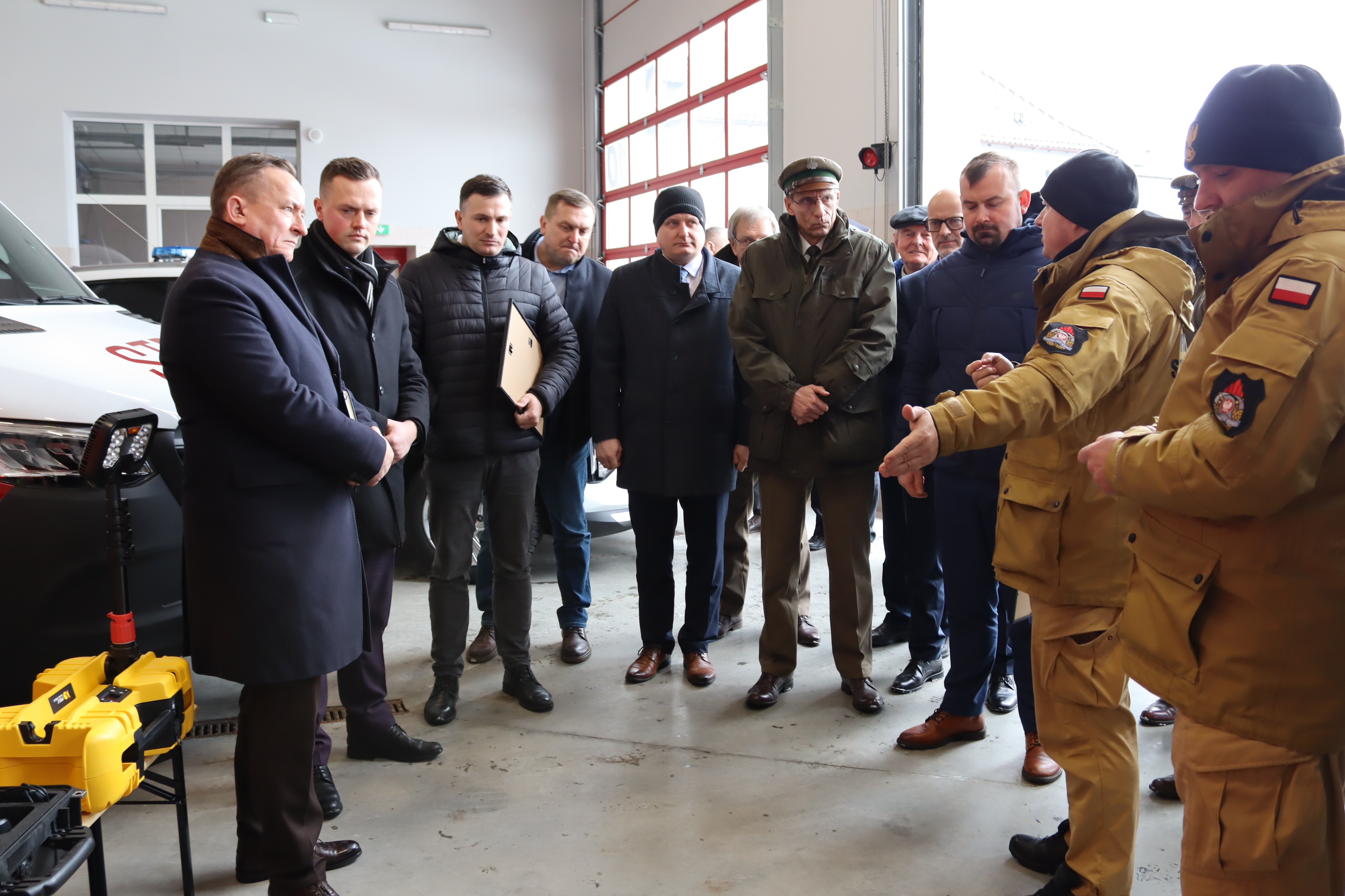Po zakończeniu części oficjalnej uczestnicy zostali zaproszeni do garaży komendy, gdzie zaprezentowano sprzęt pozyskany w 2025 roku. Była to okazja do zapoznania się z nowoczesnym wyposażeniem wykorzystywanym w działaniach ratowniczo-gaśniczych oraz rozmów o dalszych potrzebach inwestycyjnych.