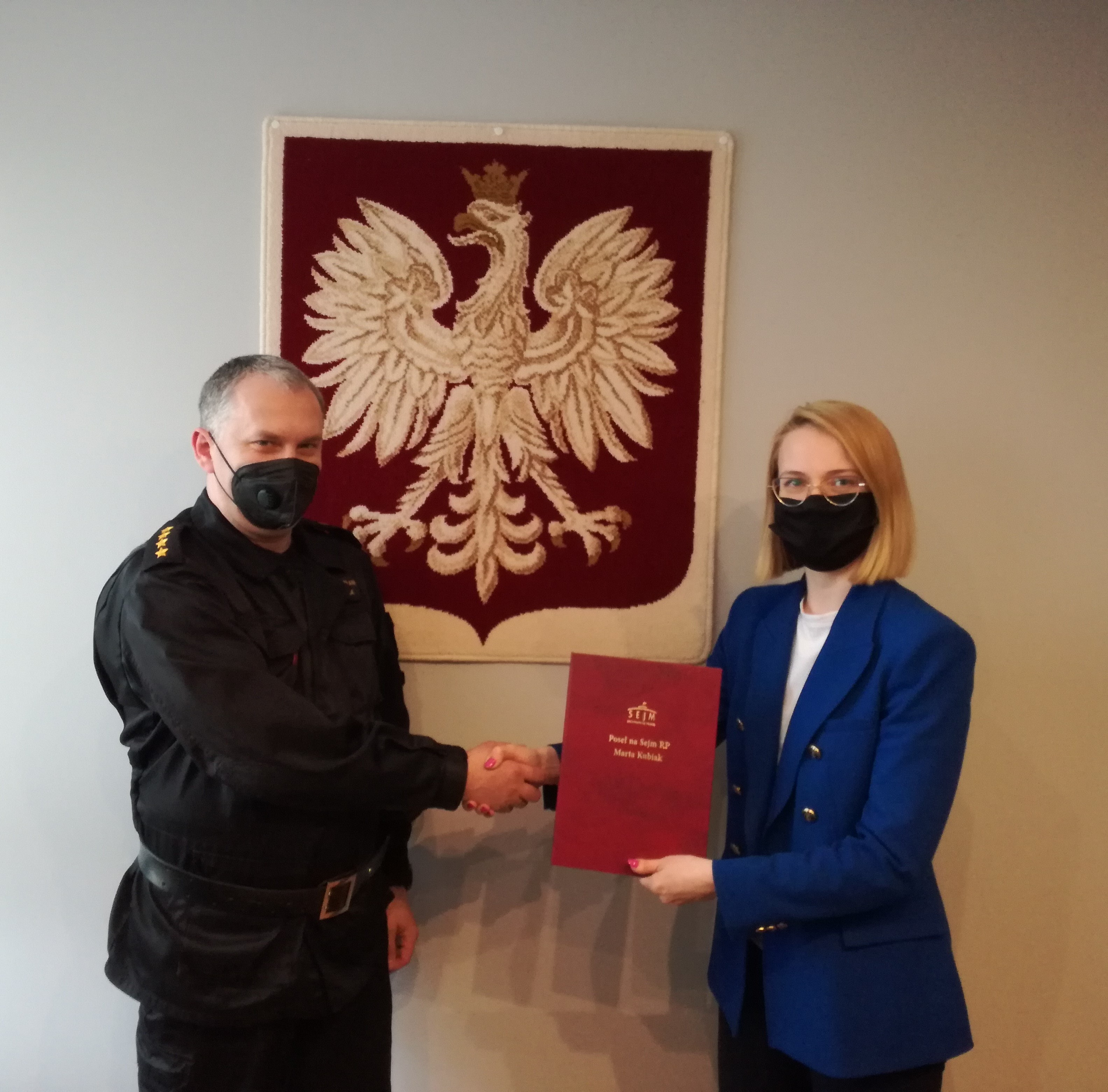 26 maja 2021r. złotowską komendę powiatową PSP w ramach roboczej wizyty odwiedziła Pani Marta Kubiak Poseł na Sejm RP. W trakcie spotkania komendant powiatowy mł. bryg. Jarosław Kołak przedstawił m.in. zakres realizowanych zadań inwestycyjnych i ich stopień zaawansowania w odniesieniu do prowadzonych prac na rozbudowywanym obecnie budynku administracyjnym złotowskiej komendy. Jednocześnie Pani Poseł na ręce komendanta powiatowego z okazji majowych obchodów Dnia Strażaka złożyła podziękowania za realizowane działania na rzecz utrzymania wymaganego poziomu bezpieczeństwa na terenie powiatu złotowskiego. Podziękowania zostały również przekazane dla wszystkich złotowskich strażakówa w szczególności także tych, którzy w minionym okresie zostali awansowani i wyróżnieni w związku z realizacją obowiązków służbowych.