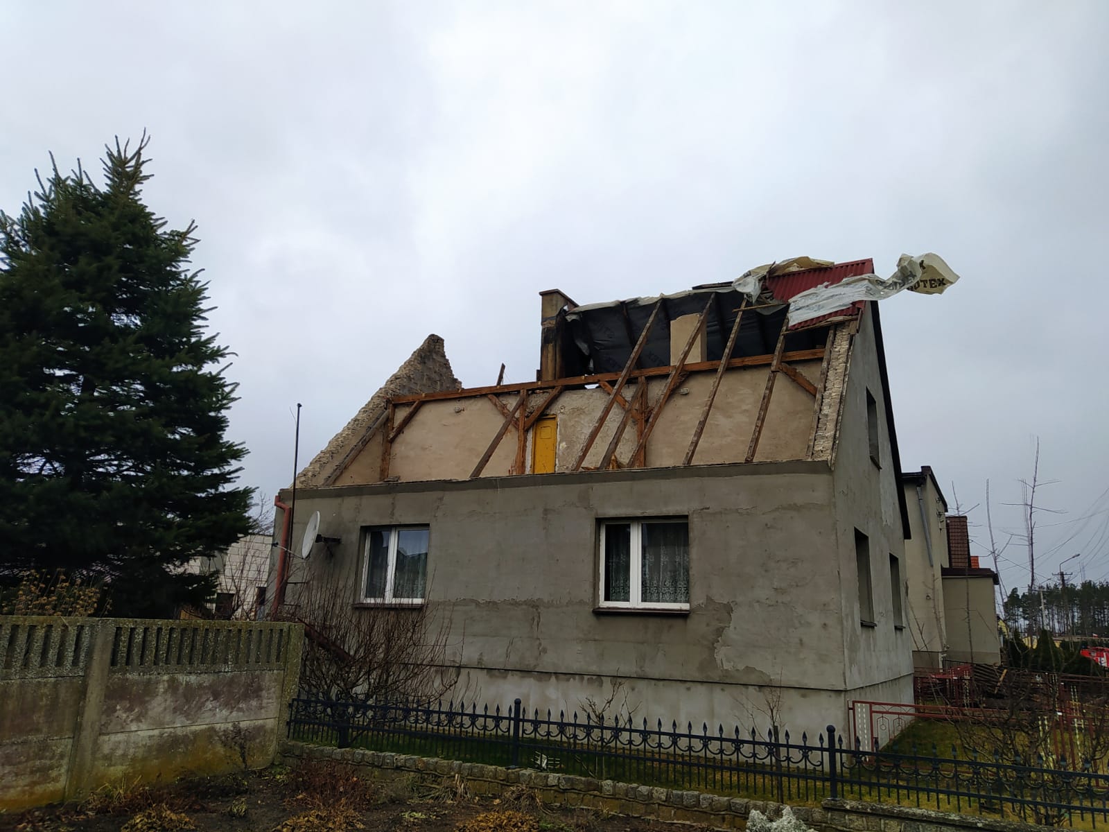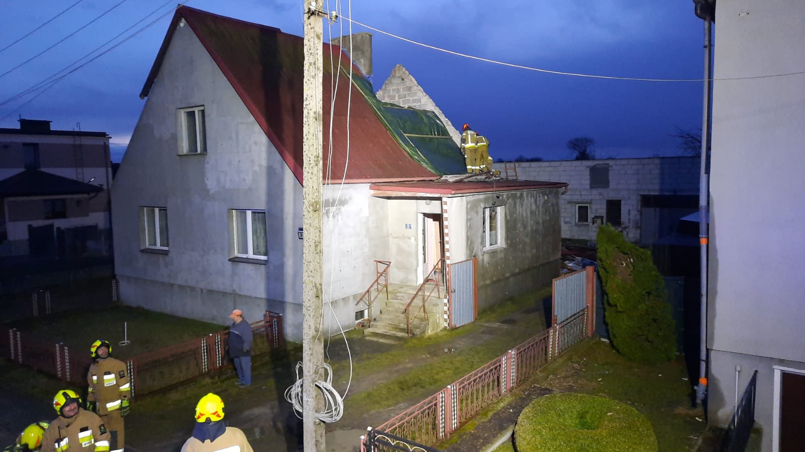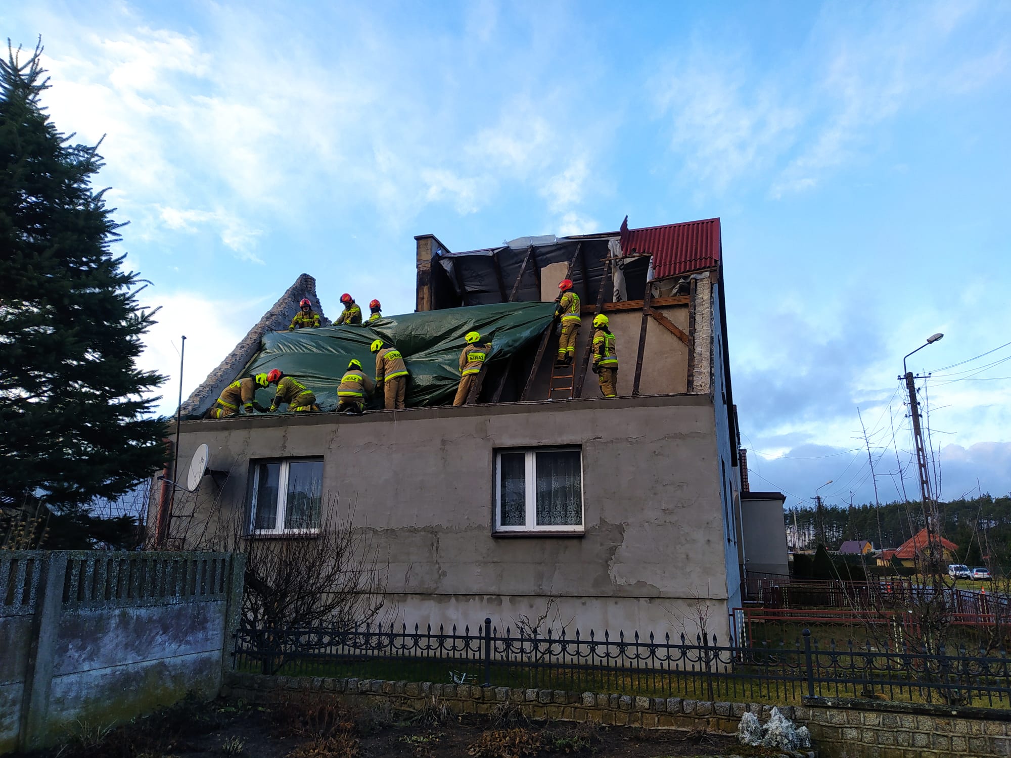 - 40 zdarzeń zwiaznych z zerwanymi lub uszkodzonymi dachami budynków mieszkalnych oraz gospodarczych,
