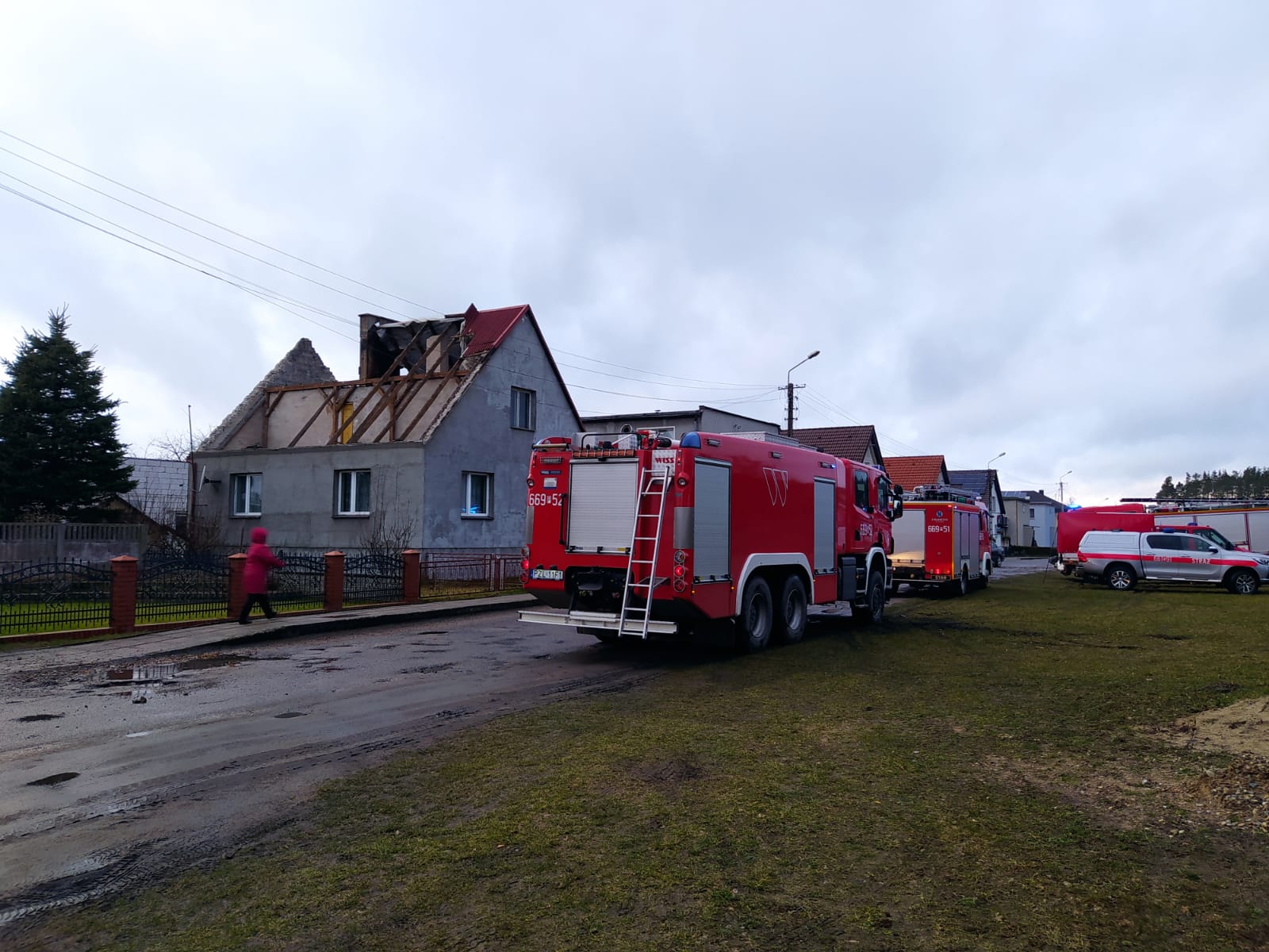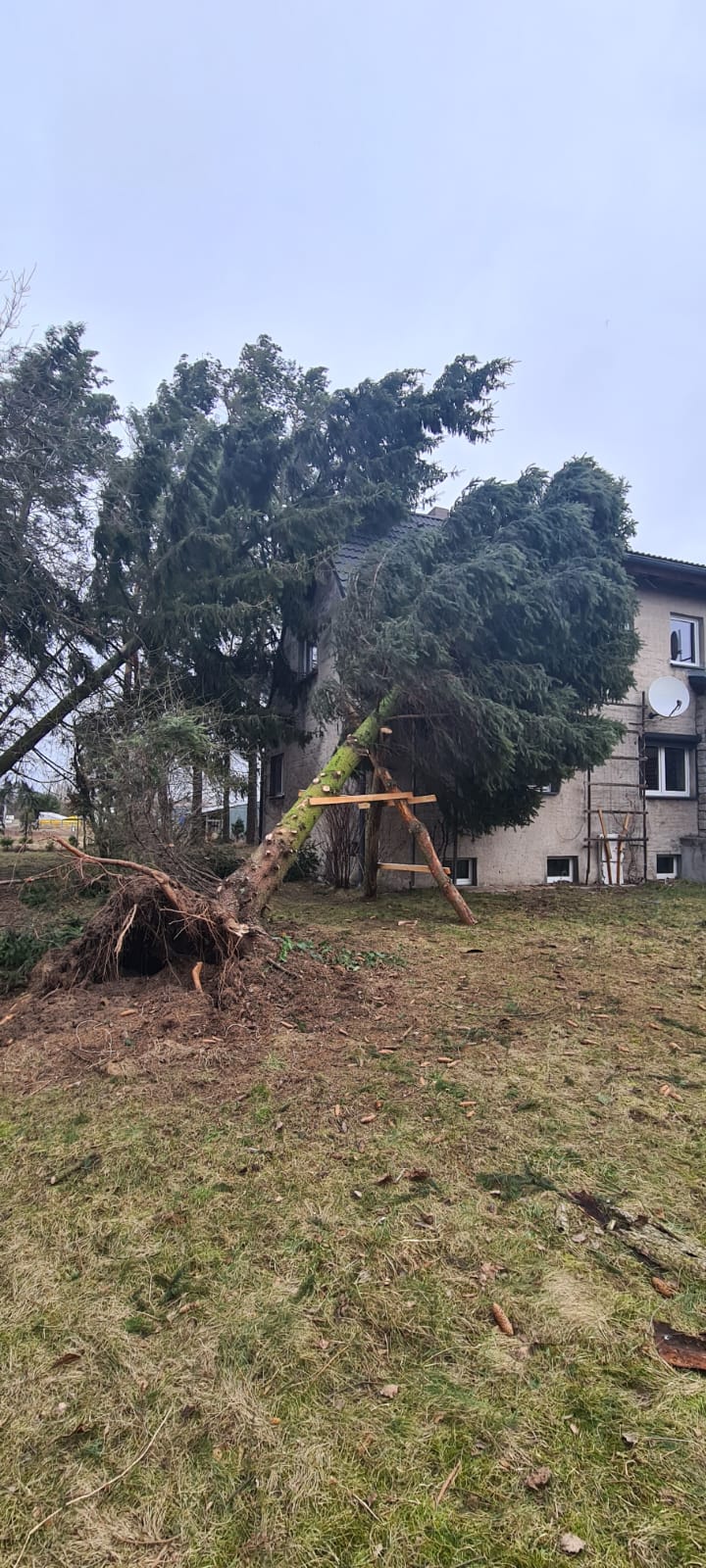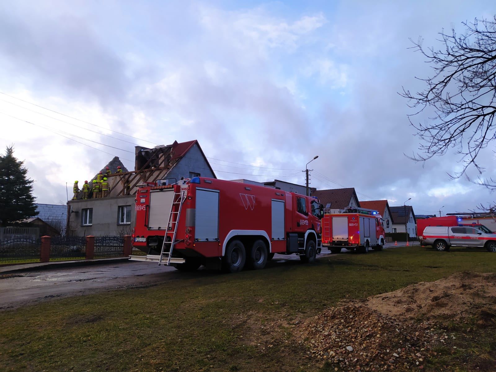 - 40 zdarzeń zwiaznych z zerwanymi lub uszkodzonymi dachami budynków mieszkalnych oraz gospodarczych,