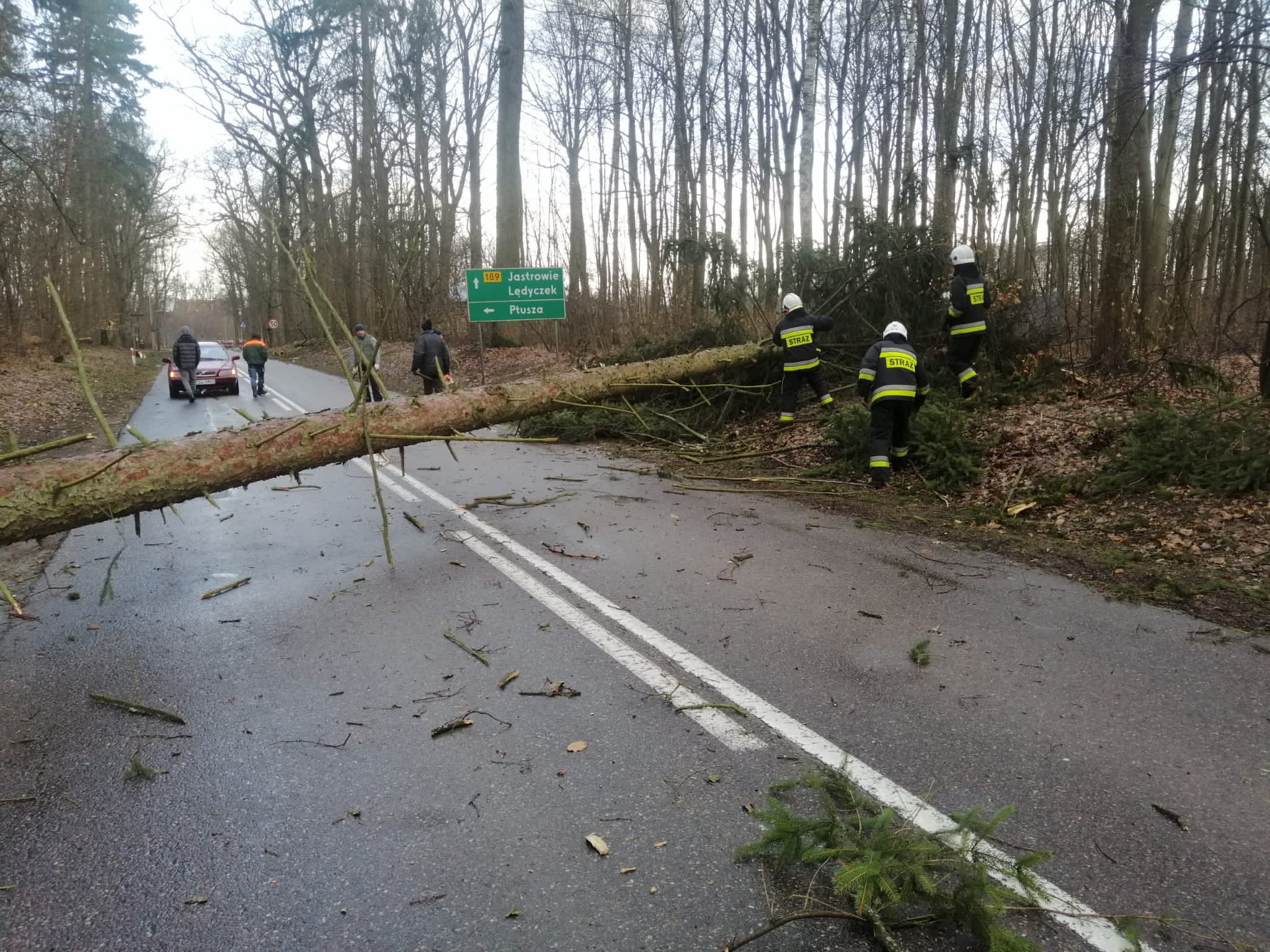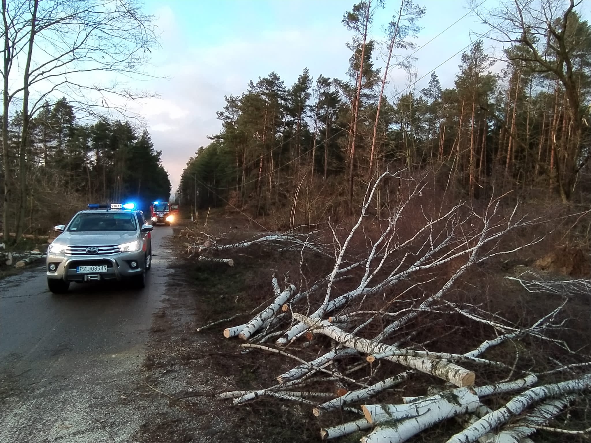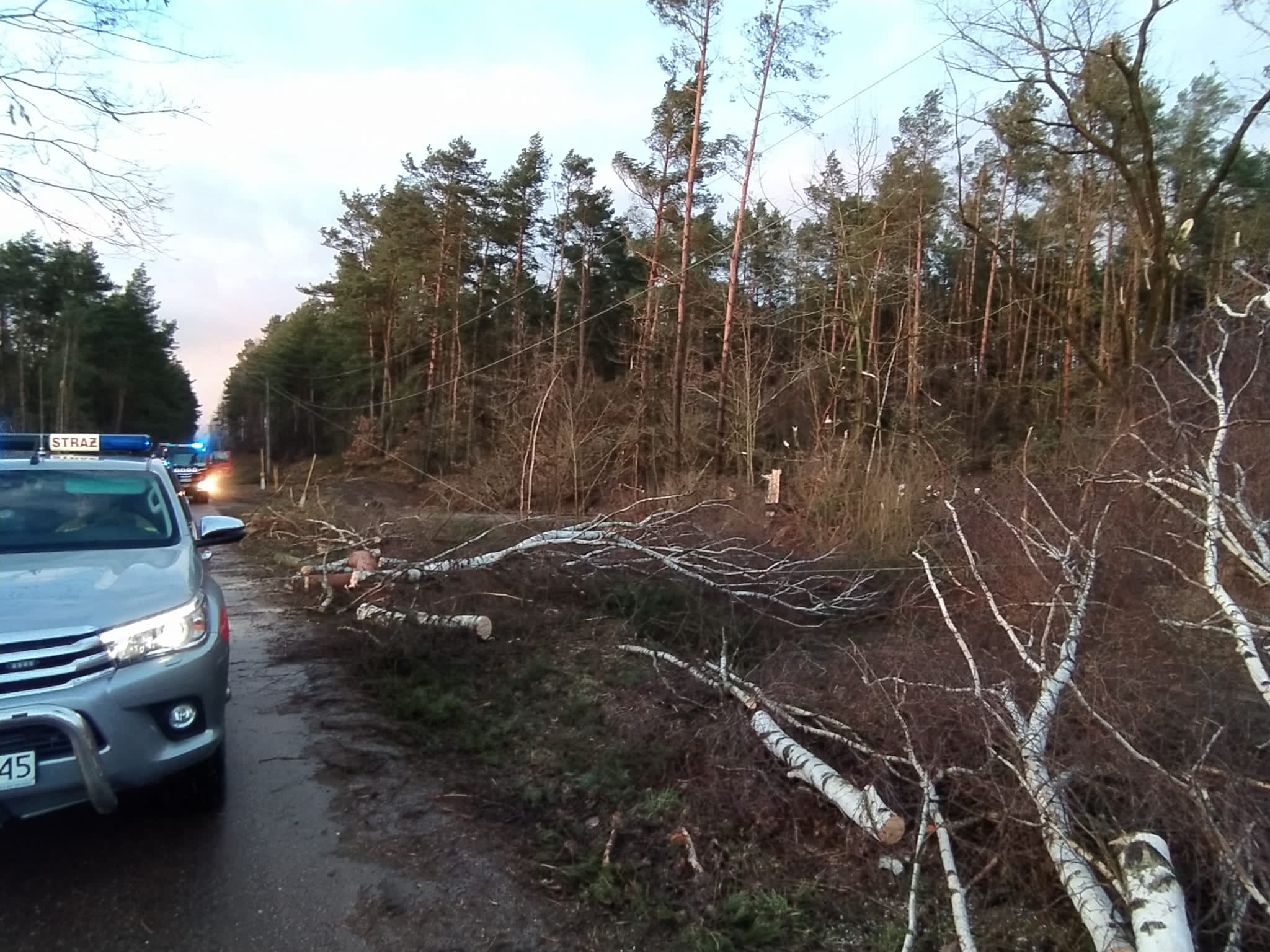 - 160 zwiaznych z powalonymi drzewami na drogi oraz wiatrołomy,