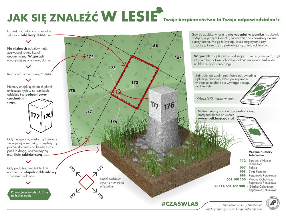 Jednocześnie APELUJEMY o zachowanie należytej ostrożności podczas przebywania i przemieszczania się w obrębie rozległych kompleksów leśnych znajdujących się na terenie powiatu złotowskiego. Warto uwzględniać charakterystyczne dostępne, widoczne oznakowania m.in. dojazdów pożarowych czy poszczególnych oddziałów leśnych, co w sposób istotny pozwala na właściwa orientację i ustalenie potencjalnego położenia w rozległym kompleksie i dotarcie do właściwego miejsca postoju, parkingu czy drogi publicznej.