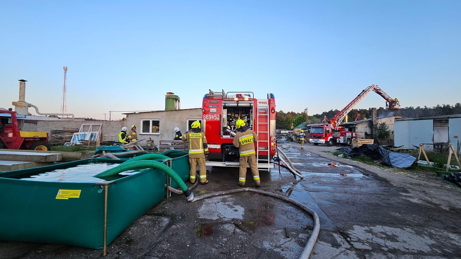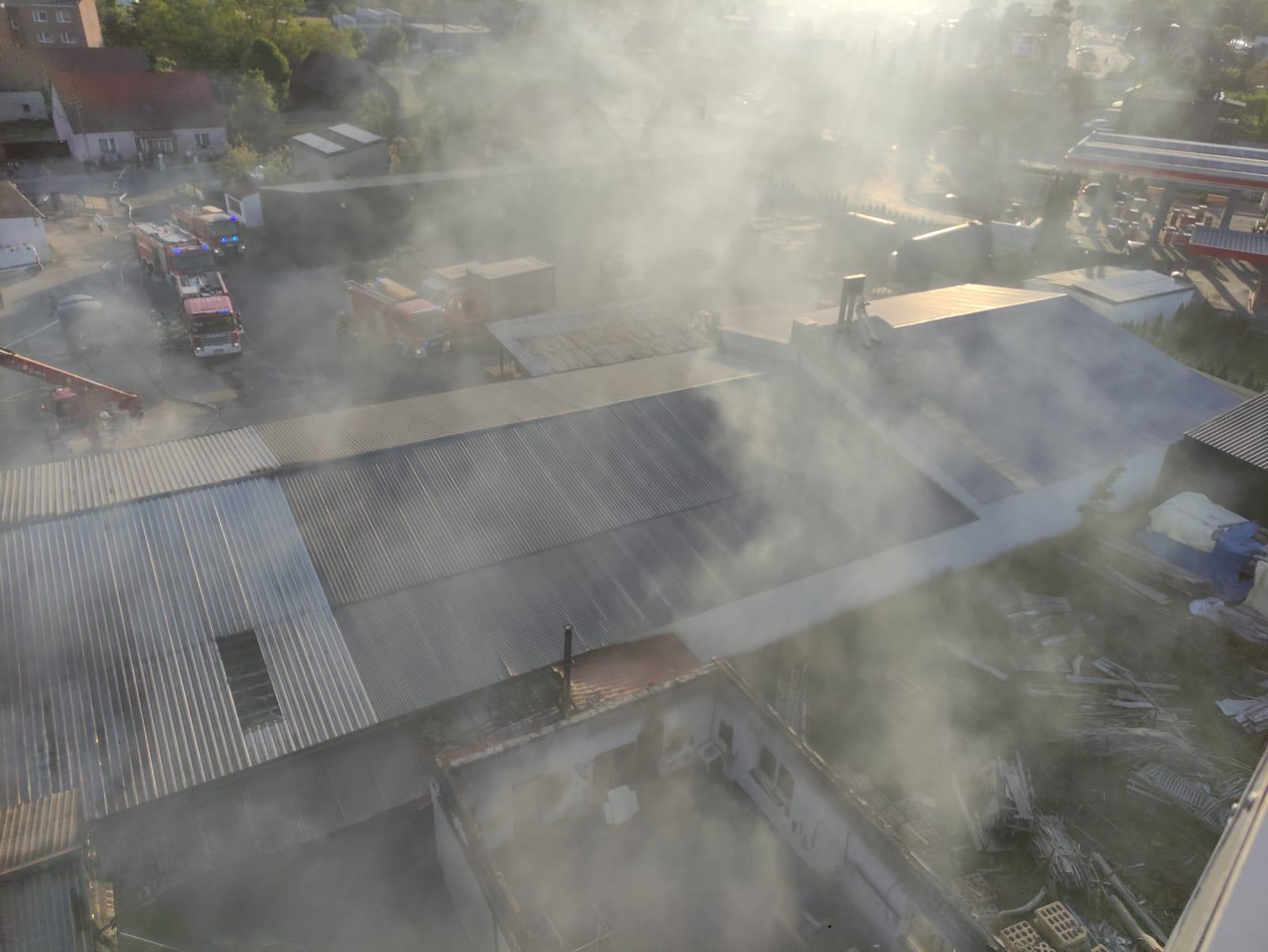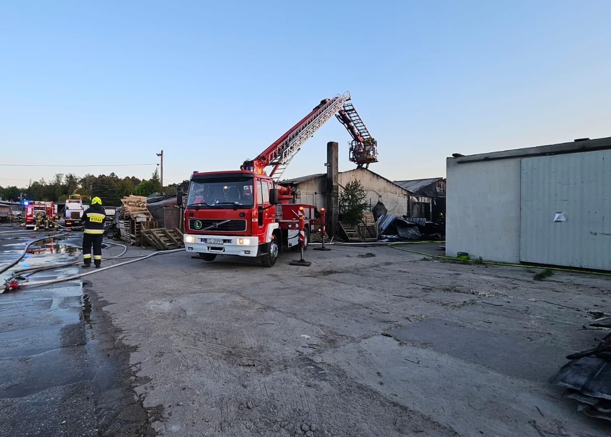 Pożar budynków produkcyjno-magazynowych