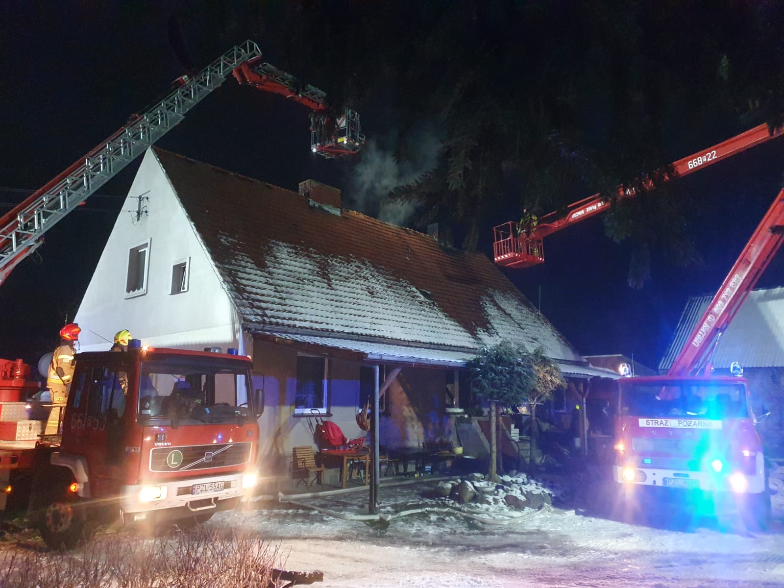 5 lutego o godz. 22:55 do Stanowiska Kierowania Komendanta Powiatowego wpływa zgłoszenie o pożarze dachu budynku mieszkalnego w miejscowości Drożyska Małe. Na miejsce zdarzenia zadysponowane zostają zastępy z Jednostki Ratowniczo-Gaśniczej ze Złotowa wraz z grupą operacyjną oraz najbliższe jednostki ochotniczych straży pożarnych. Przybyłe na miejsce pierwsze zastępy straży pożarnej potwierdziły zadymienie na poddaszu budynku mieszkalnego jednorodzinnego. Podjęte zostają niezwłocznie działania gaśnicze, kontynuowane następnie przez przybywające kolejne siły i środki. W zdarzeniu nie odnotowano osób poszkodowanych a mieszkańcy ewakuowali się samodzielnie przed dojazdem służb ratowniczych. W toku prowadzonych działań pożar został ograniczony a następnie ugaszony. Zniszczeniu uległa część poddasza budynku mieszkalnego. W trwających ponad trzy godziny działaniach zaangażowanych było łącznie 28 strażaków z KP PSP Złotów oraz z jednostek OSP Zakrzewo, OSP Głomsk, OSP Złotów. Działania wspierały służby Policji, Pogotowia Energetycznego.