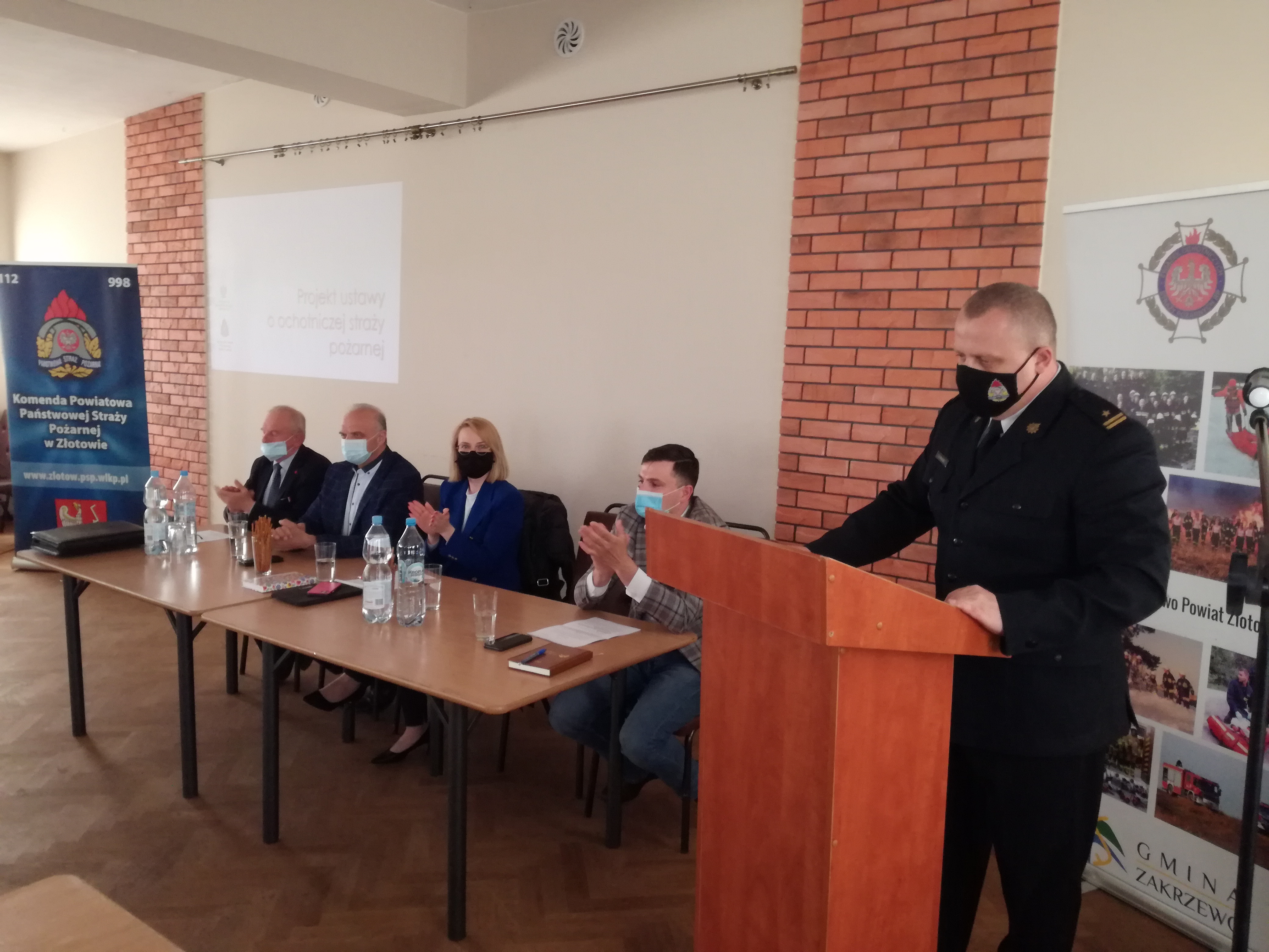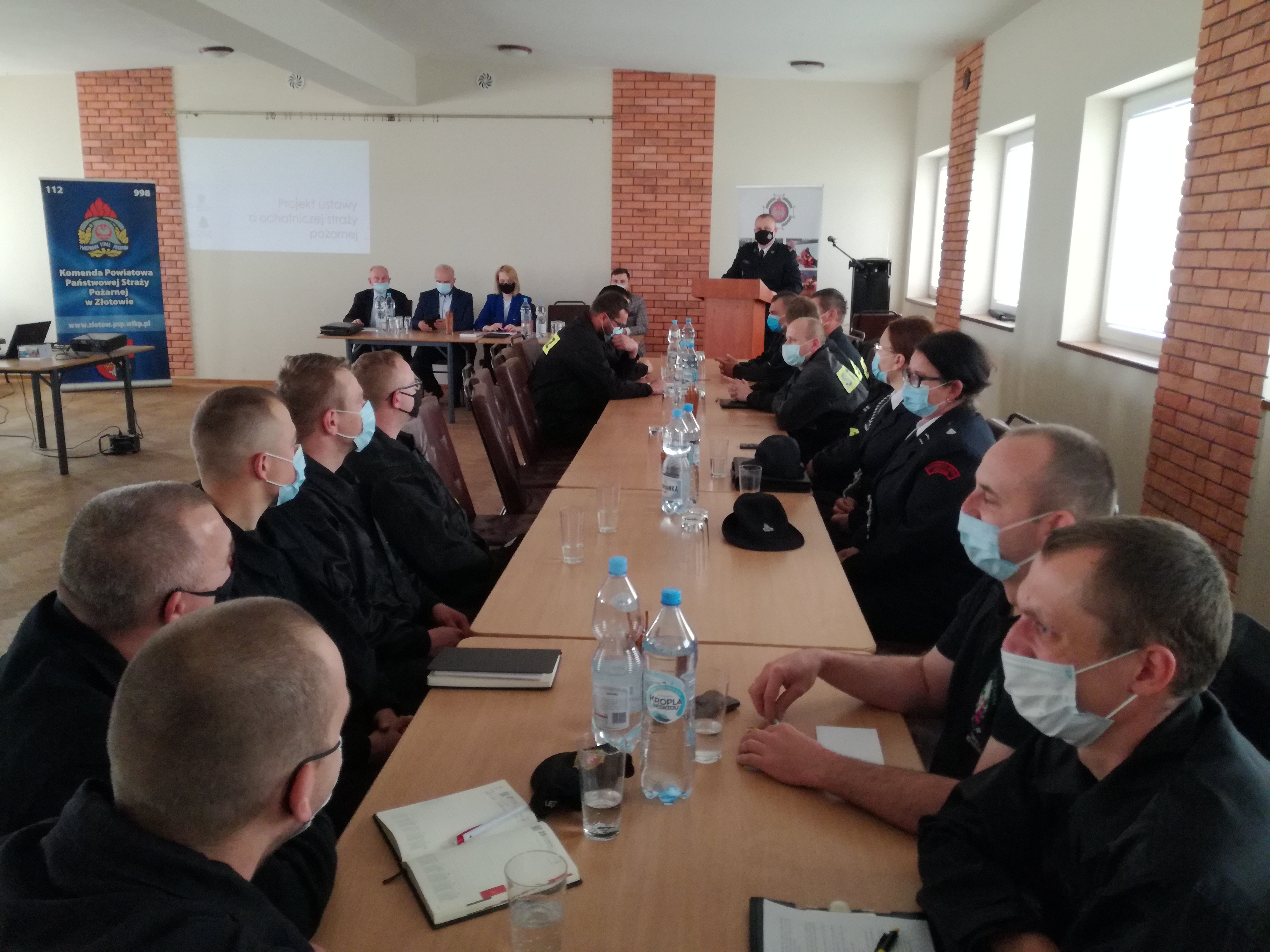 W trakcie spotkania komendant powiatowy PSP przedstawił główne założenia proponowanego aktu prawnego, który w swoim założeniu ma w sposób istotny poprawić funkcjonowanie jednostek Ochotniczych Straży Pożarnych. Omówiono spektrum zmian jakie ma wnieść wprowadzenie ustawy w zakresie operacyjnym i statutowym jak również w szczególności uwzględnić zaangażowanie członków OSP aktywnych w przeszłości jak również obecnie w działaniach ratowniczych.
