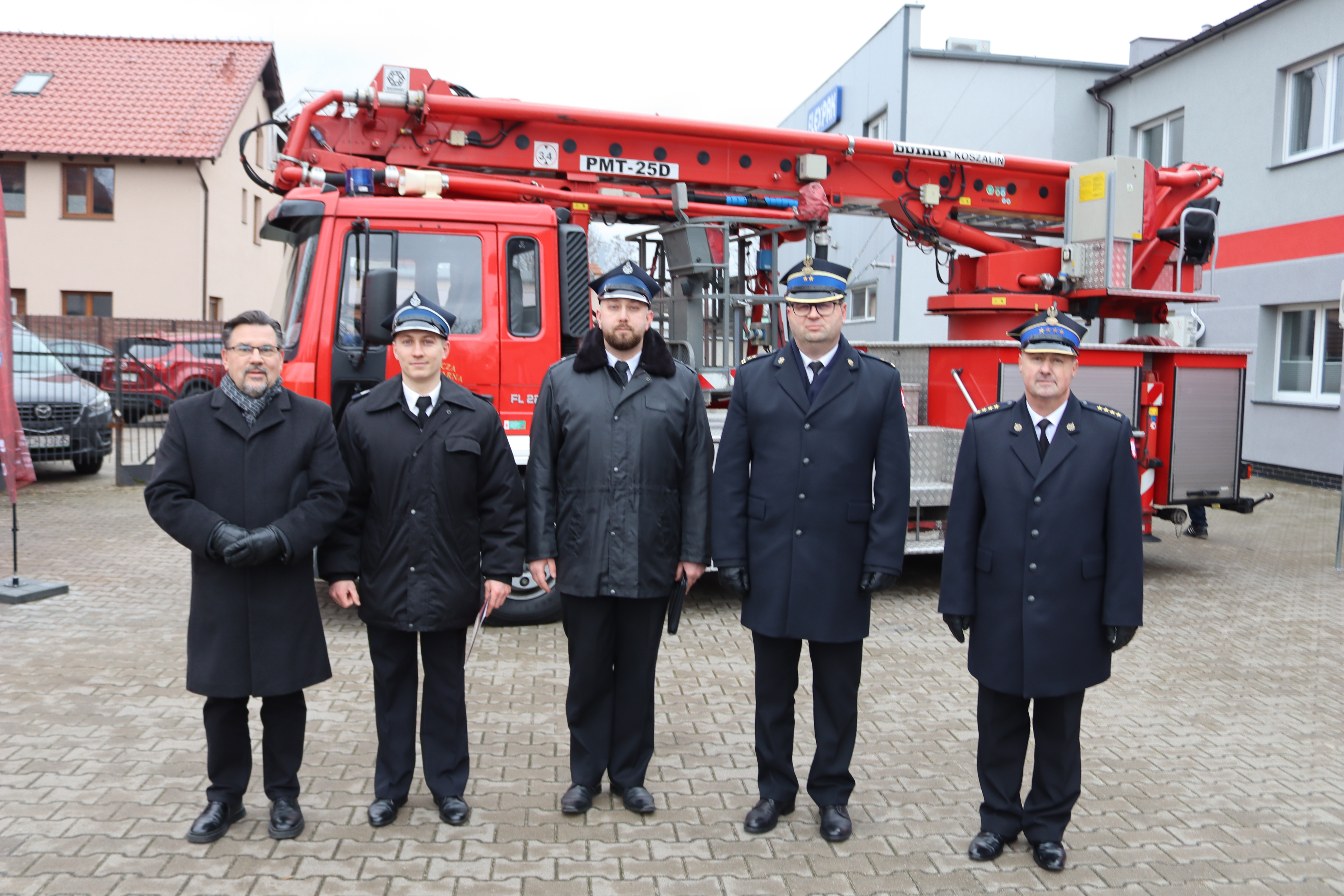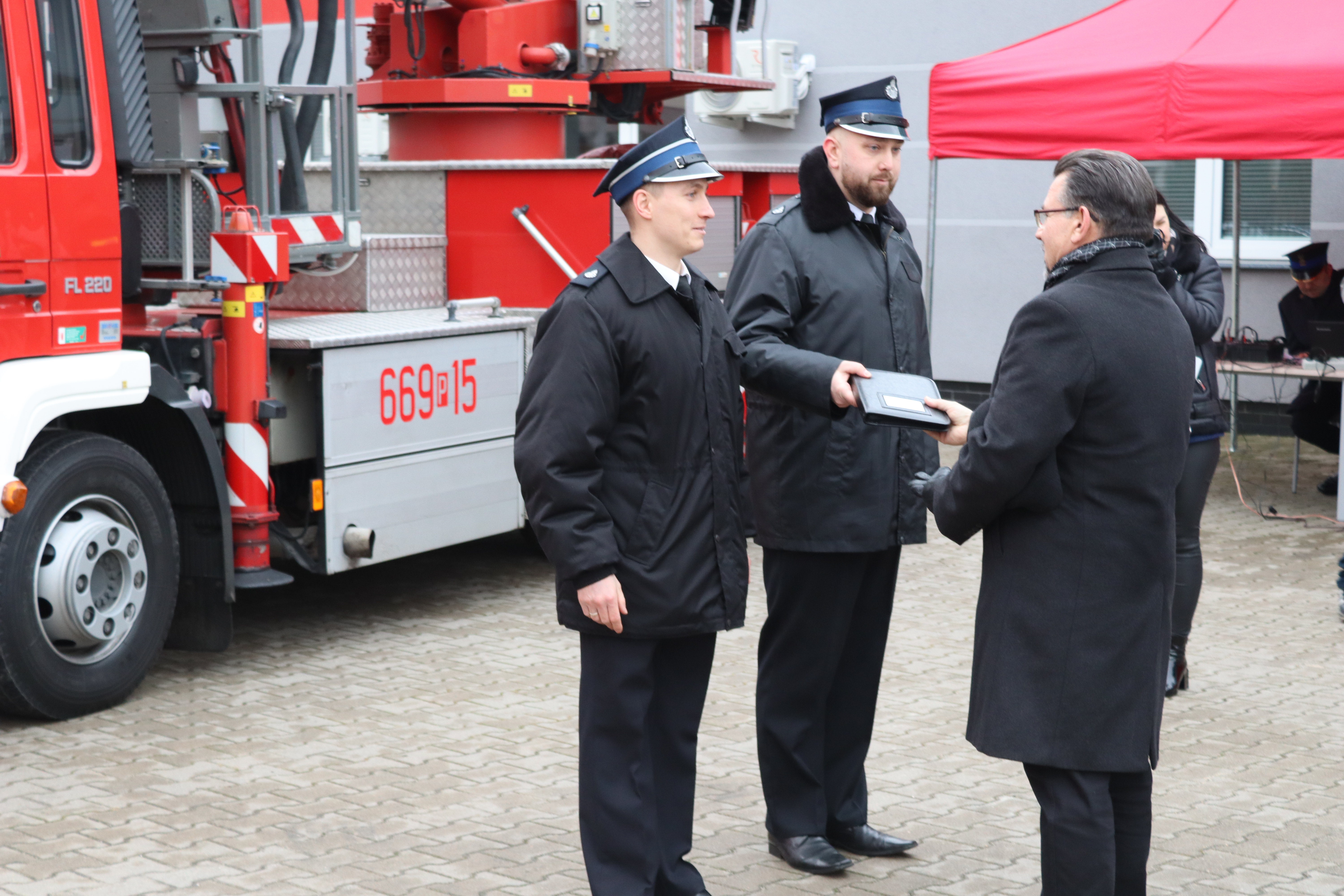 31.01.2024 Na placu przed Komendą Powiatową w Złotowie odbyła się uroczystość inaugurująca kilkuletni proces remontu Komendy Powiatowej w Złotowie, otwarcie Salki Edukacyjnej „Ognik” Przekazanie samochodu specjalnego z podnośnikiem hydraulicznym o wysięgu maksymalnym 24 metry dla Ochotniczej Straży Pożarnej w Krajence.