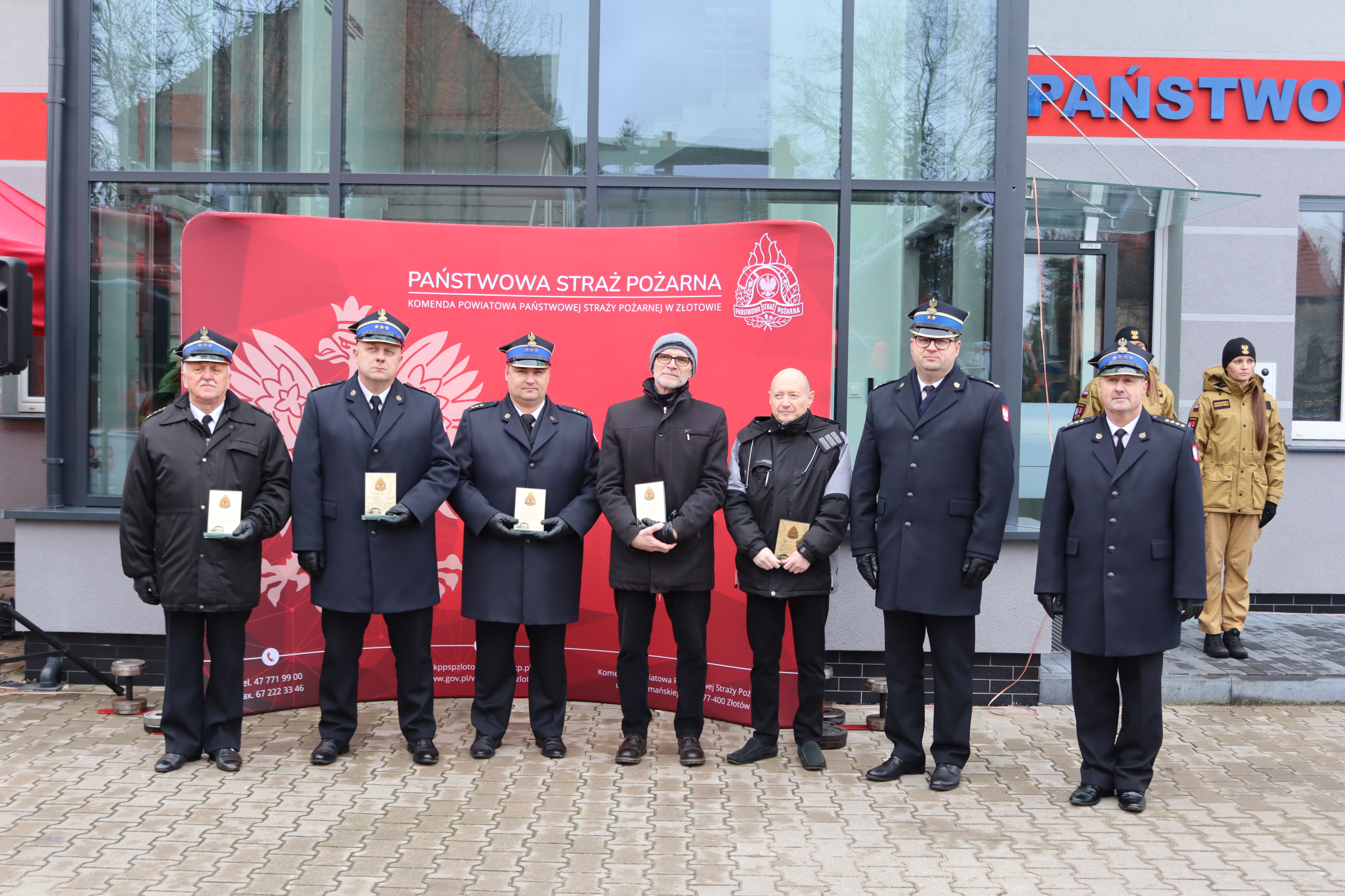 Uroczystość rozpoczęła się na placu przed Komendą Powiatową w Złotowie. Dowódca uroczystości mł. kpt. Krzysztof Waldowski złożył meldunek o gotowości do rozpoczęcia uroczystej zbiórki Zastępcy Wielkopolskiego Komendanta Wojewódzkiego Państwowej Straży Pożarnej w Poznaniu bryg. Robertowi Natunewiczowi.