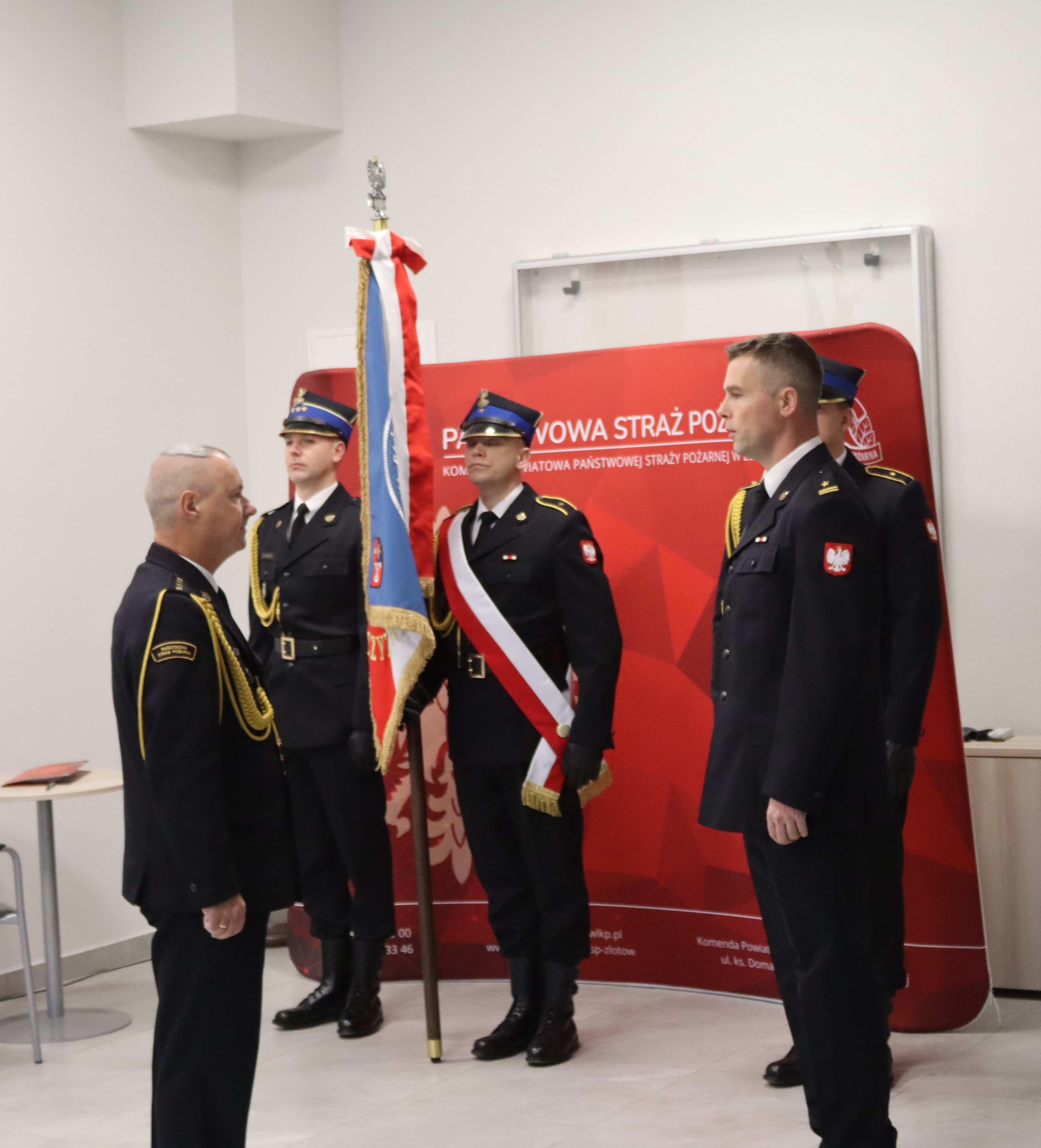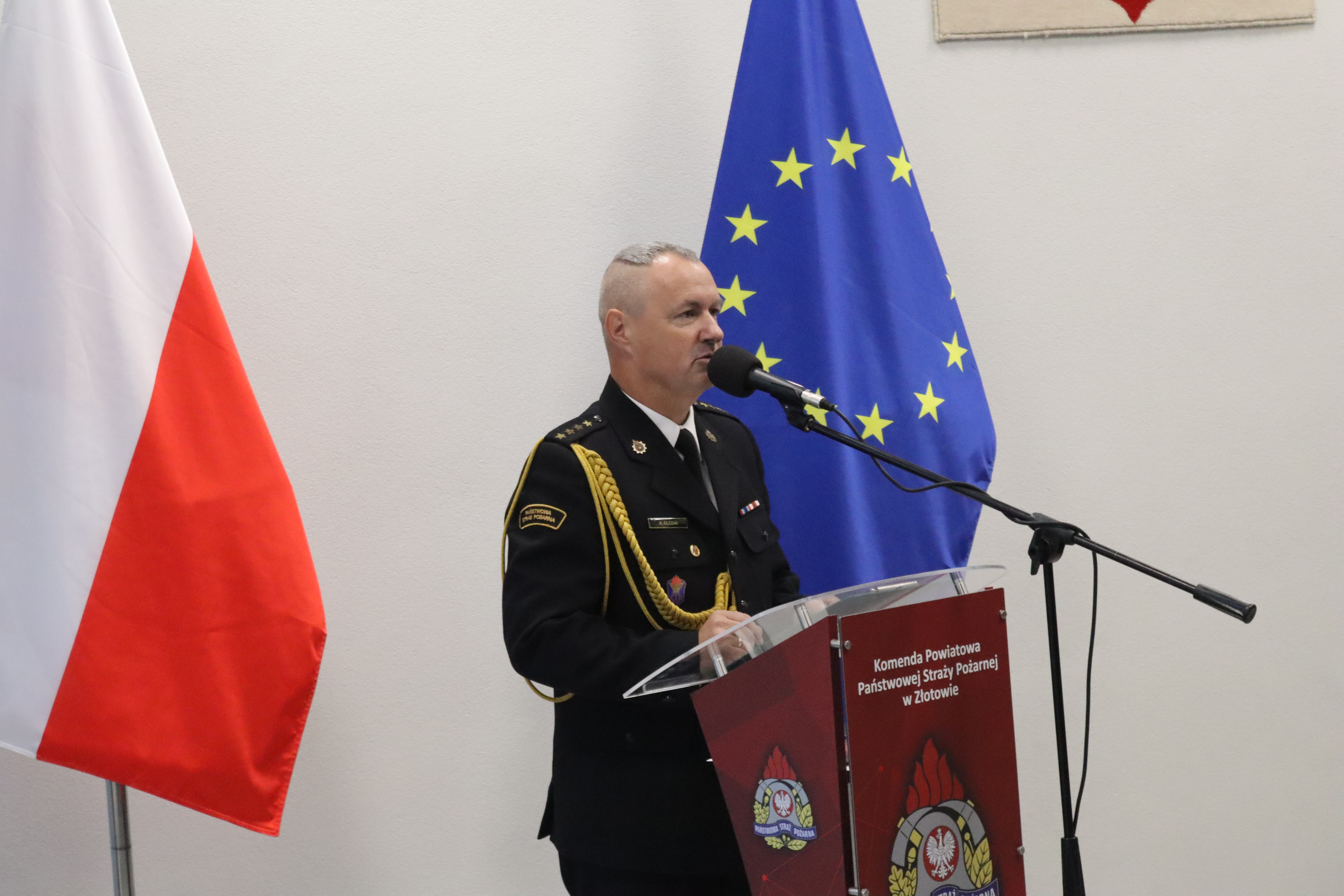 Uroczystość rozpoczęła się od złożenia meldunku przez zastępcę Komendanta Powiatowego PSP w Złotowie mł. bryg. Sławomira Włoszczyńskiego komendantowi powiatowemu Państwowej Straży Pożarnej w Złotowie st. kpt. Krzysztofowi Olczakowi.