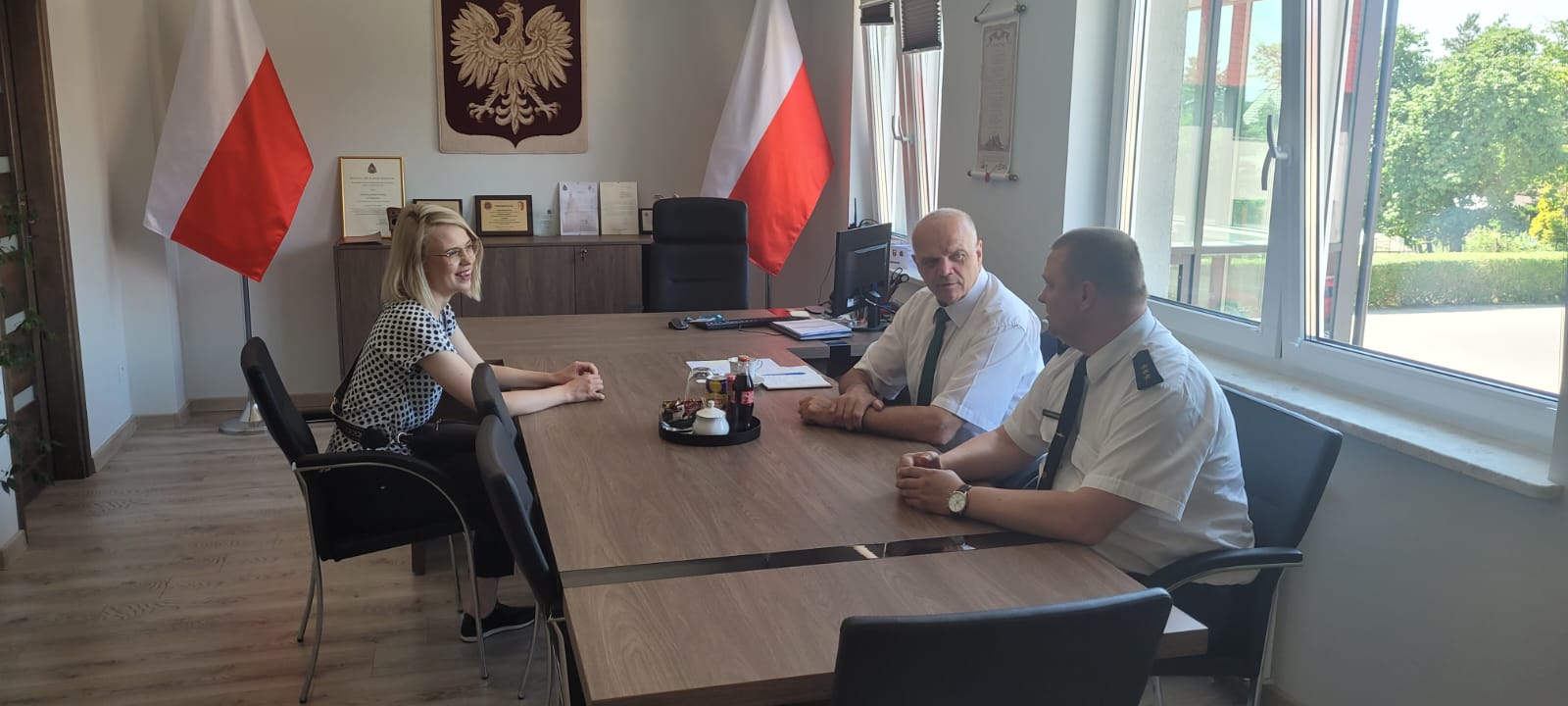 22 czerwca 2023 roku z wizytą roboczą Komendę Powiatową PSP w Złotowie odwiedziła Poseł na Sejm RP Pani Marta Kubiak wraz ze Starostą Złotowskim Panem Ryszardem Goławskim. Podczas spotkania Komendant Powiatowy PSP w Złotowie kpt. Tomasz Lewandowski, przybliżył dotychczas zrealizowane cele inwestycyjne oraz przedstawił plany pracy na najbliższy czas.