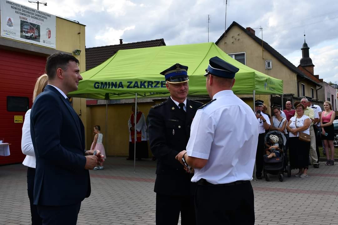 Dnia 31 lipca odbyło się poświęcenie i oficjalne przekazanie do użytku nowego wozu pożarniczego Mana TGM 13.290 o napędzie 4x4, któremu nadano imię „Szymek”. Pierwotnie uroczystość miała odbyć się w październiku ubiegłego roku, jednak ze względu na obostrzenia epidemiczne została odwołana i przełożona na okres letni. Wydarzenie rozpoczęło się od uroczystej Mszy Świętej w kościele p.w. św. Michała Archanioła w intencji wszystkich strażaków, jak również tych druhów, którzy odeszli już na wieczną służbę. Po jej zakończeniu pojazd poświęcił ks. proboszcz Andrzej Choroba, aby ten w myśl strażackiej dewizy – „Bogu na chwałę, ludziom na pożytek” – służył jak najlepiej w dziele ratowania życia i mienia ludzkiego. Następnie prezes OSP Głomsk, Szymon Tomke, przekazał klucze do wozu strażakom z jednostki. W uroczystosci uczetniczyła posłanka na Sejm RP Pani Marta Kubiak, Wójt Gminy Zakrzewo Pan Marek Buława, zastepca komendanta powiatowego PSP w Złotowie st. bryg. Leszek Wójcik. Wójt Marek Buława oraz prezes OSP Głomsk Szymon Tomke złożyli podziękowania Poseł na Sejm RP Pani Marcie Kubiak, oraz dla wszystkich osób i instytucji, które wsparły finansowo zakup samochodu, a były to zarówno osoby prywatne, właściciele firm, jak i nadleśnictwa. Koszt zakupu pojazdu to 837 630,00 zł: kwota 359 000,00 zł pochodzi z dofinansowania Wojewódzkiego Funduszu Ochrony Środowiska i Gospodarki Wodnej w Poznaniu, 151 000,00 zł przekazało Ministerstwo Spraw Wewnętrznych i Administracji, 240 000,00 zł stanowią środki Gminy Zakrzewo zaś pozostała część to wkład własny Ochotniczej Straży Pożarnej w Głomsku.