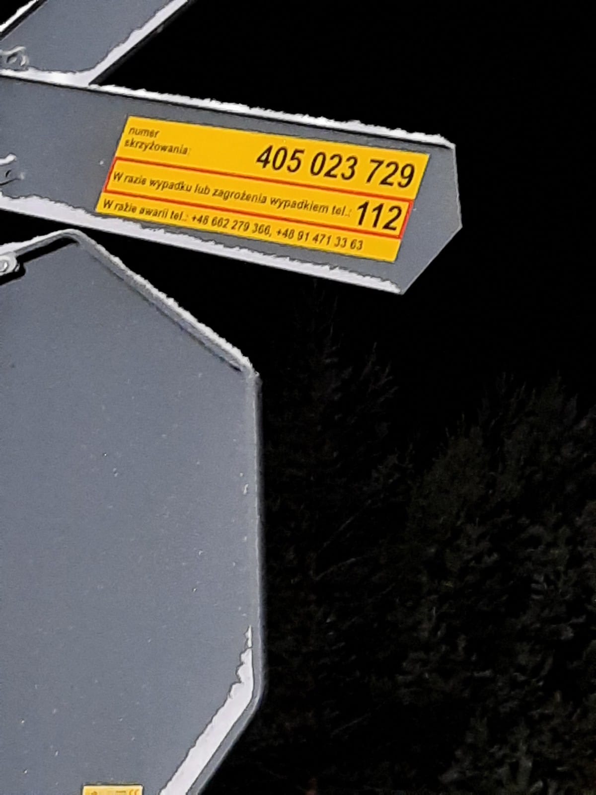 w celu właściwego wskazania miejsca, można posłużyć się informacjami umieszczonymi m.in na wewnętrznej stronie krzyża św. Andrzeja zawierającymi indywidualny numer identyfikacyjny przejazdu kolejowego, dane na temat numeru linii kolejowej i jej danego kilometra ( #ŻółtaNaklejkaPLK ).