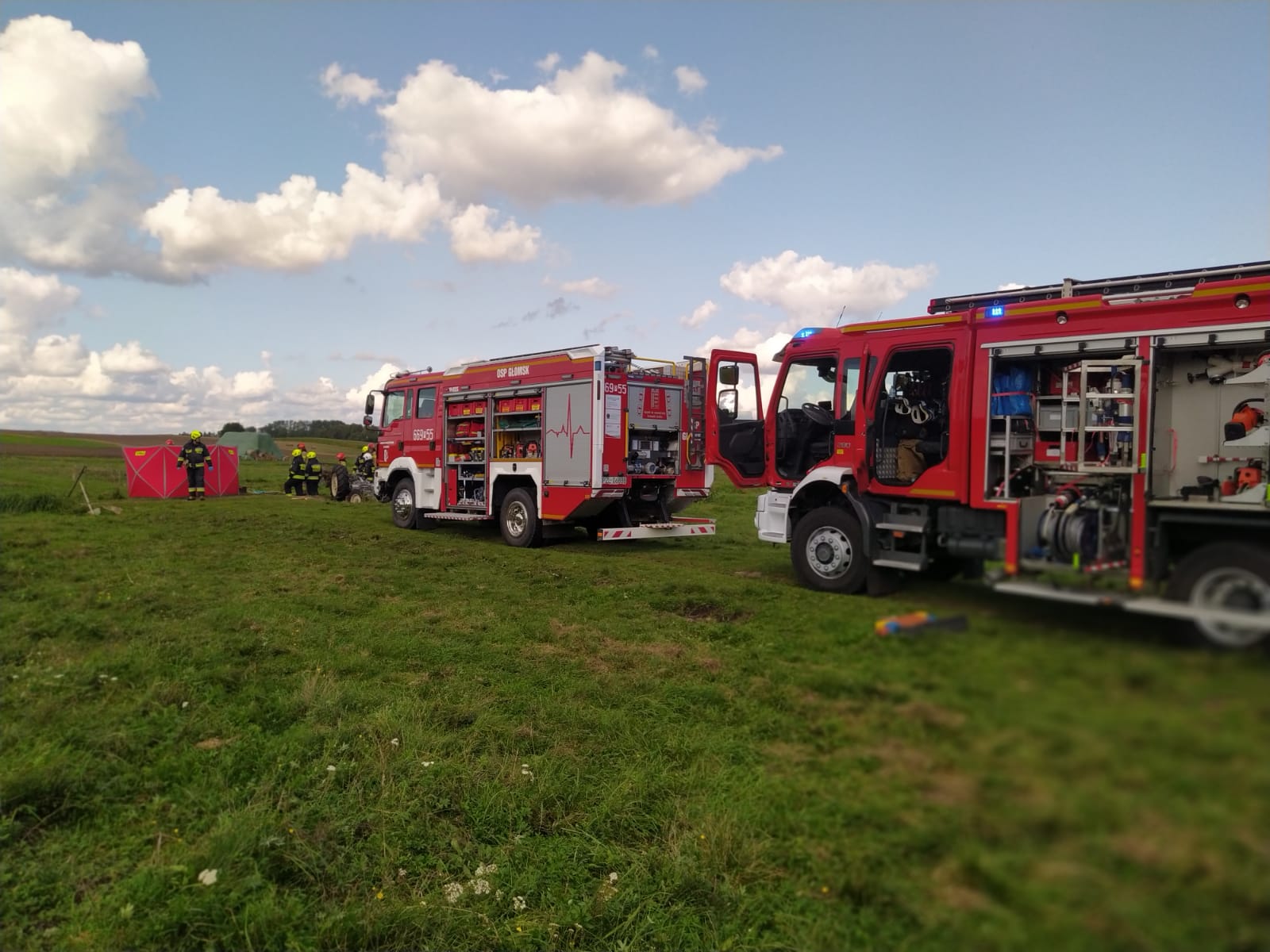 2 września br. o godz. 13.55 do Stanowiska Kierowania Komendanta Powiatowego w Złotowie wpłynęło zgłoszenie o wypadku w okolicach m. Stara Wiśniewka, w wyniku, którego doszło do wywrócenia się ciągnika rolniczego a poszkodowany traktorzysta znajduje się pod maszyną. Na miejsce działań zadysponowano zastępy JRG, najbliższe OSP oraz grupę operacyjną KP PSP. Po dojeździe na miejsce przy wykorzystaniu narzędzi hydraulicznych oraz dodatkowego sprzętu do stabilizacji pojazdów, wykonano dostęp unosząc ciągnik rolniczy, który znajdował się bezpośrednio w rowie odwadniającym. Poszkodowany został ewakuowany i przekazany Zespołowi Ratownictwa Medycznego. Niestety służby medyczne potwierdziły ofiarę śmiertelną. Łącznie w działaniach zaangażowanych było 24 strażaków z jednostek OSP Ługi, OSP Głomsk, OSP Zakrzewo, KP PSP Złotów przy wsparciu Policji i Pogotowia Ratunkowego.