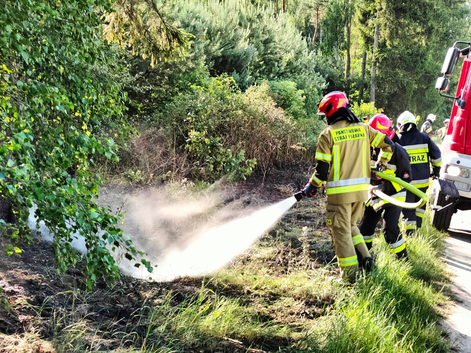 W związku z panującymi w drugiej połowie czerwca br. warunkami atmosferycznymi w szczególności wysokimi temperaturami powietrza, ograniczonymi opadami deszczu w sposób znaczący wzrosło zagrożenie pożarowe w obrębie kompleksów leśnych. Tylko w dniach 23-26 czerwca na terenie powiatu złotowskiego odnotowano cztery pożary na terenach leśnych, do których zadysponowanych zostało 18 strażackich zastępów w obsadzie 76 strażaków z jednostek OSP i PSP, wspieranych przez służby leśne w tym samolot gaśniczy oraz Policję. W tym miejscu Apelujemy o zachowanie szczególnej ostrożności podczas przebywania i wypoczynku w obrębie obszarów leśnych i niezwłoczne alarmowanie służb w przypadku zauważenia pożaru bądź innego zagrożenia, tak, aby odpowiednio i skutecznie móc podjąć i realizować działania i akcje ratowniczą.