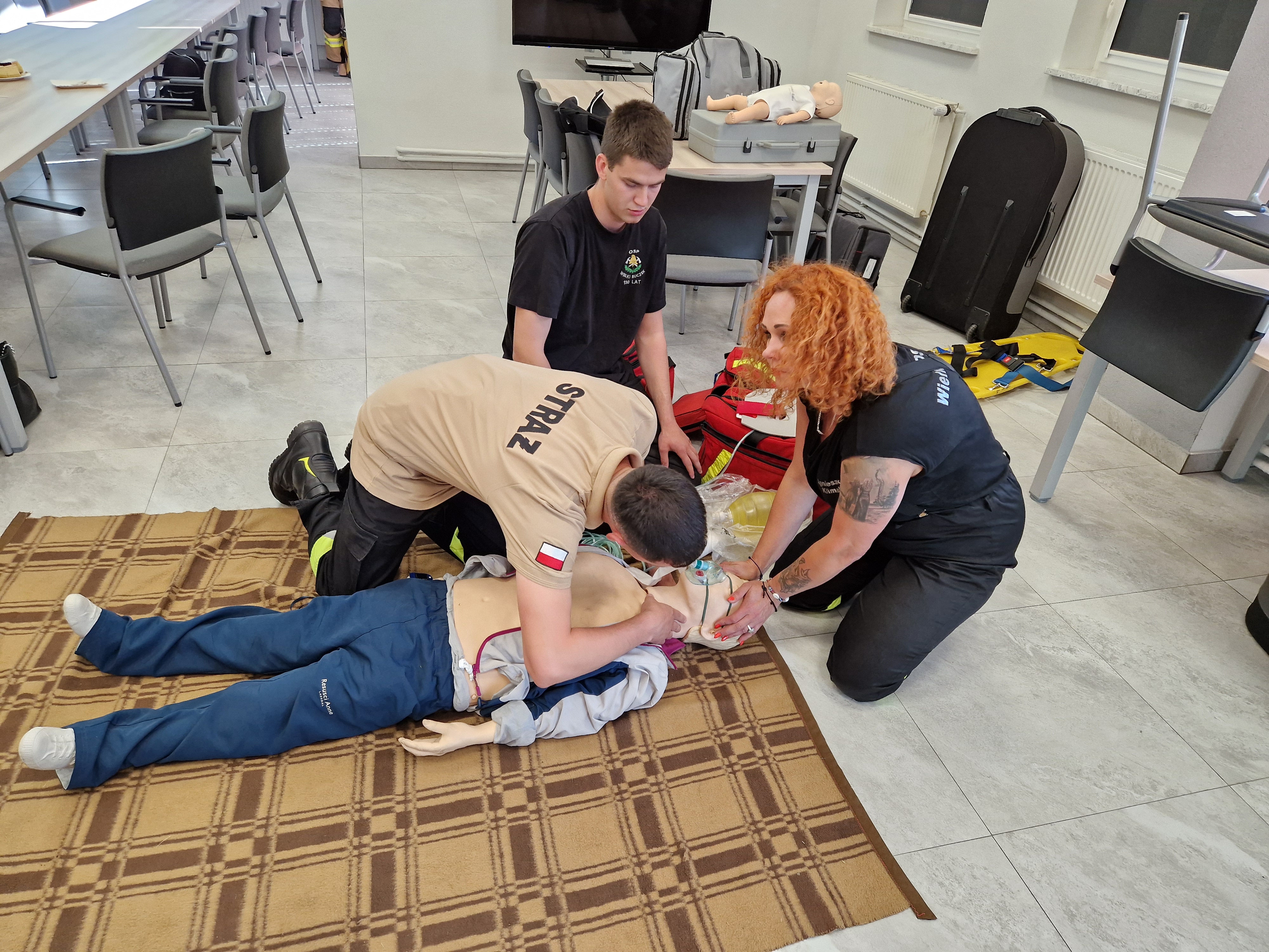 i praktycznych przystąpiły do egzaminu końcowego, potwierdzającego nadanie tytułu ratownika KPP. Wszyscy kursanci pozytywnie zaliczyli egzamin a wyrazy uznania za strażacka wytrwałość złożył także komendant powiatowy PSP st.kpt. Krzysztof Olczak, podkreślając istotną wagę i role medycznych działań ratowniczych w szerokim wachlarzu zadań związanych z prowadzeniem akcji ratowniczych.