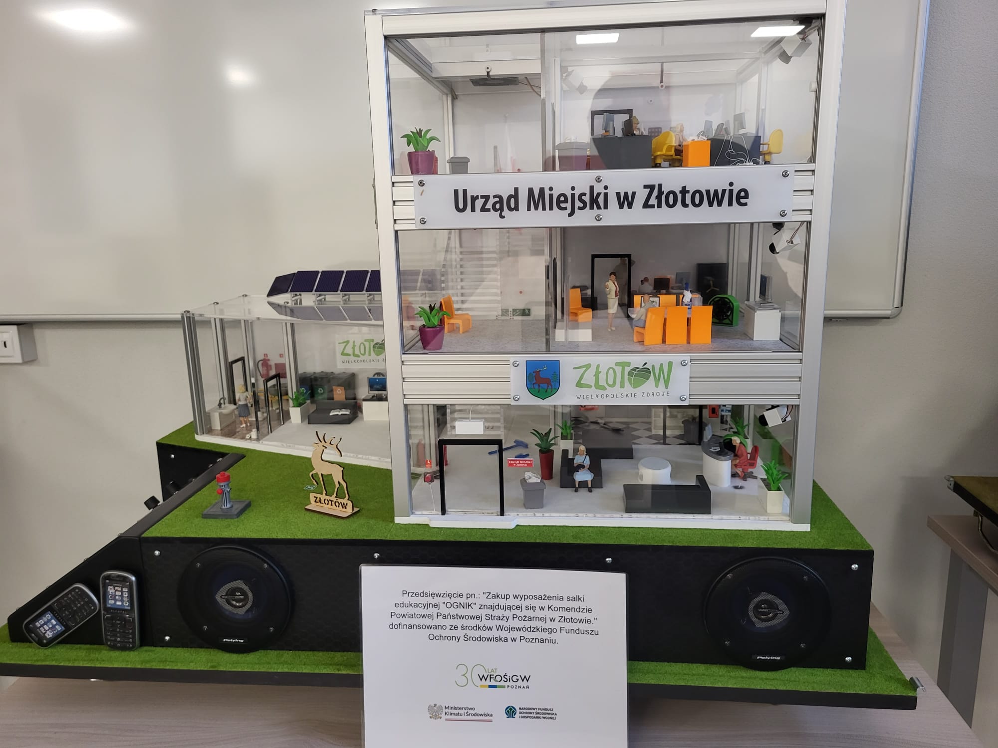 Komenda Powiatowa Państwowej Straży Pożarnej w Złotowie przy wykorzystaniu środków z dofinansowania Wojewódzkiego Funduszu Ochrony Środowiska i Gospodarki Wodnej w Poznaniu, zrealizowała zadanie pn.: "Zakup wyposażenia salki edukacyjnej "OGNIK" znajdującej się w Komendzie Powiatowej Państwowej Straży Pożarnej w Złotowie."